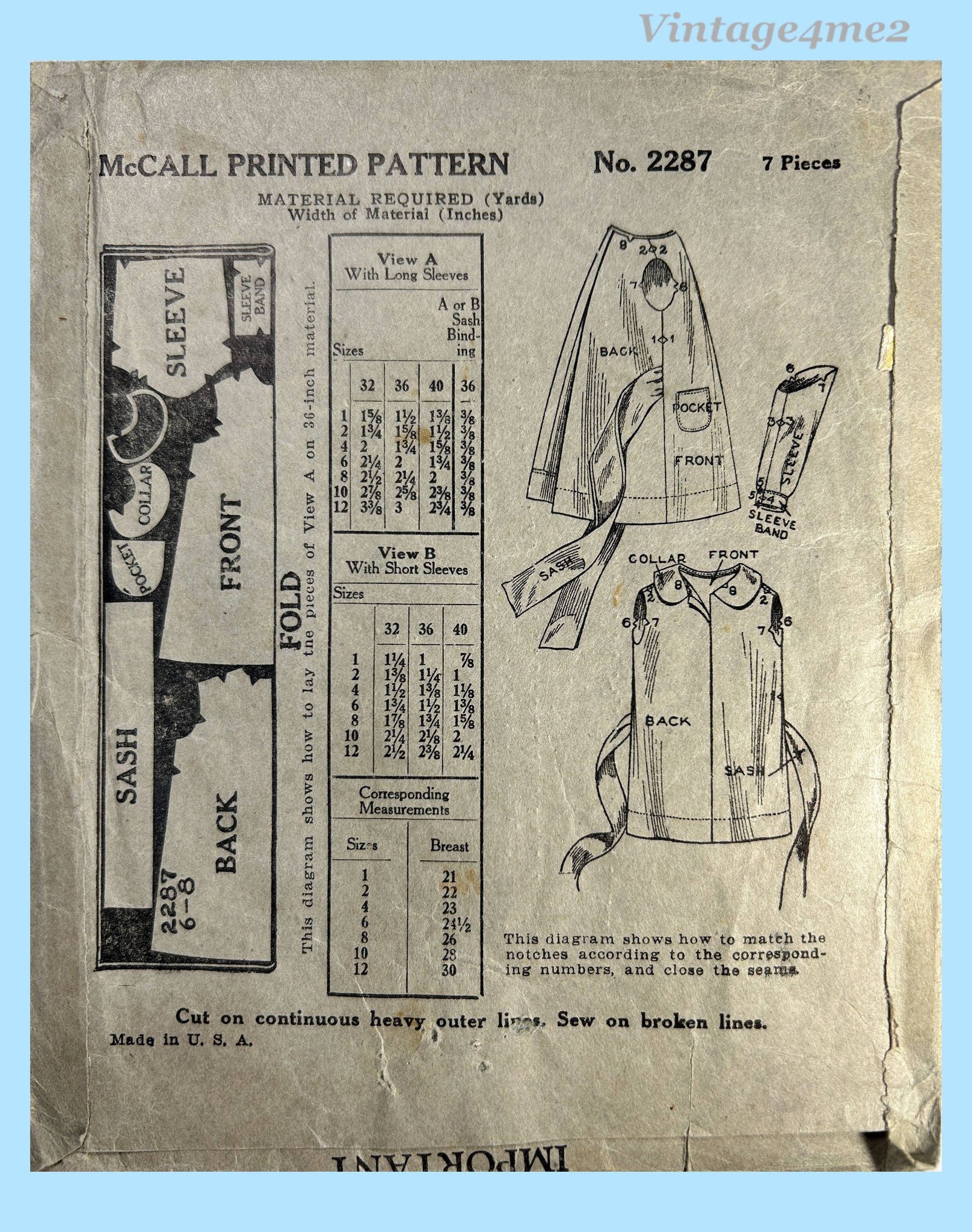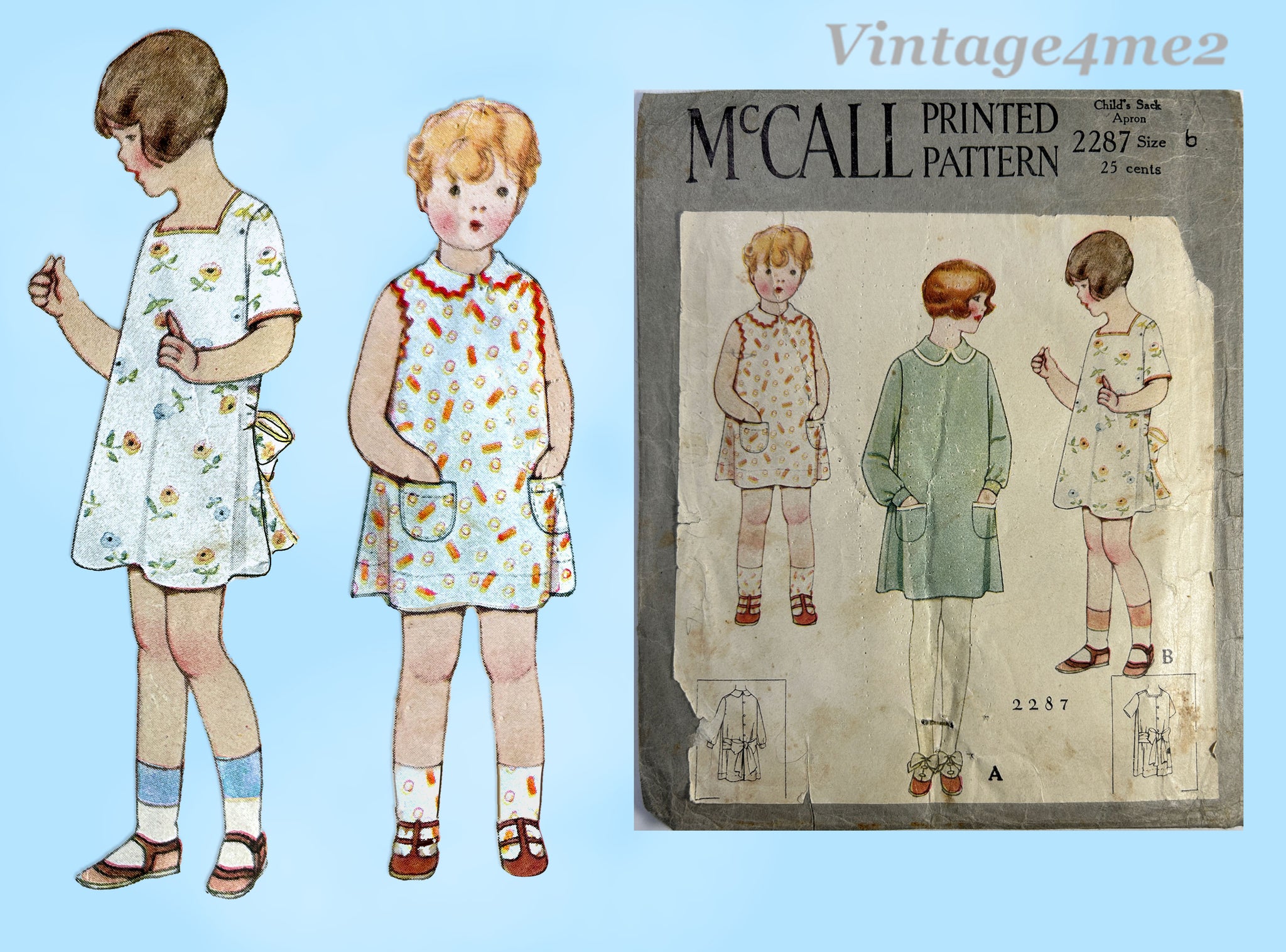 McCall 2287: 1930s Rare Toddler Girls Apron Dress Size 6 Vintage Sewing Pattern