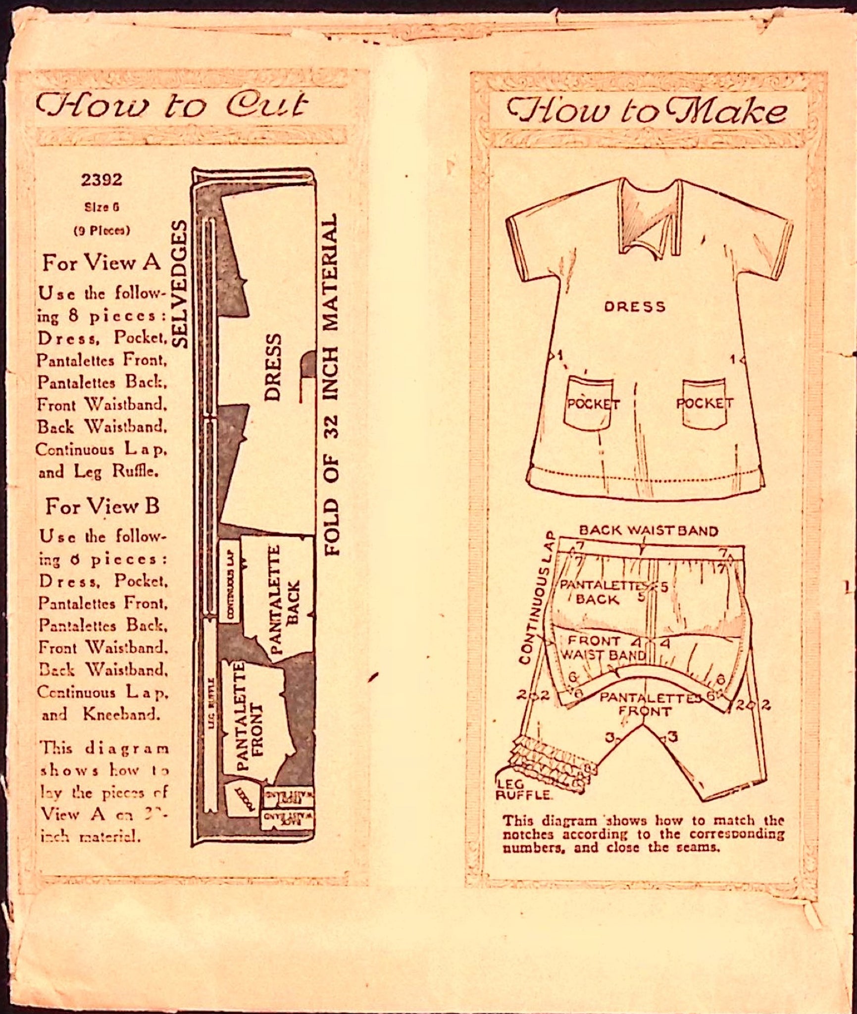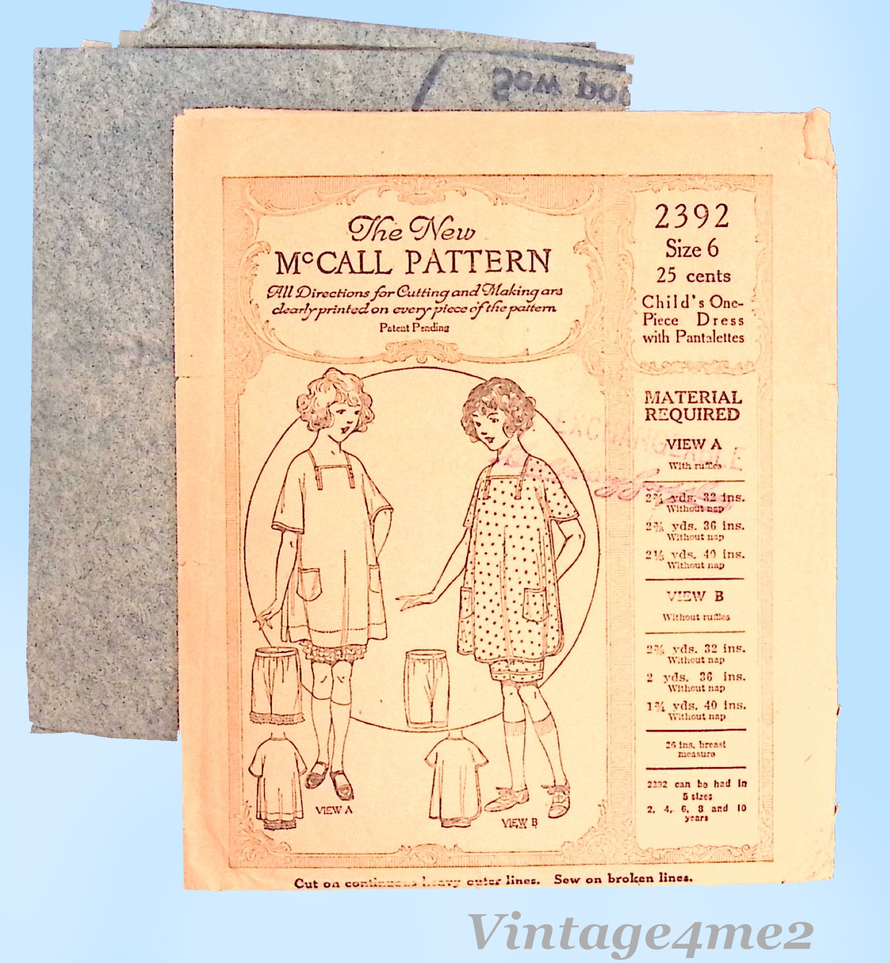 McCall 2392: 1920s Uncut Toddler Girls Bloomer Dress Sz 6 Vintage Sewing Pattern