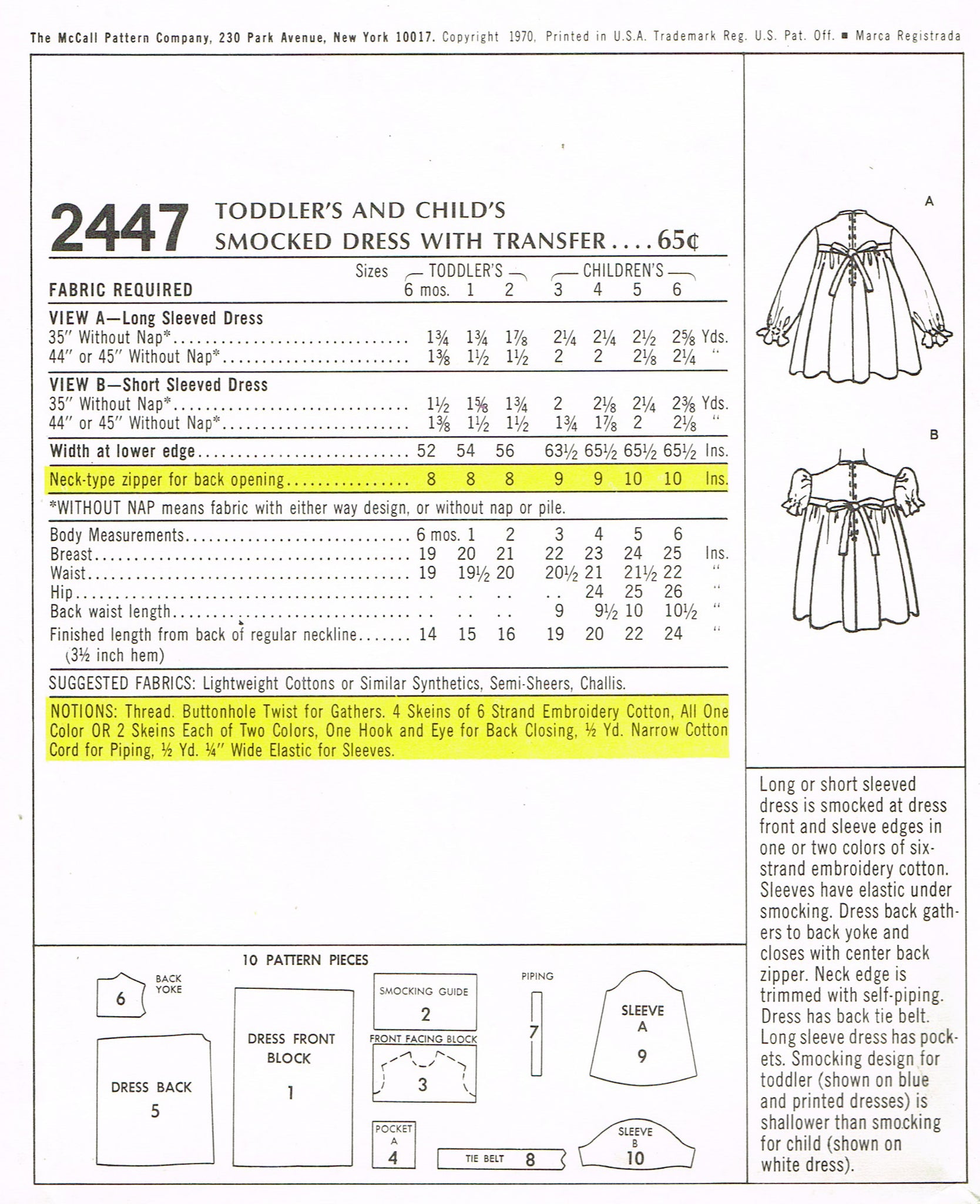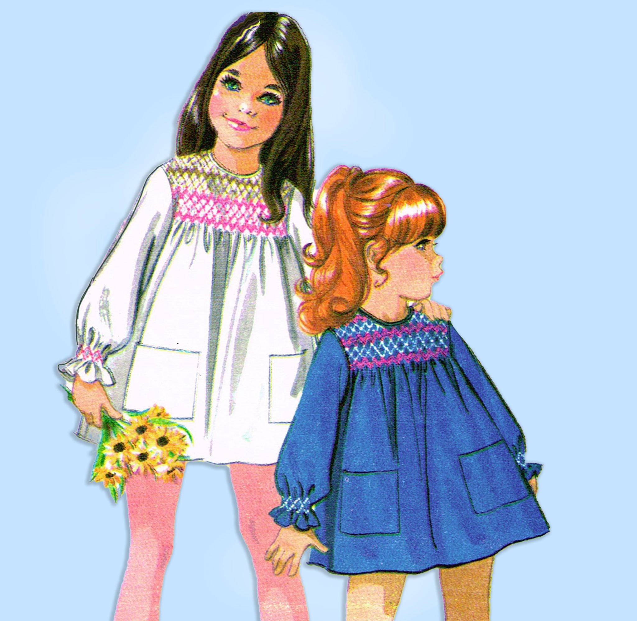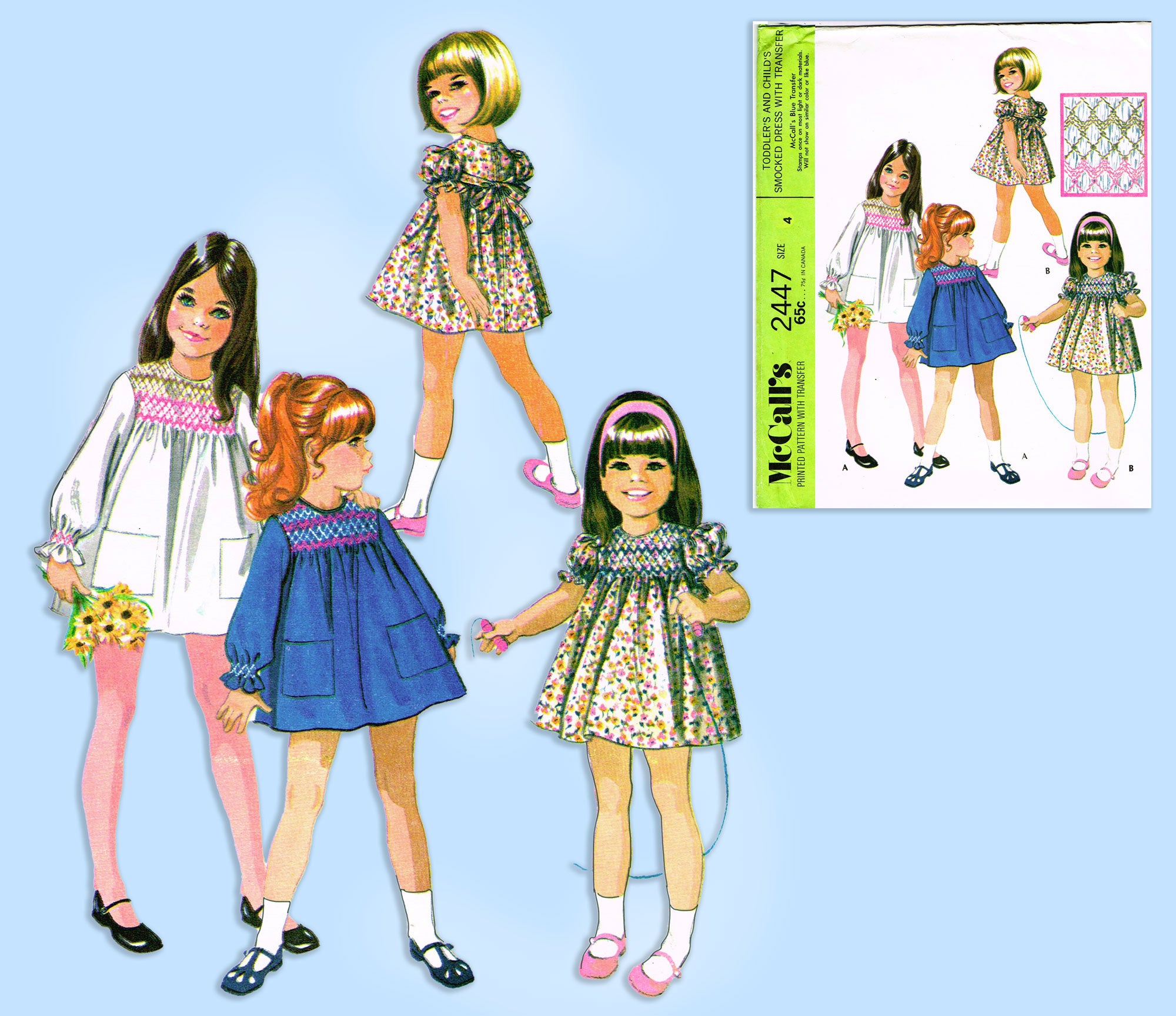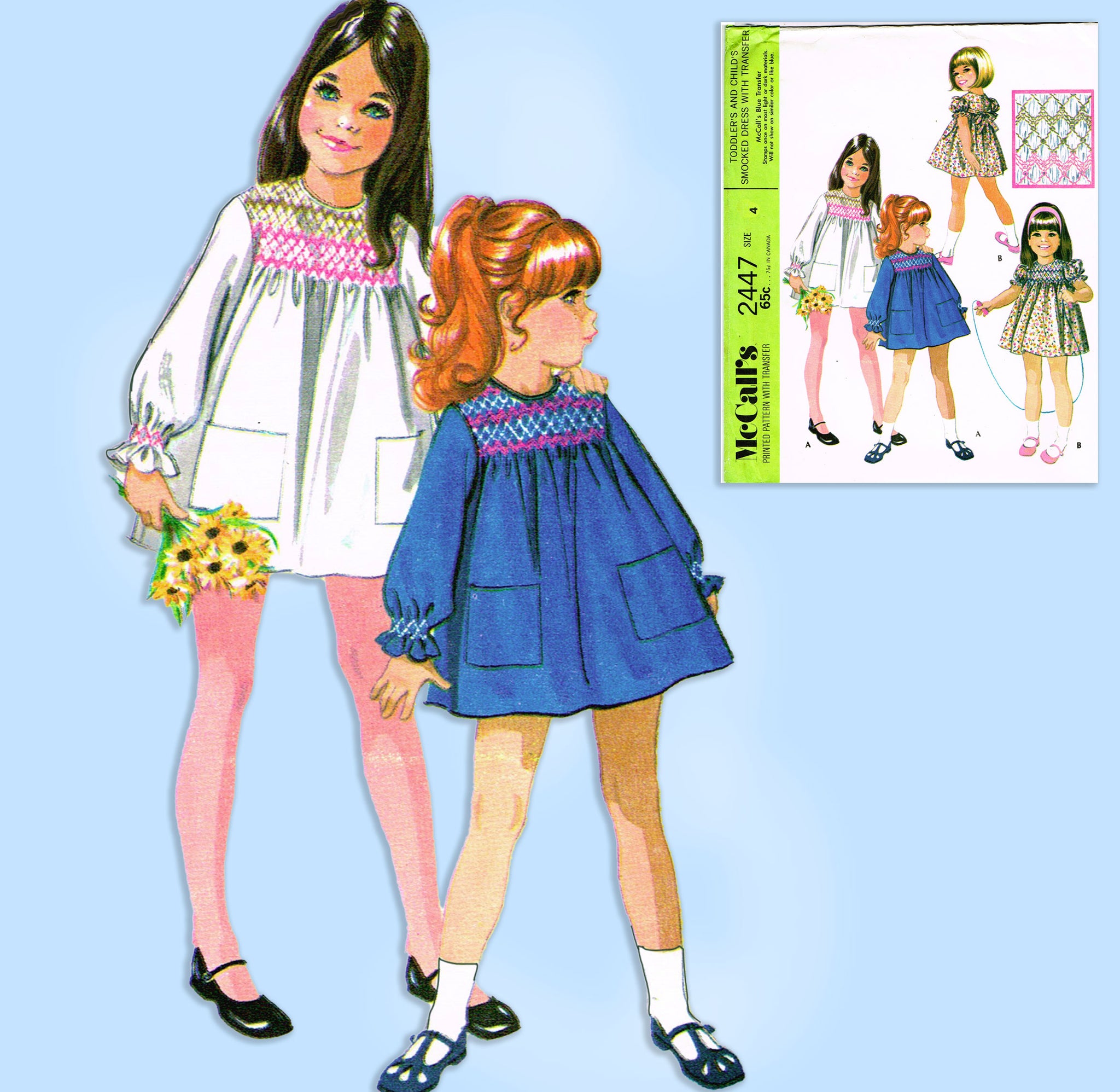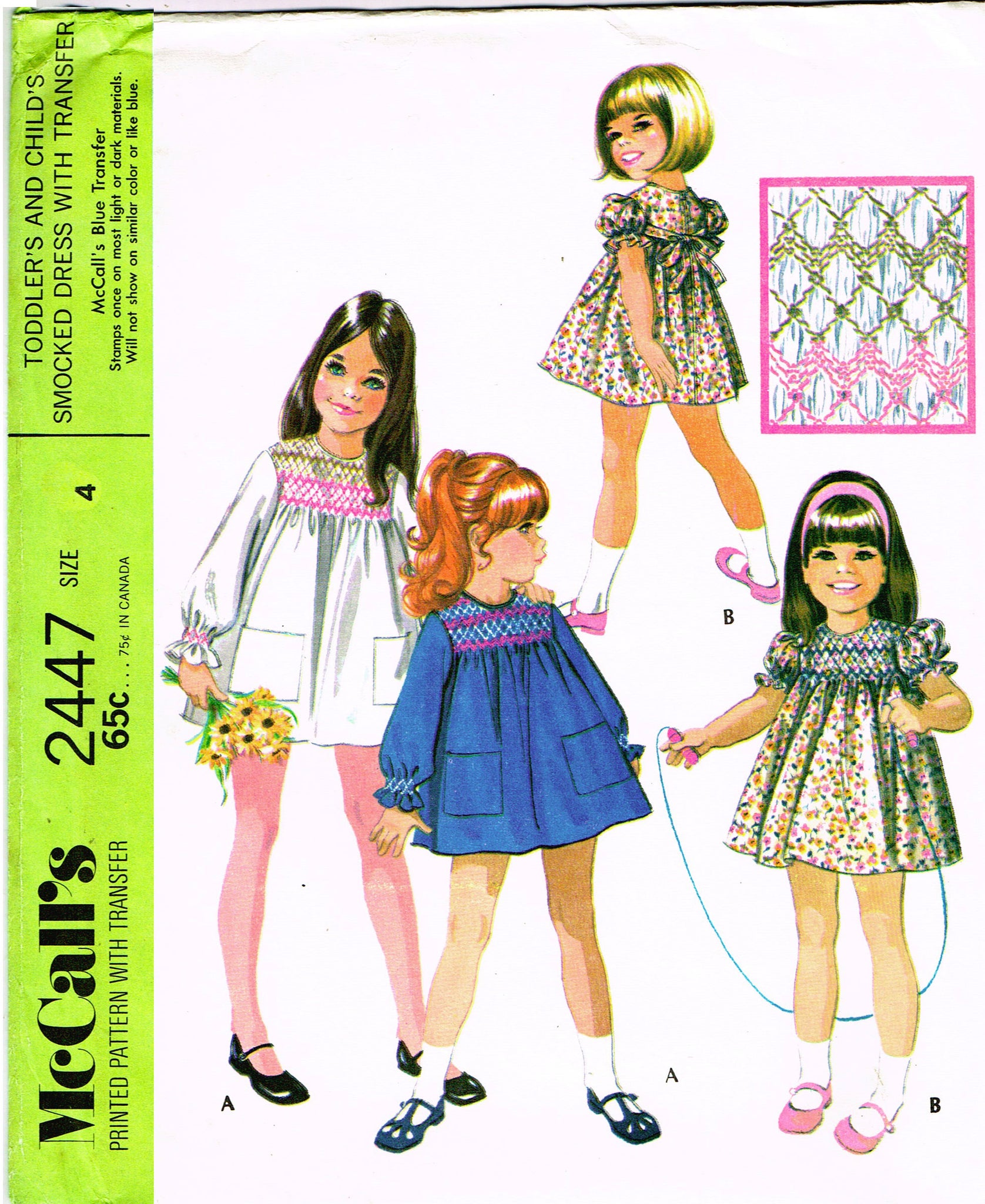 McCall 2447: 1970s Uncut Toddler Girls Smocked Dress Sz 4 Vintage Sewing Pattern