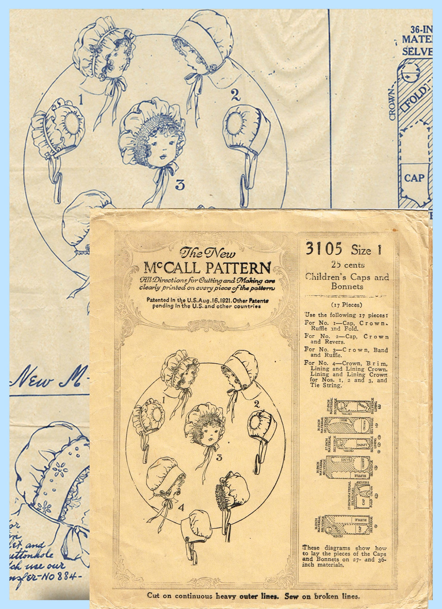 McCall 3105: 1920s Rare & Sweet Baby Caps & Bonnet Size 1 Vintage Sewing Pattern