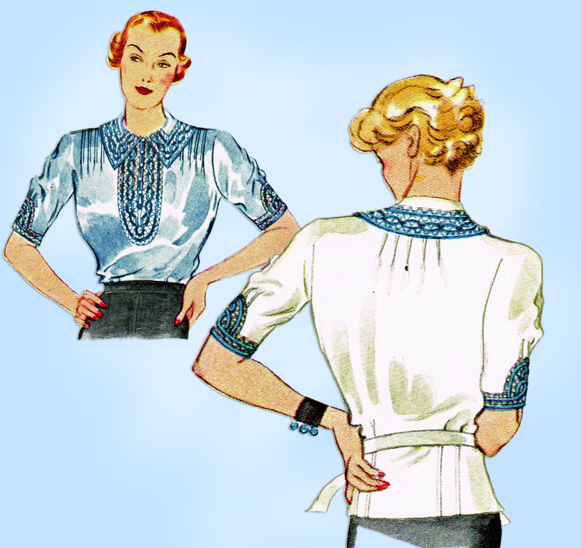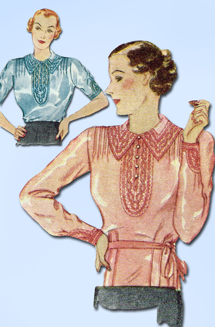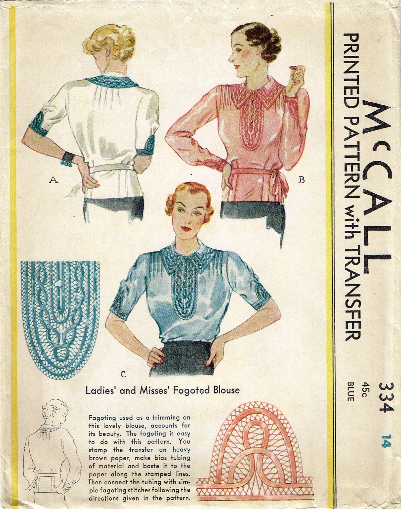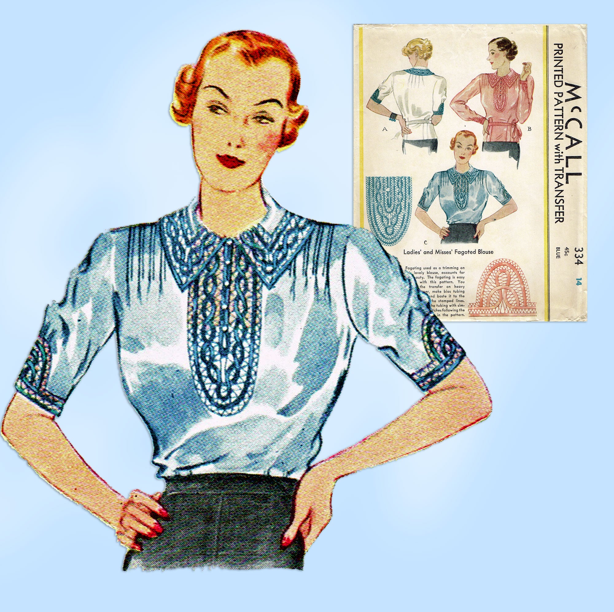 McCall 334: 1930s Rare Misses Fagoted Blouse Sz 32 Bust Vintage Sewing Pattern