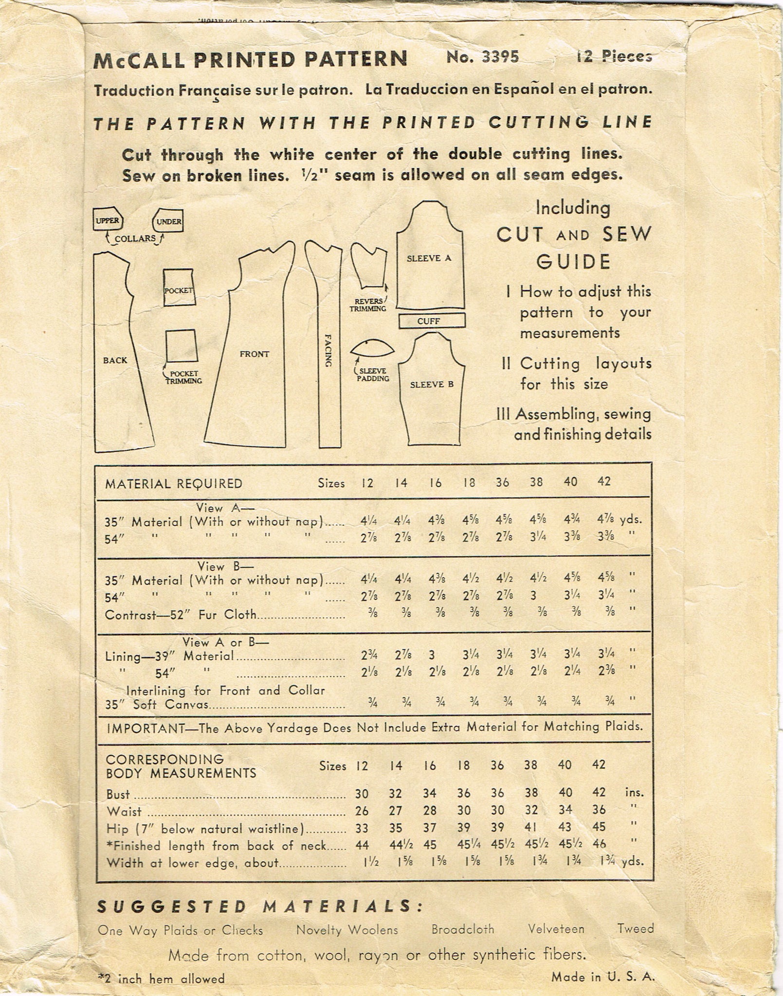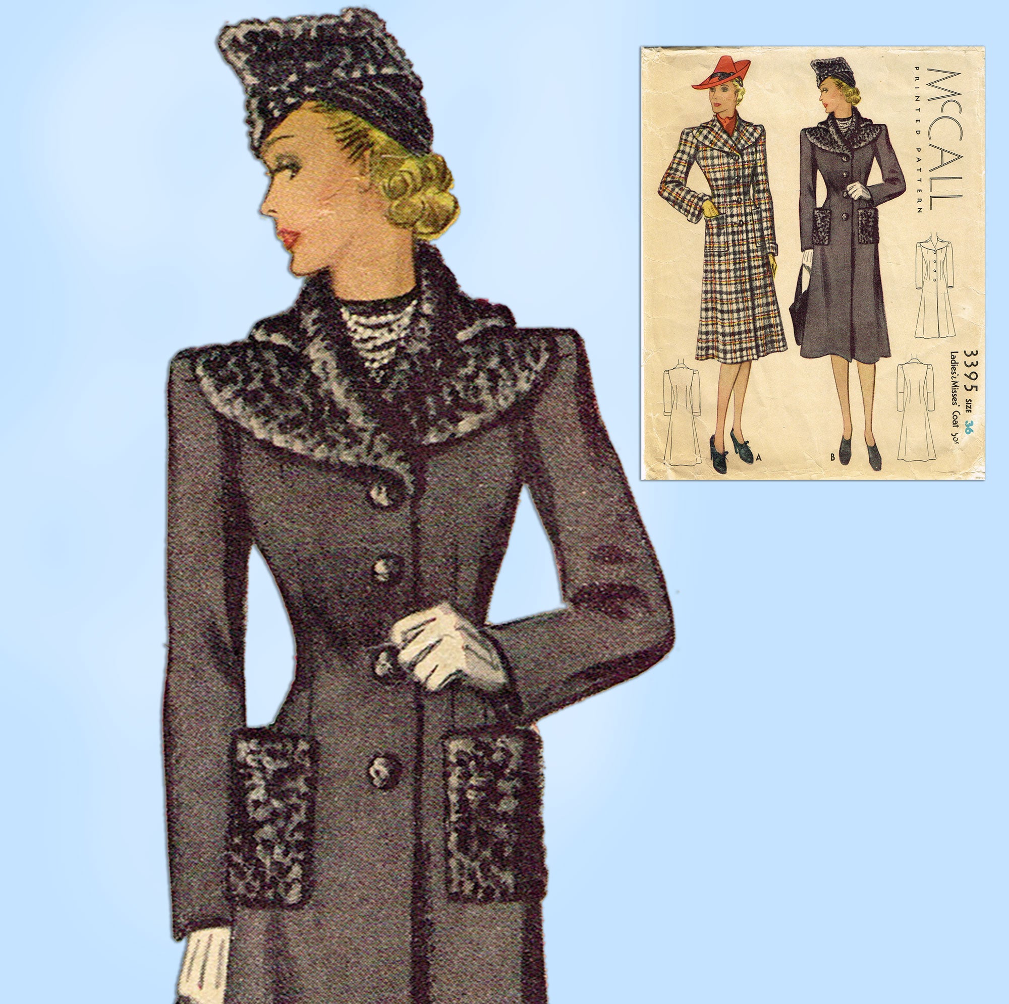 McCall 3395: 1930s Stunning Misses Winter Coat Sz 36 Bust Vintage Sewing Pattern