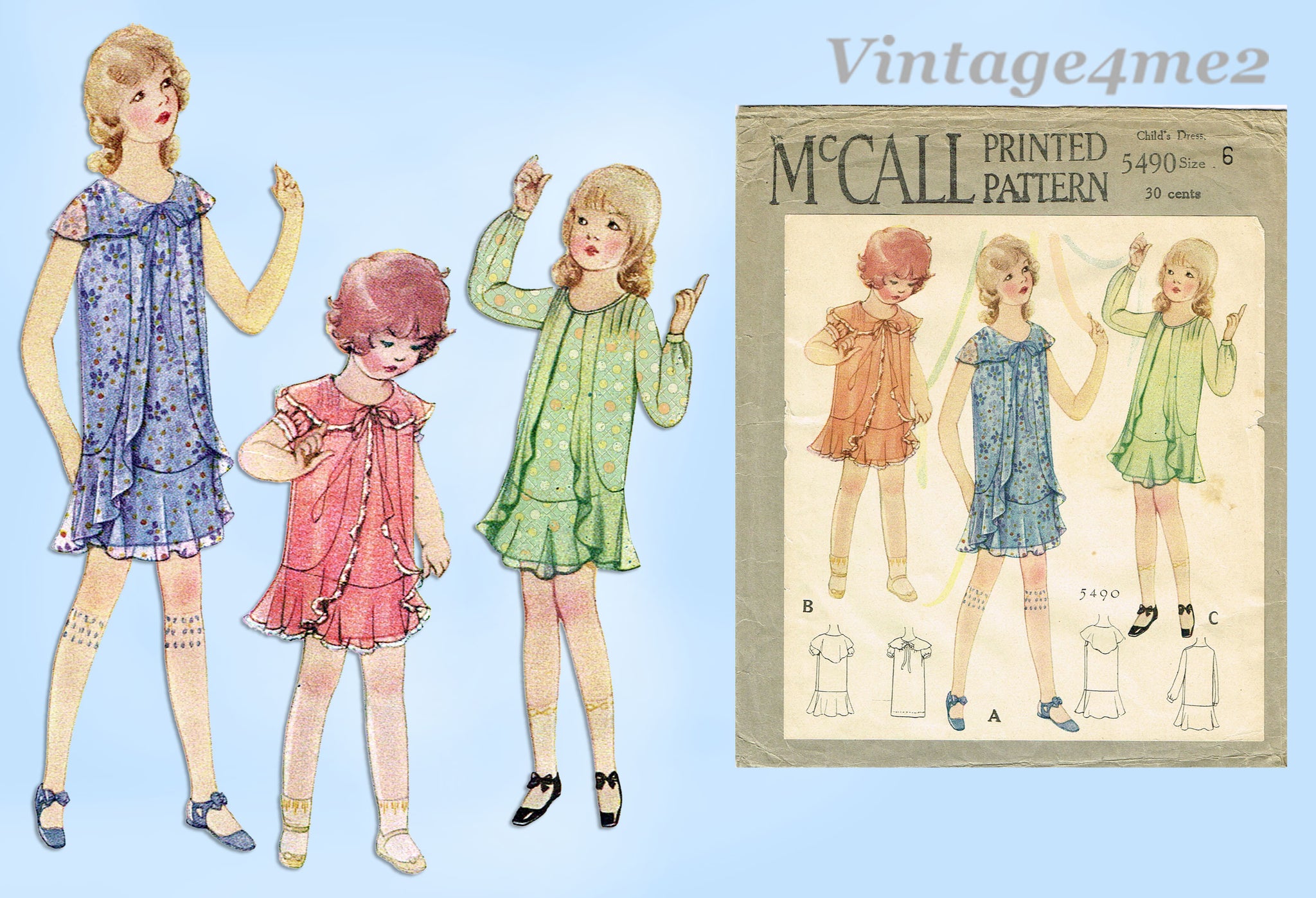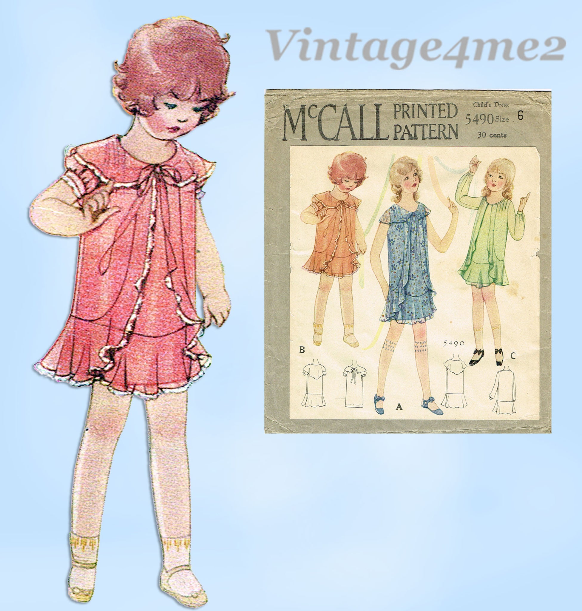 McCall 5490: 1930s Rare Toddler Girls Flapper Dress Sz 6 Vintage Sewing Pattern