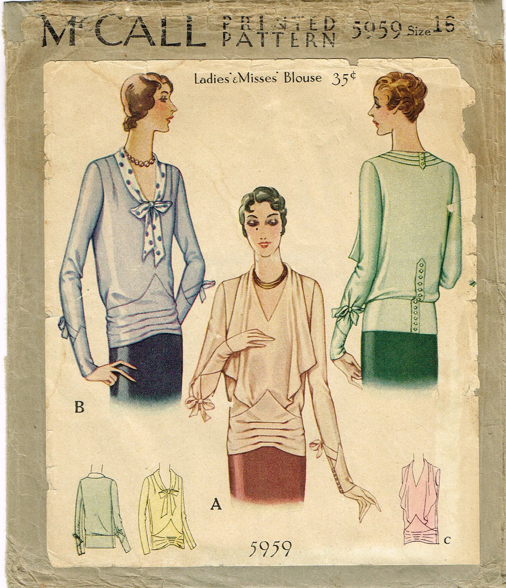 McCall 5959: 1930s Uncut Misses Blouse Gr8 Lines Sz 34 B Vintage Sewing Pattern