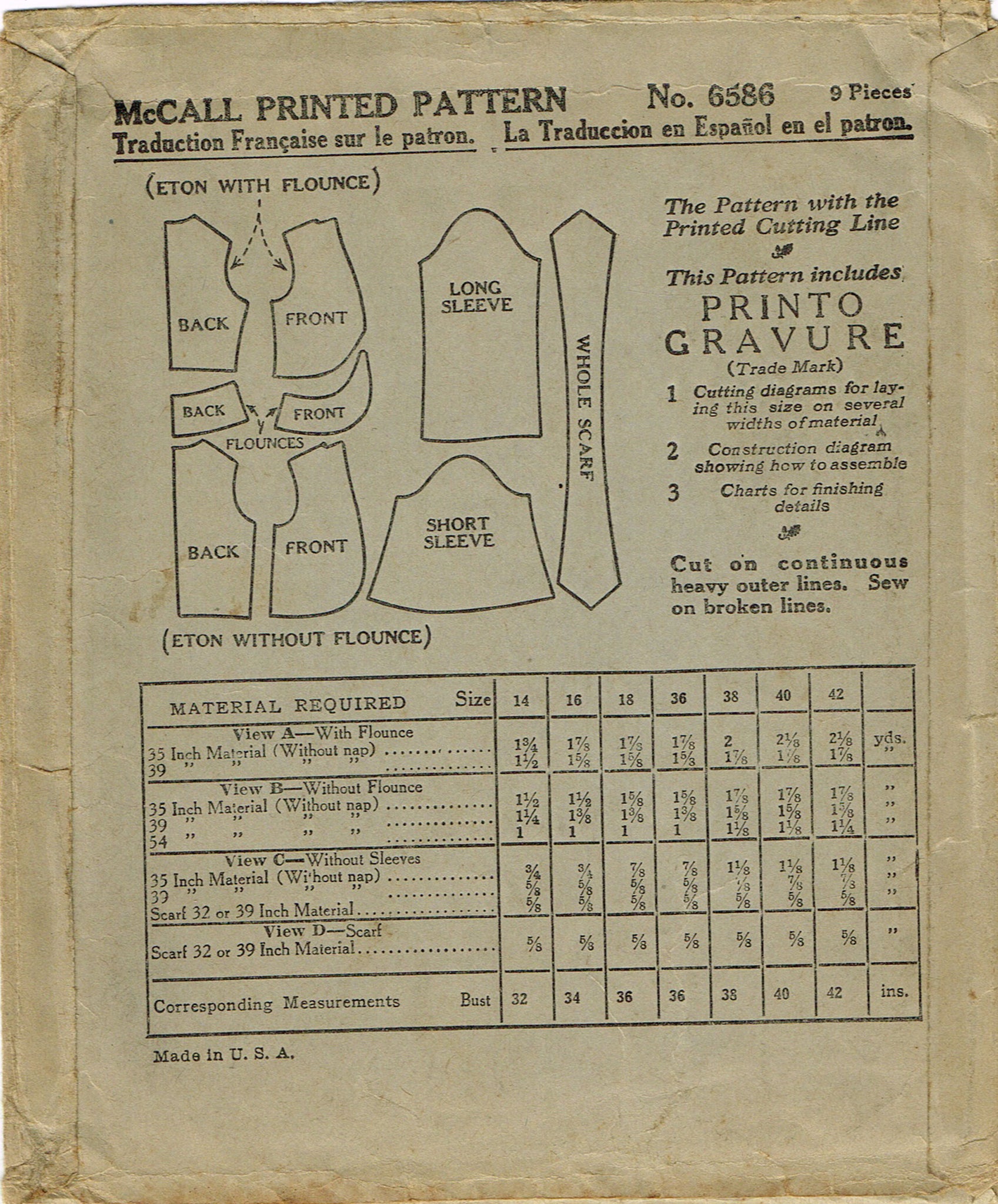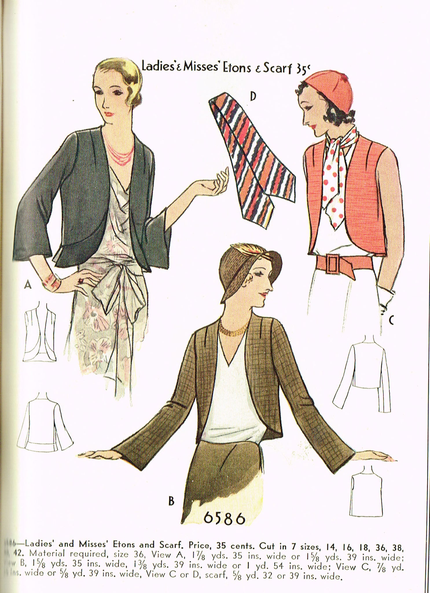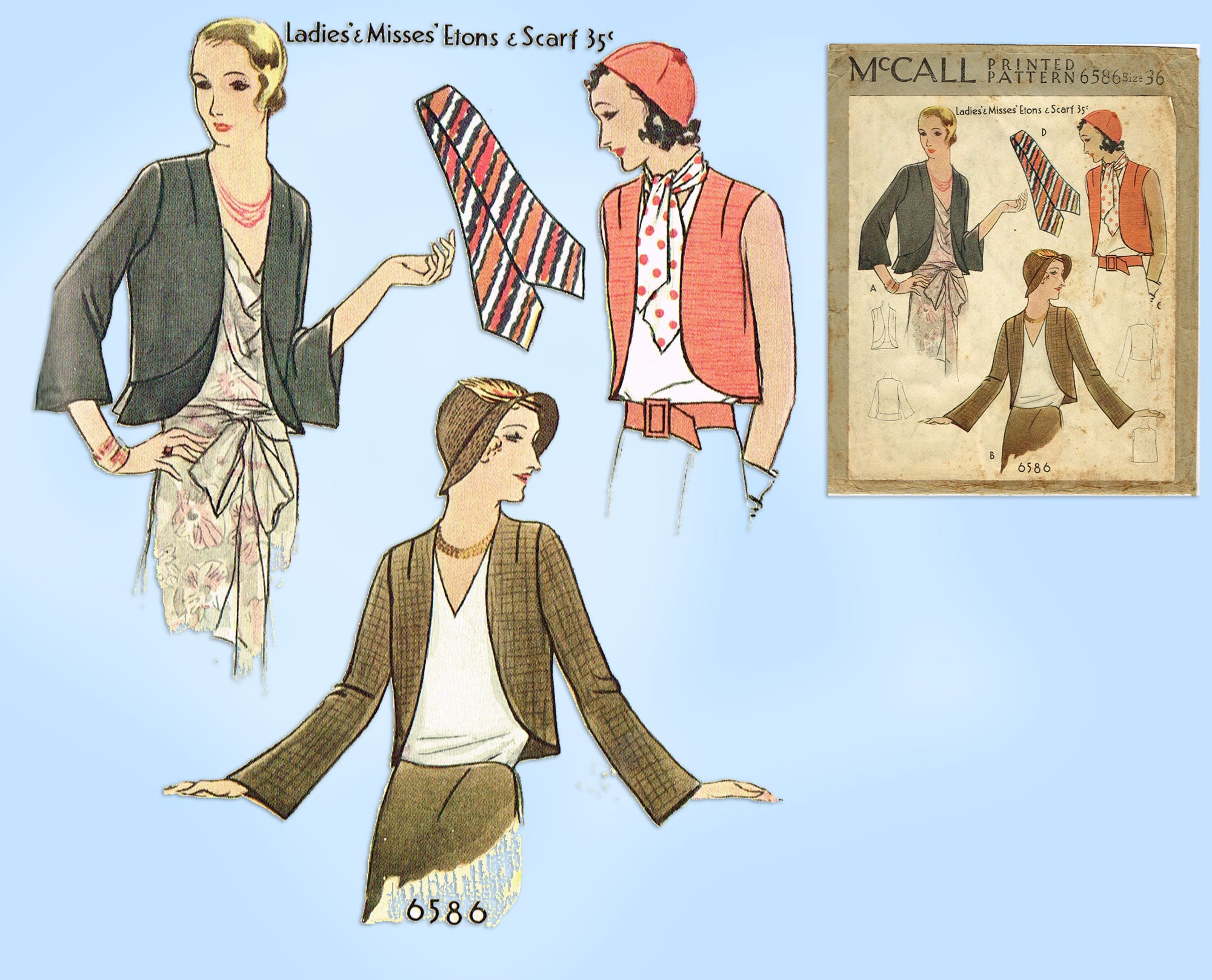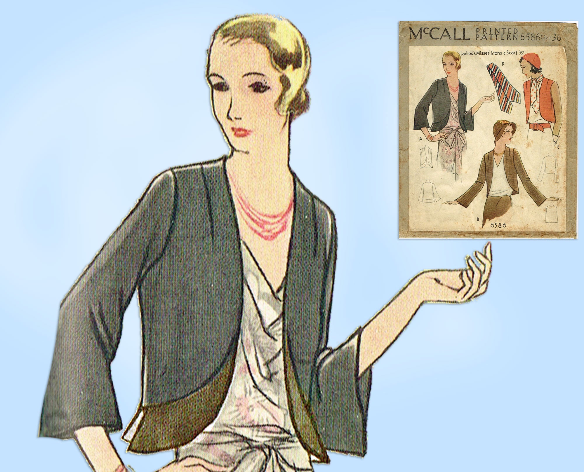 McCall 6586: 1930s Misses Eton Jacket & Scarf Sz 36 Bust Vintage Sewing Pattern