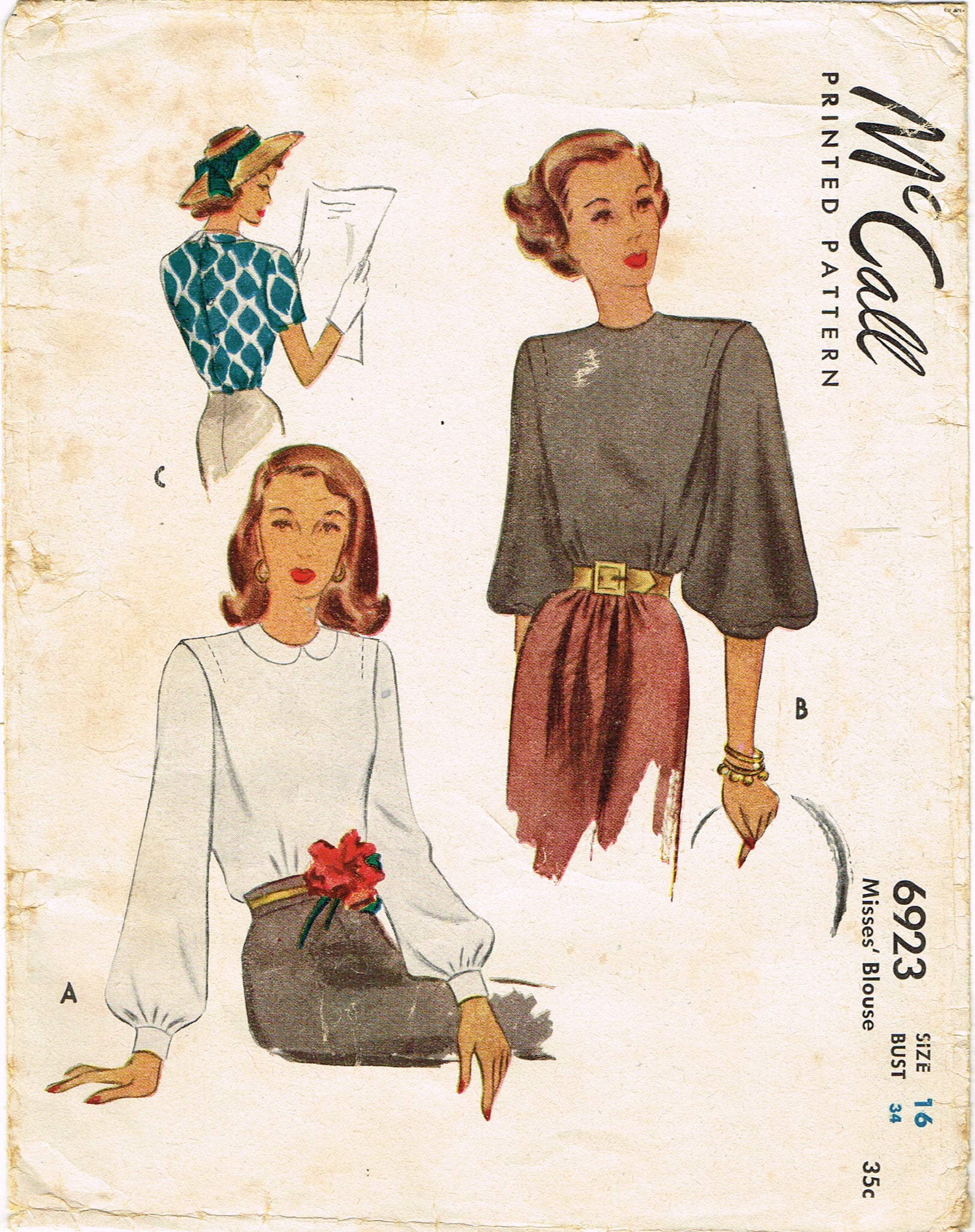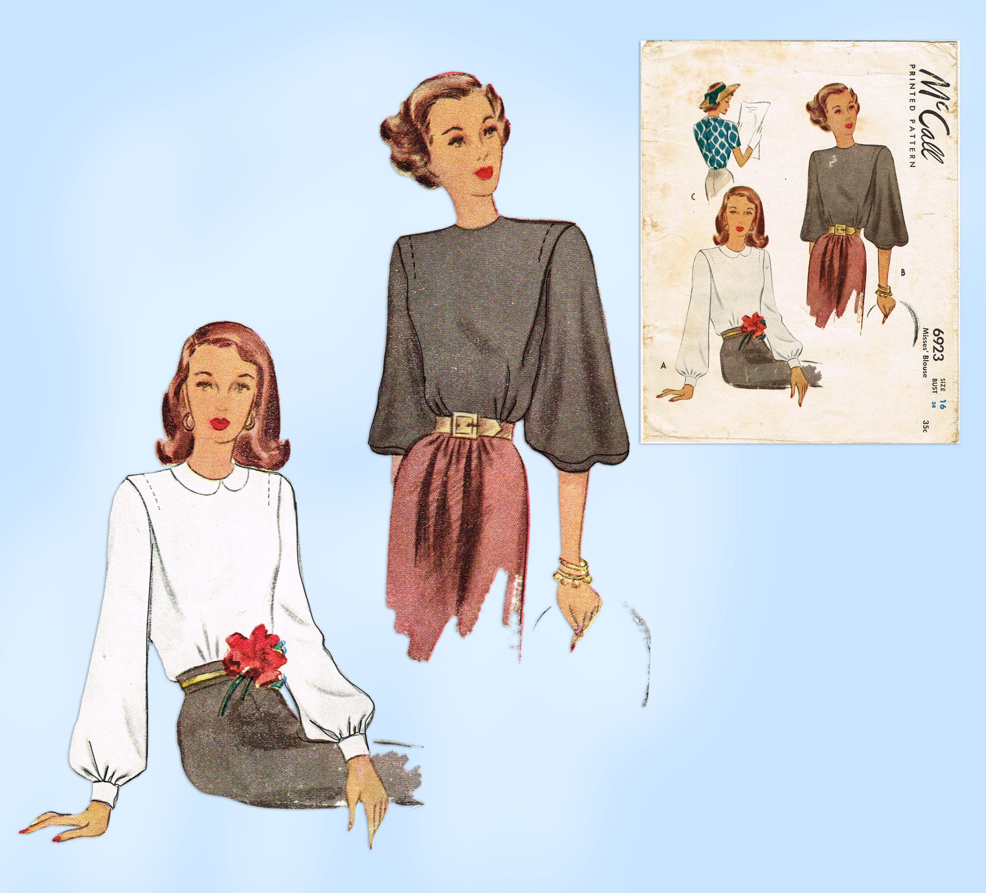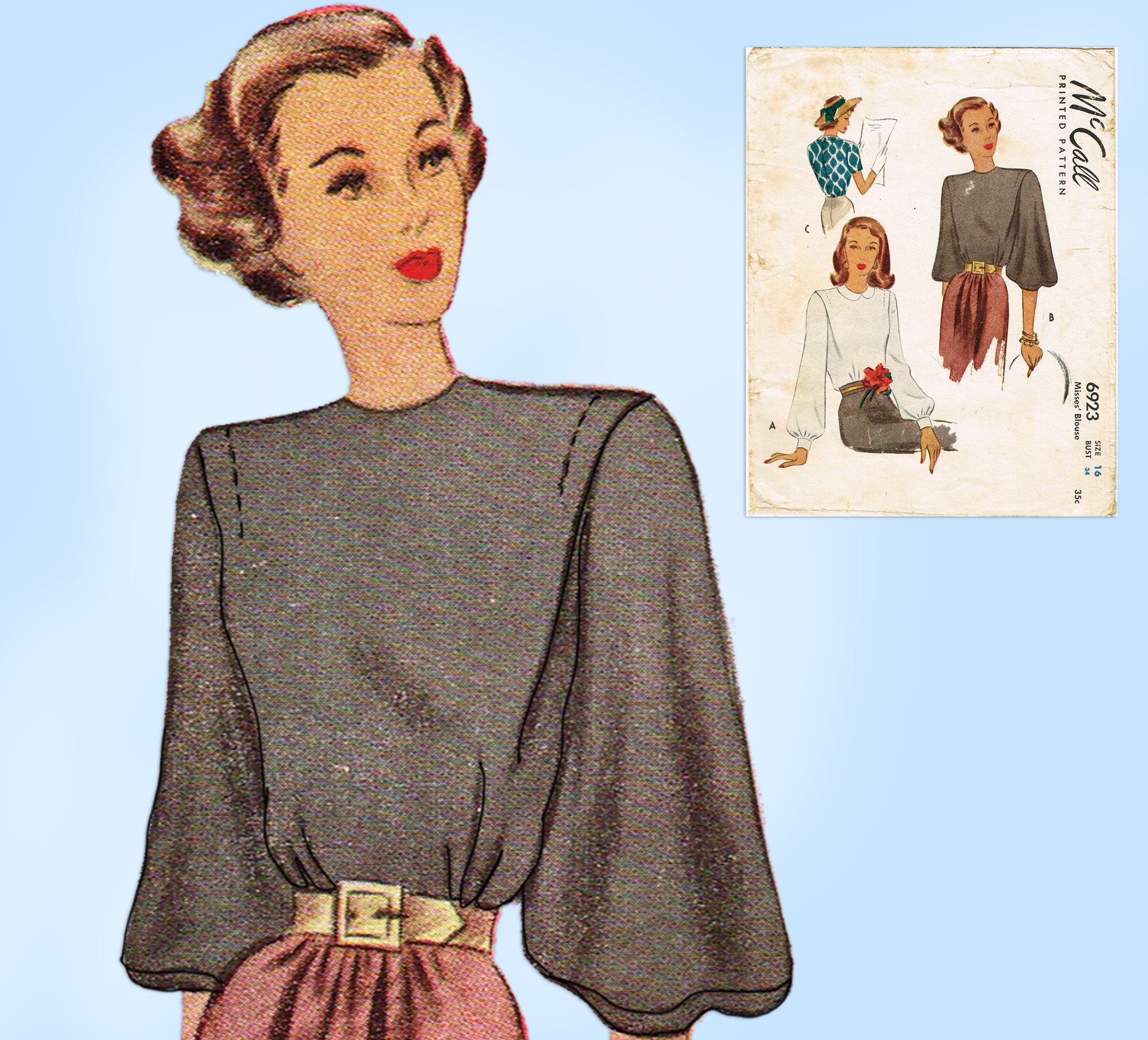 McCall 6923: 1940s Misses Blouse w Puff Sleeves Sz 34 B Vintage Sewing Pattern