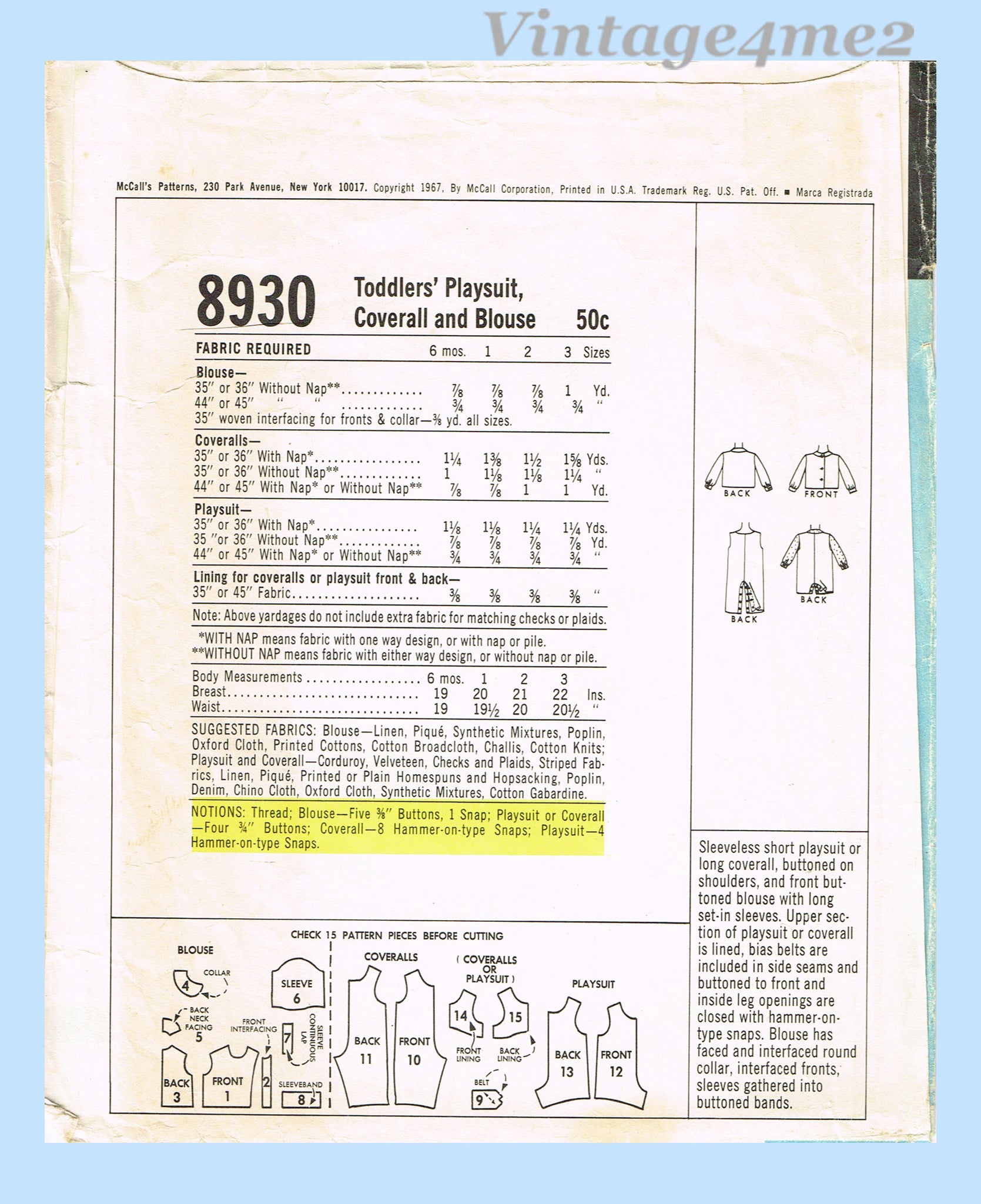 McCall 8930: 1960s Cute Baby Helen Lee Playsuit 6mos Vintage Sewing Pattern