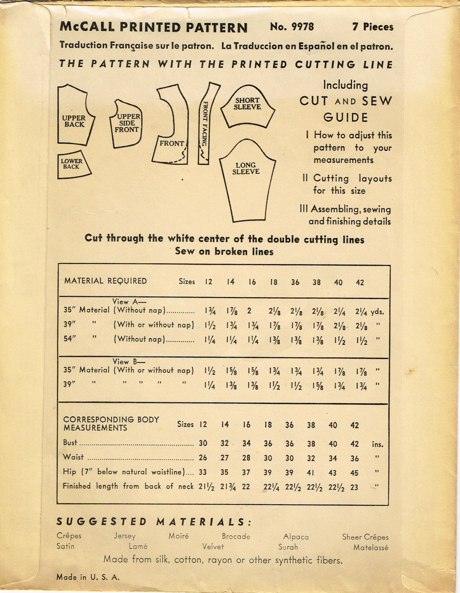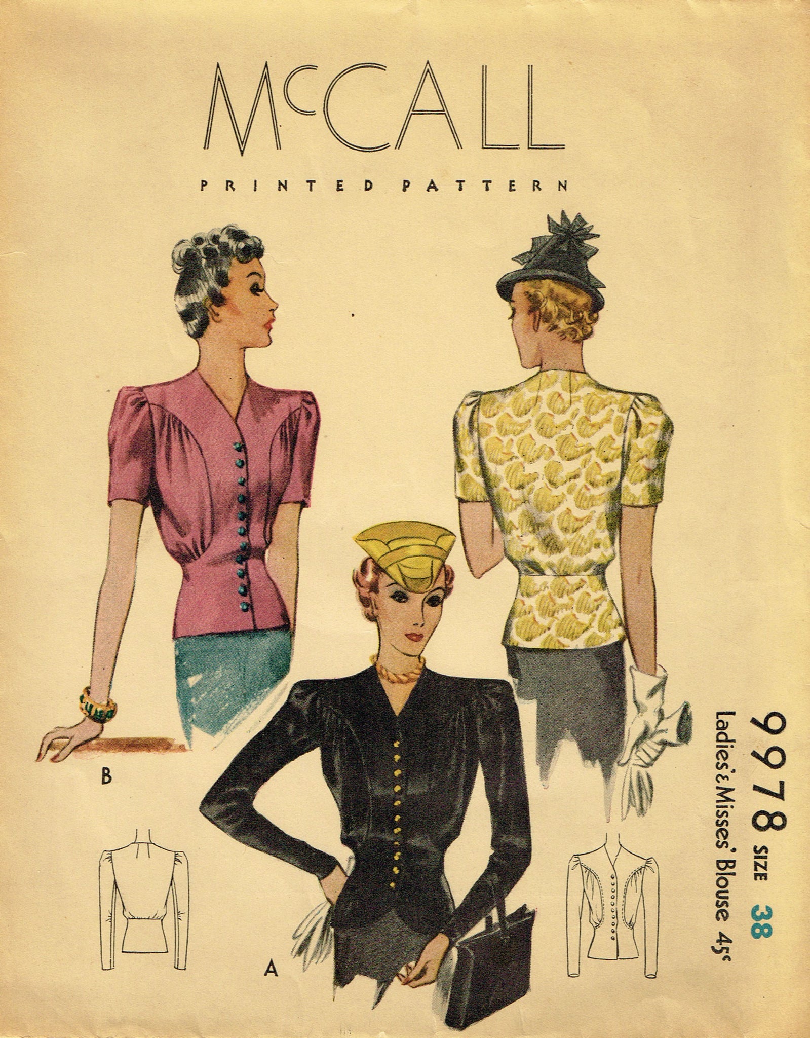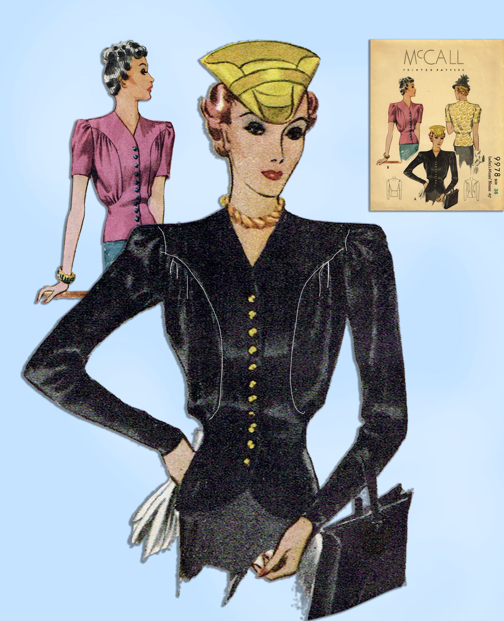 McCall 9978: 1930s Stunning MIsses Fancy Blouse Sz 38 B Vintage Sewing Pattern