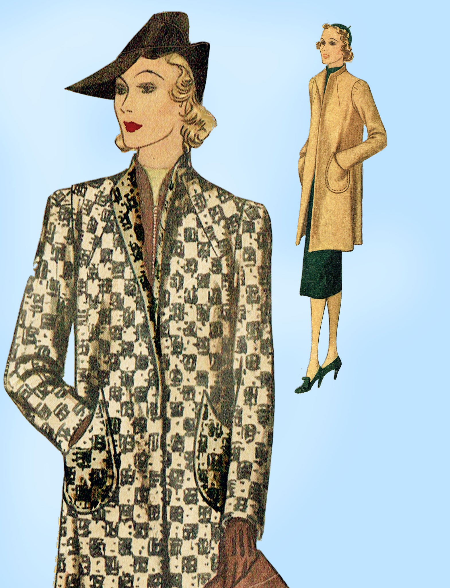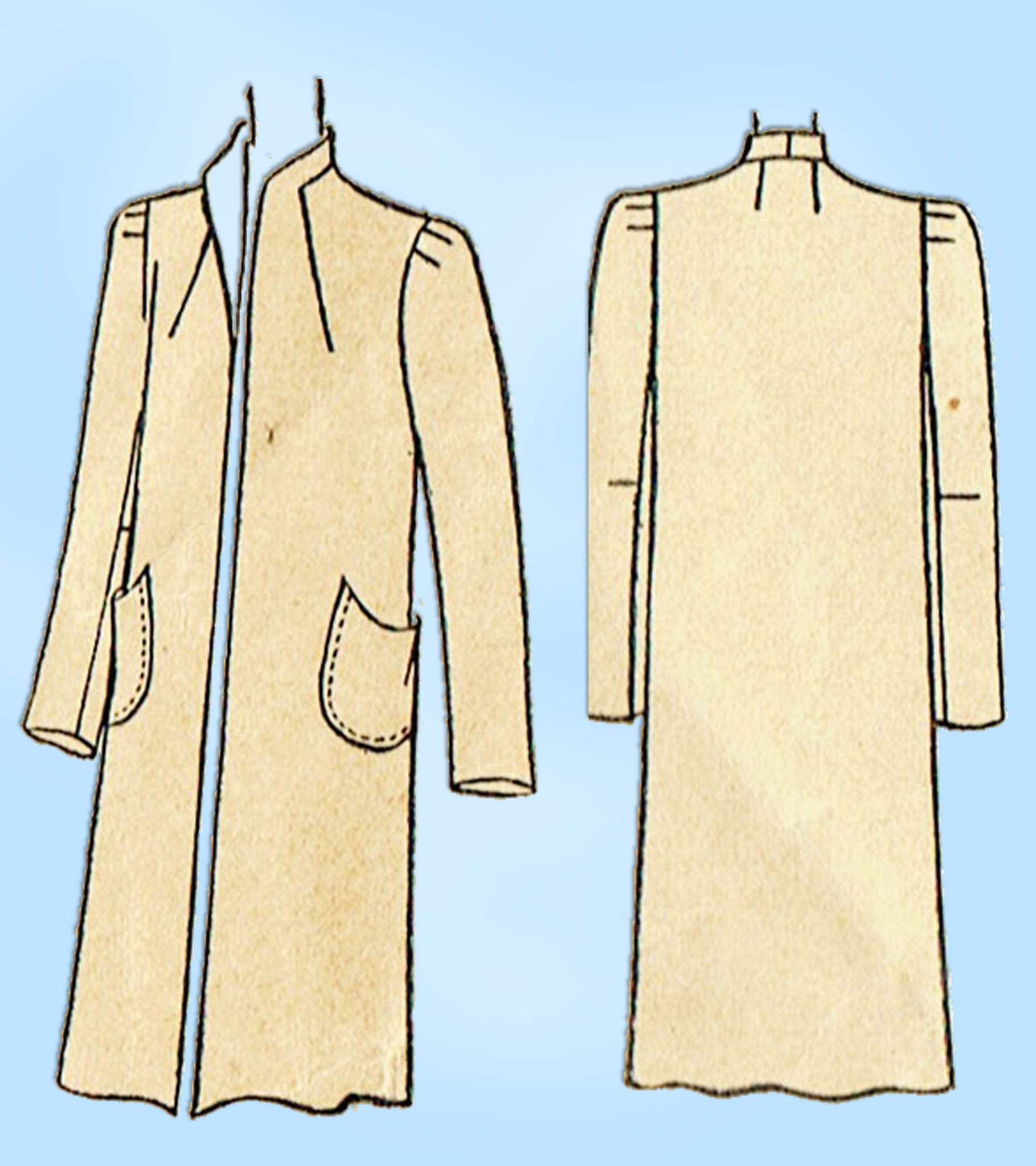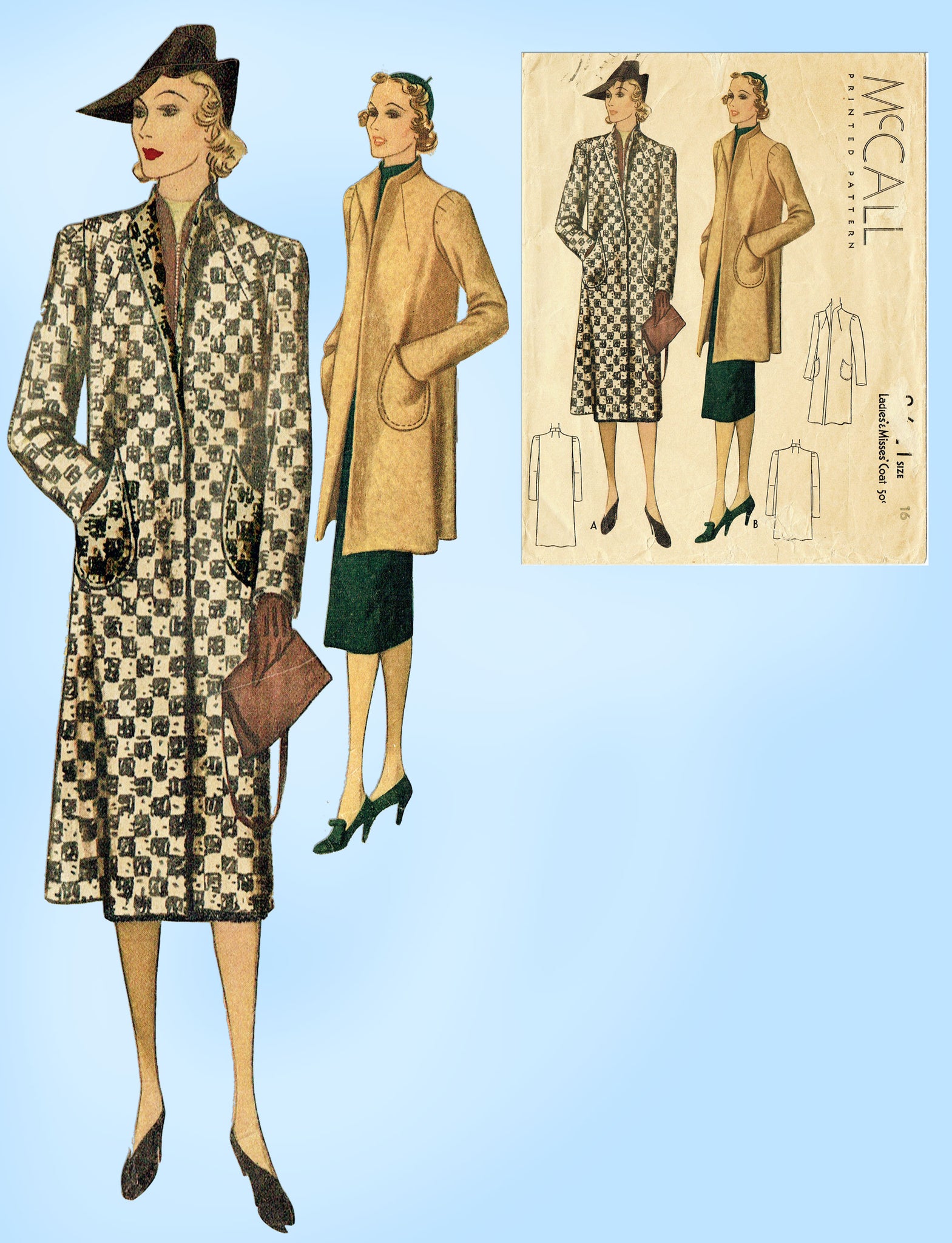 McCall Pattern 9621: 1930s Misses Long Lean Coat Sz 34 B Vintage Sewing Pattern