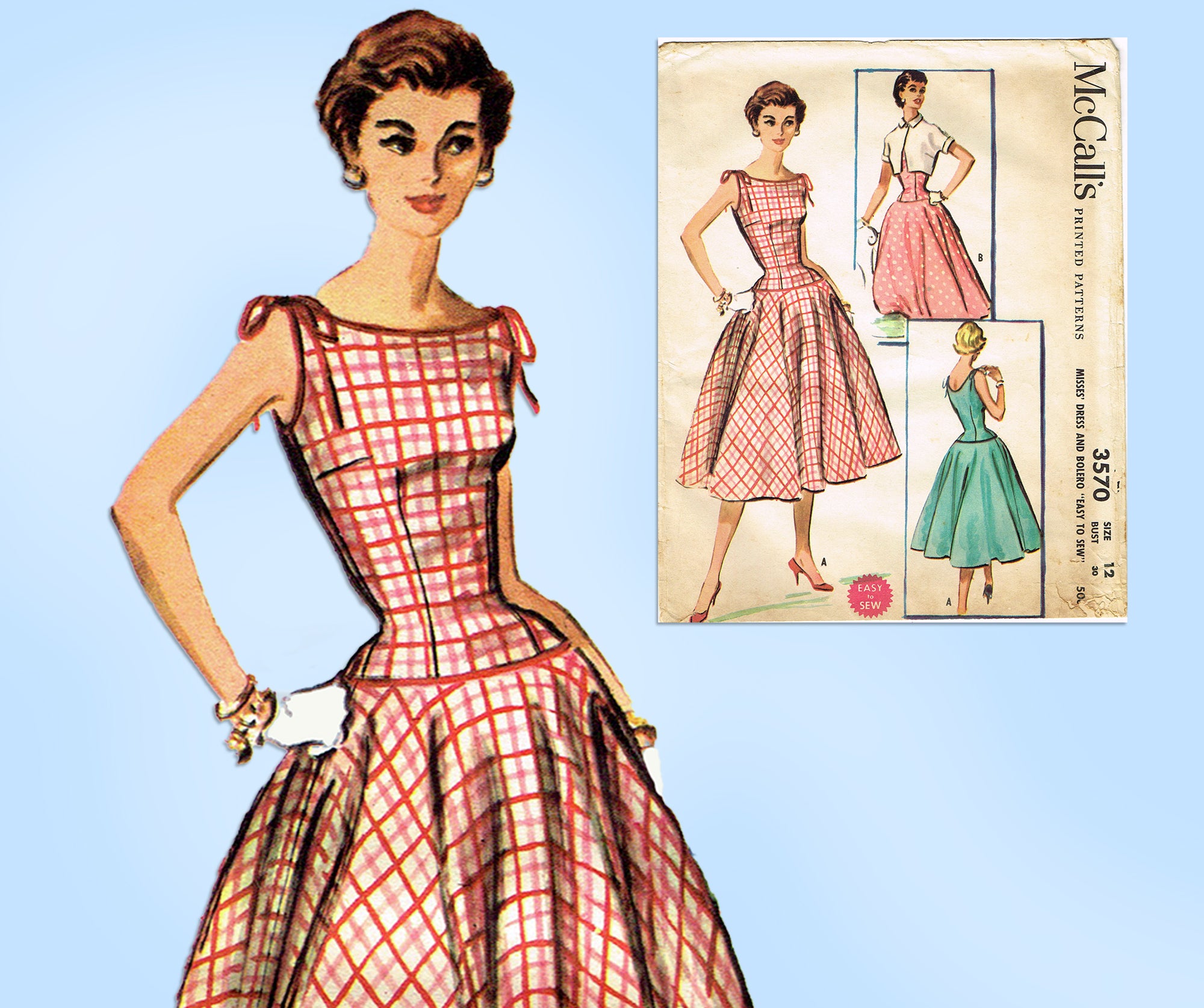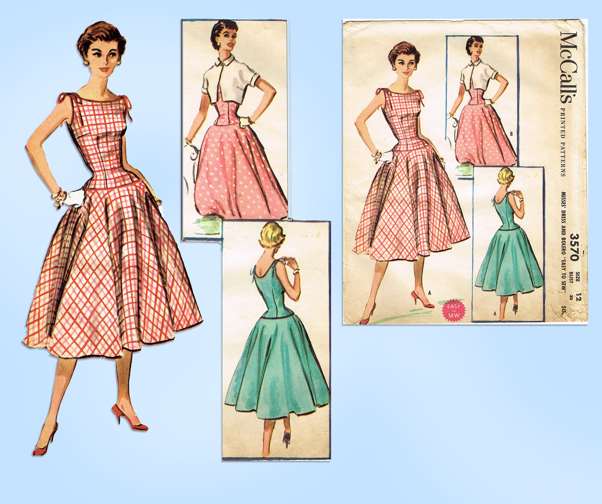McCalls 3570: 1950s Stunning Misses Sun Dress Sz 30 B Vintage Sewing Pattern