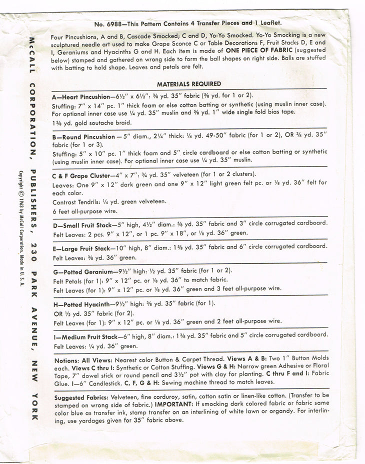 McCalls 6988: Darling Velveteen Fruit Table Decorations or Pincushions Uncut