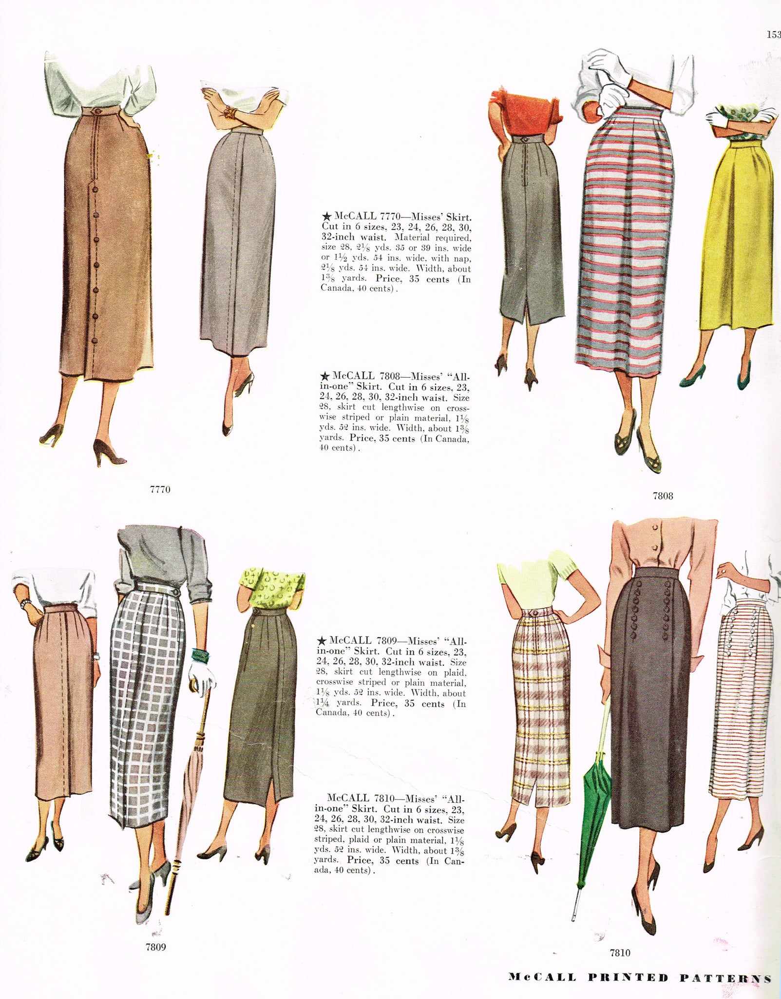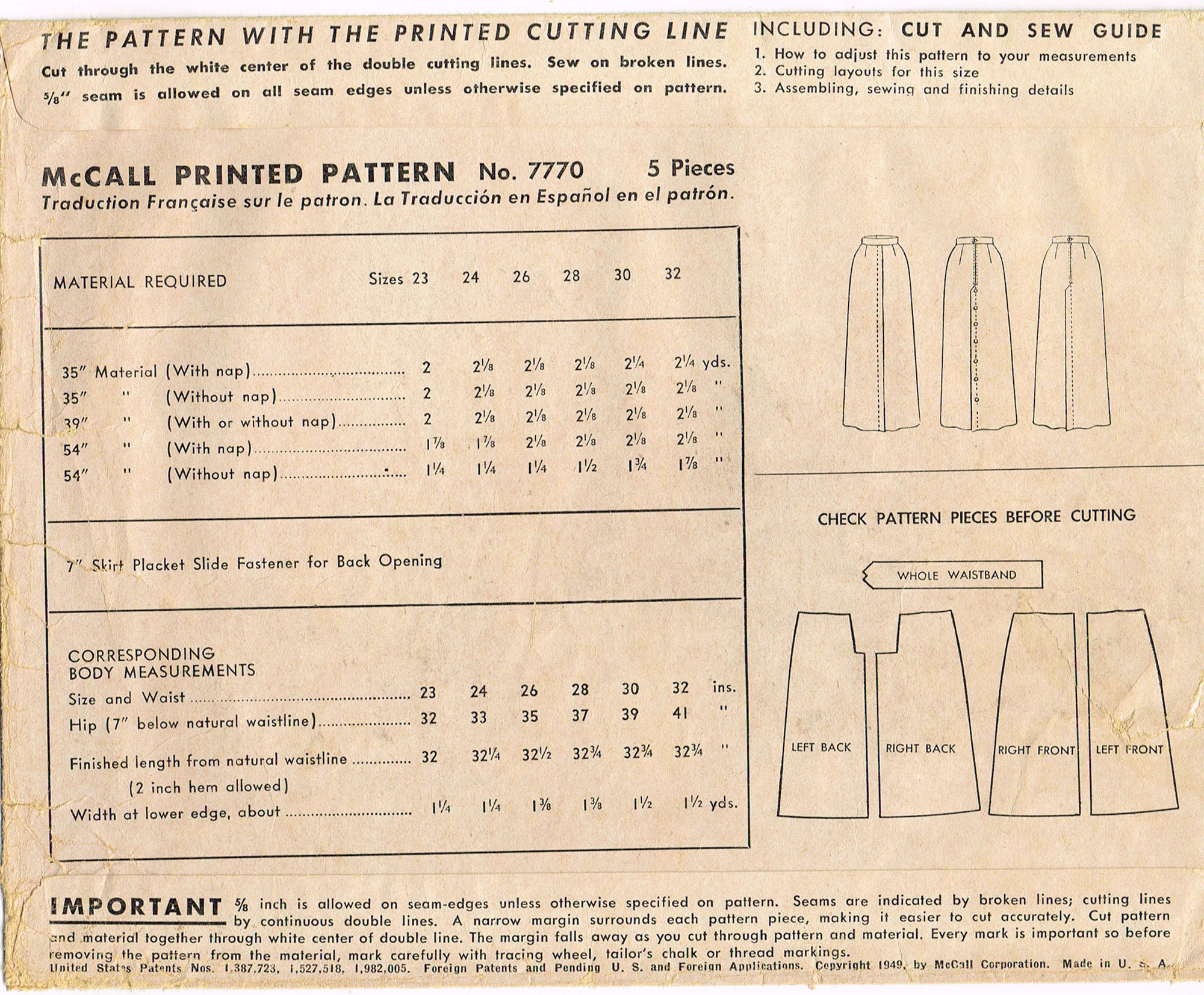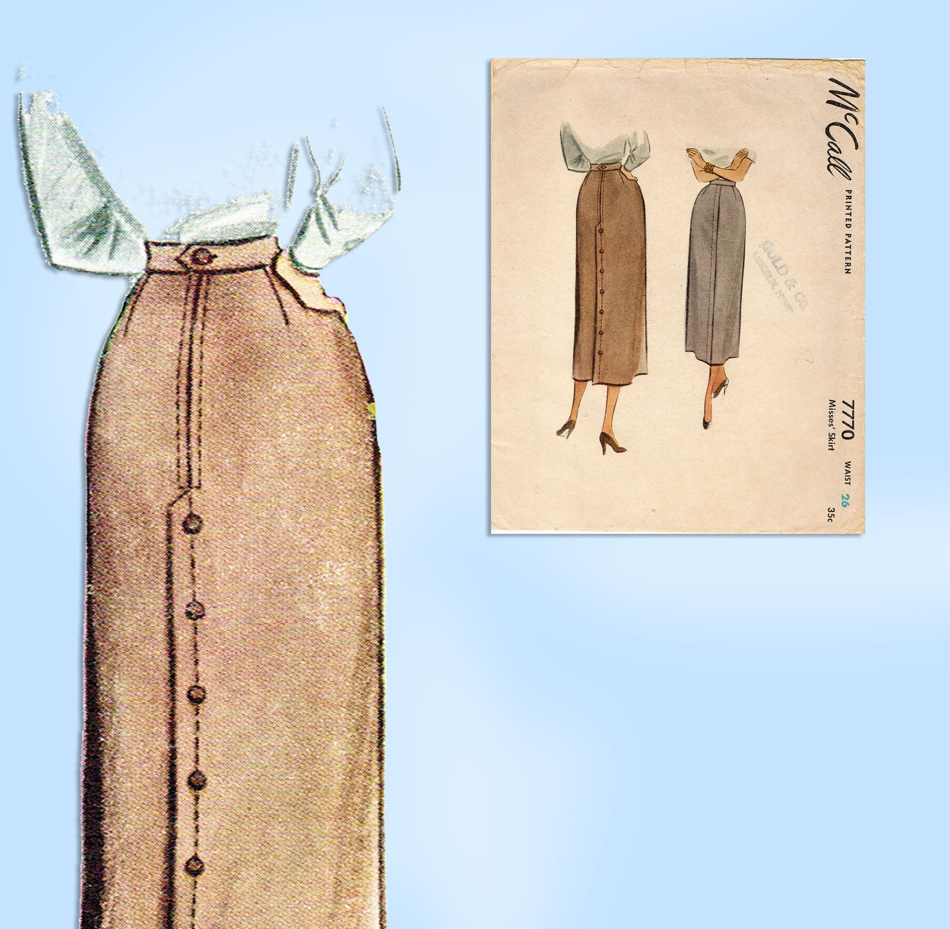 McCall's 7770: 1940s Uncut Misses Slender Skirt Sz 26 W Vintage Sewing Pattern