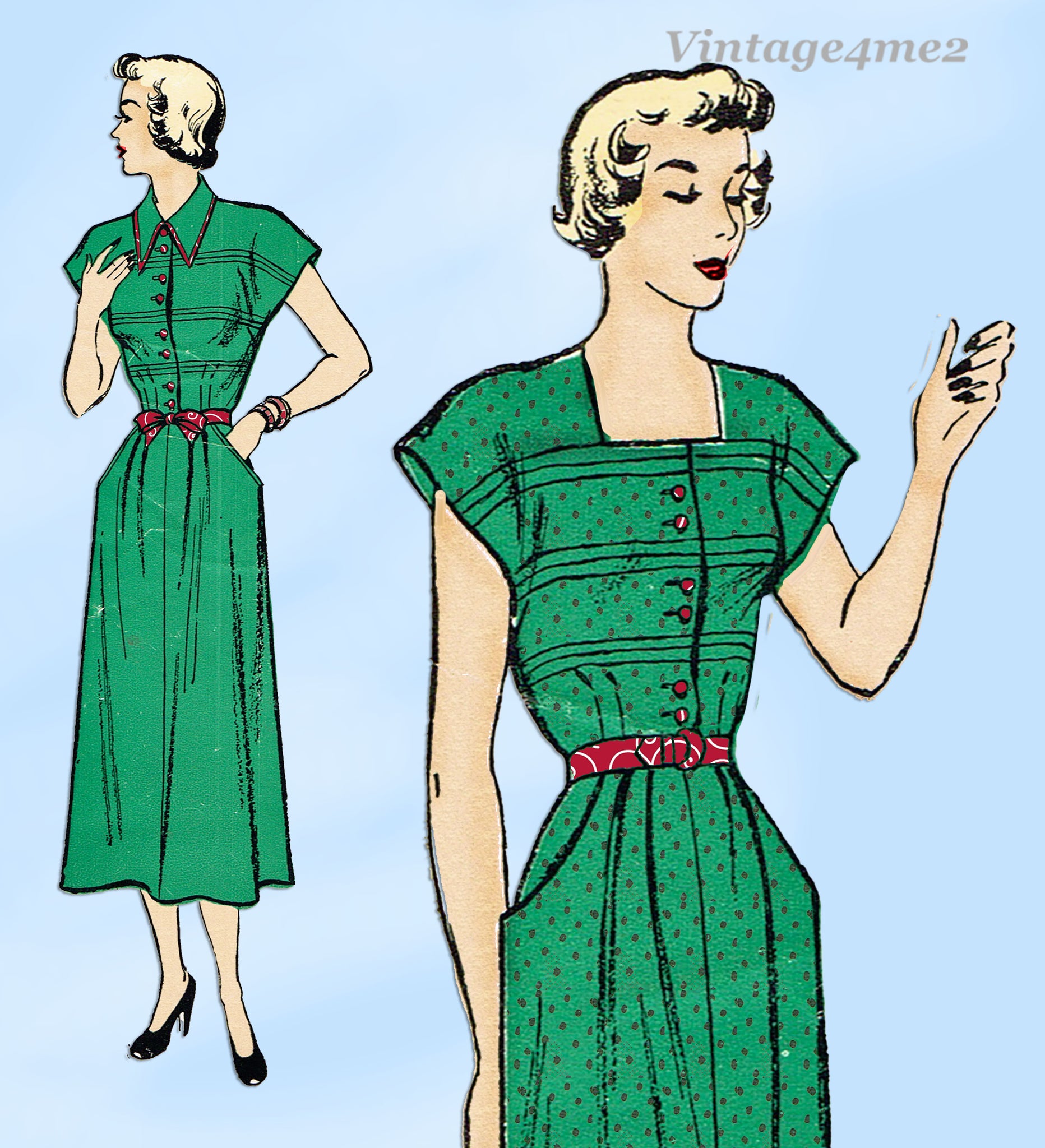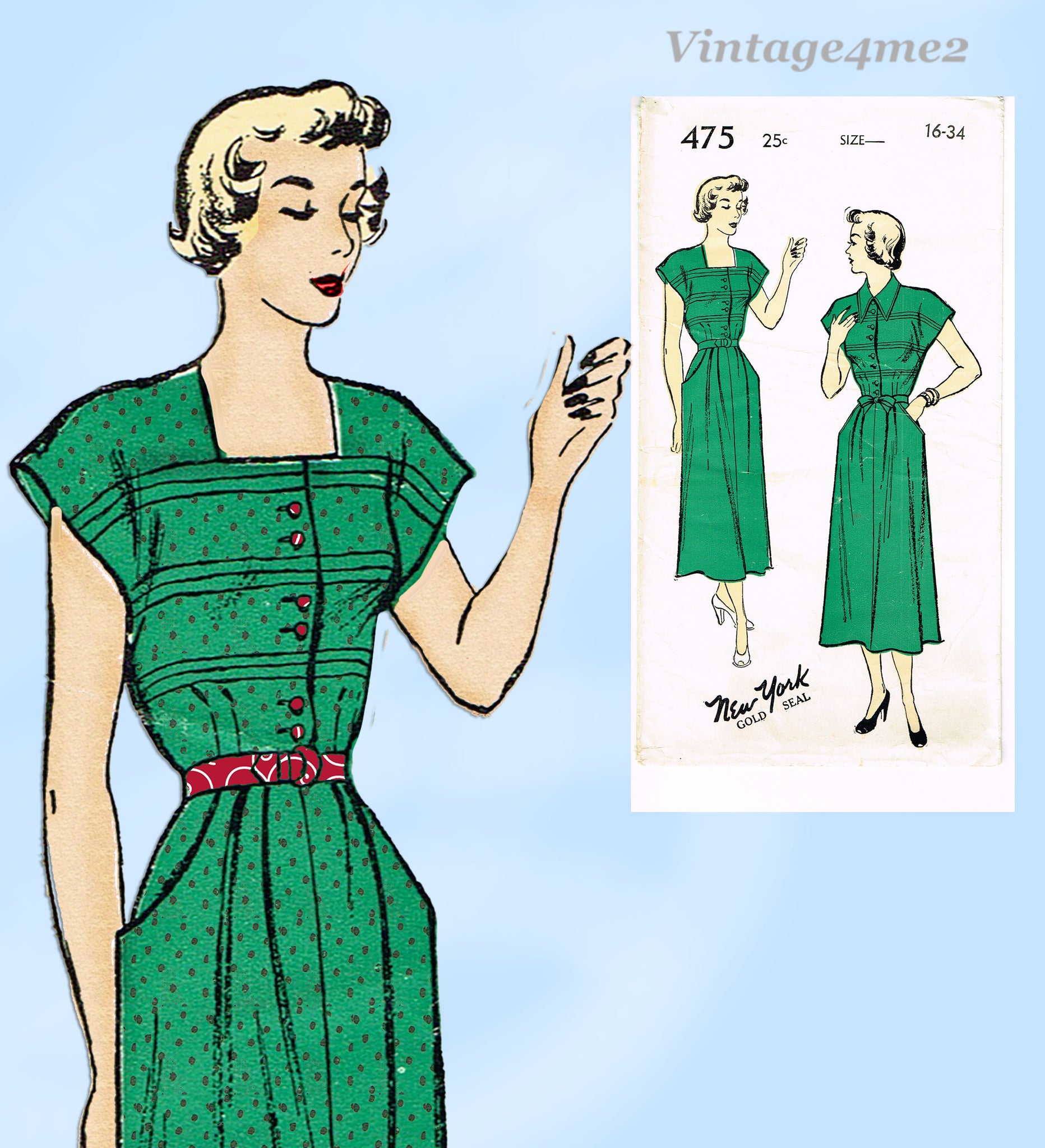 New York 475: 1940s Lovely Misses Street Dress Sz 34 B Vintage Sewing Pattern