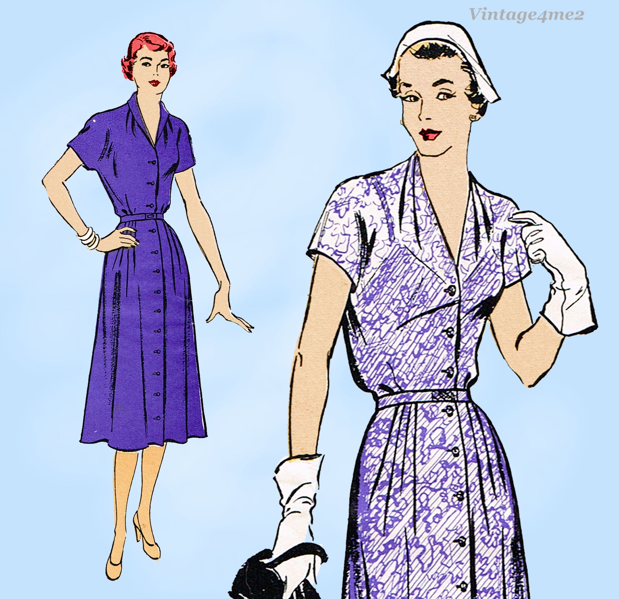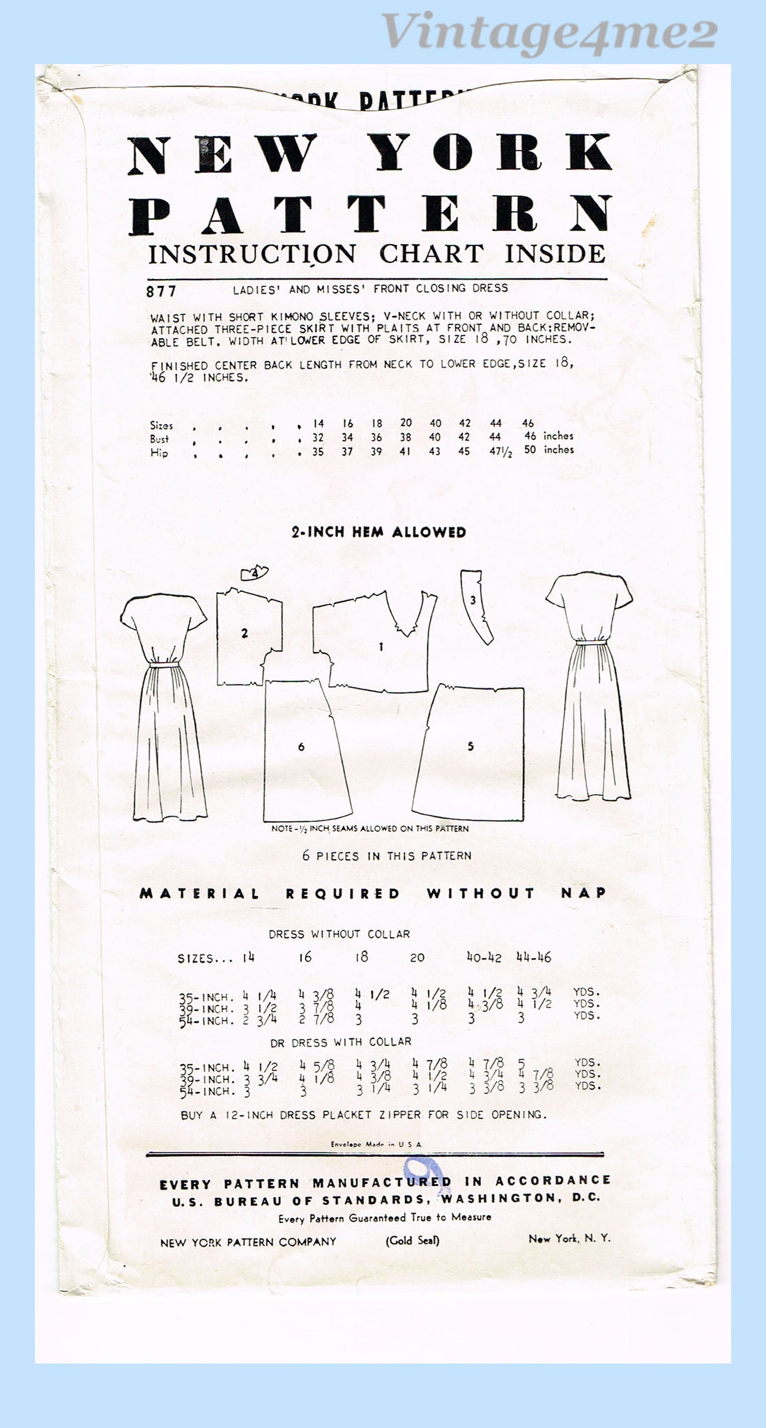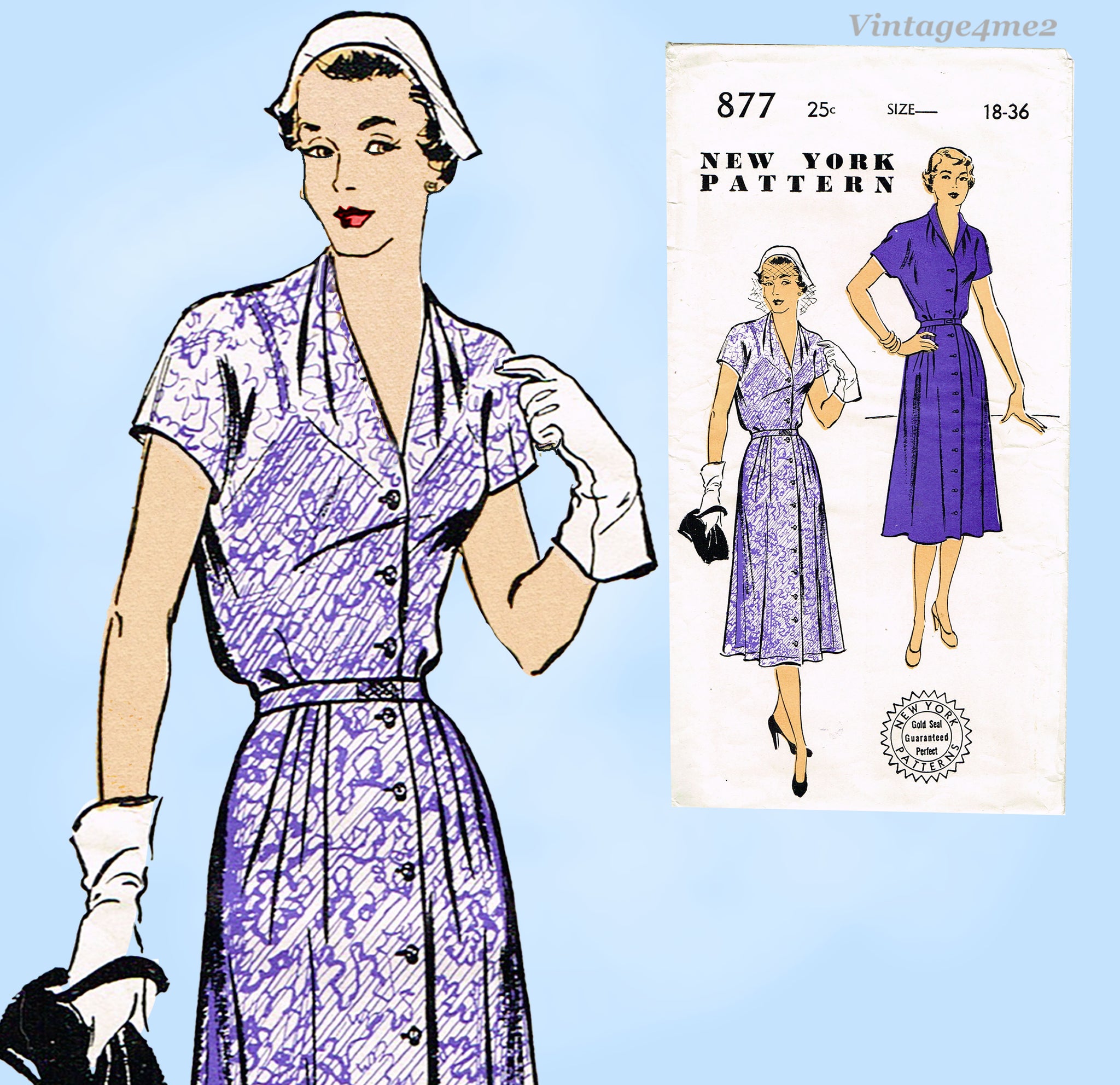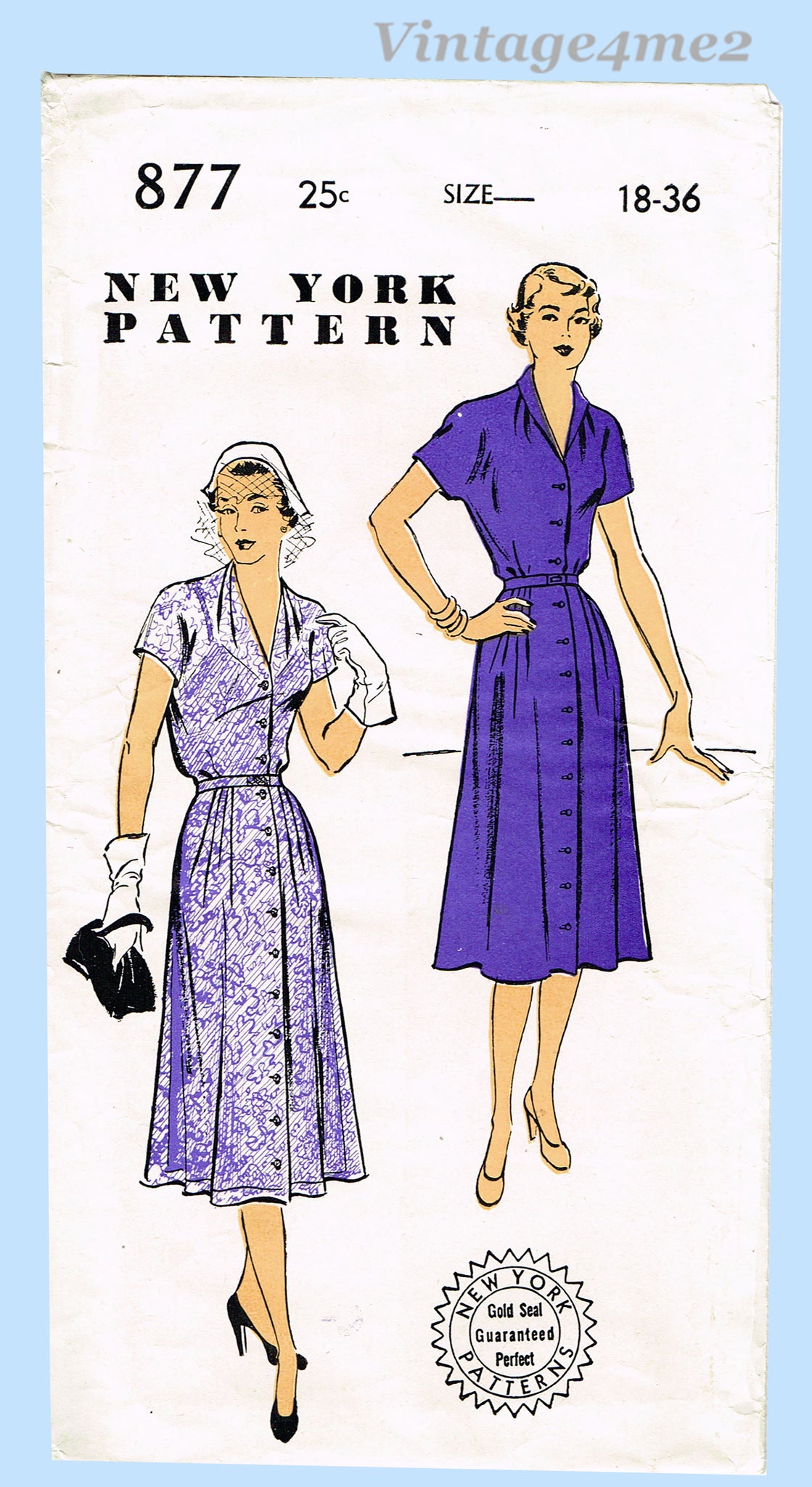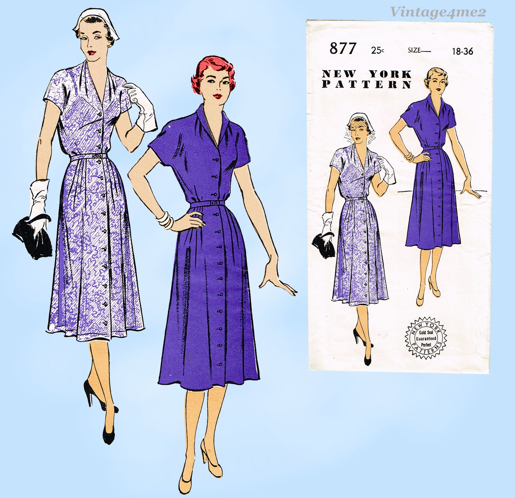 New York 877: 1950s Uncut Misses Street Dress Sz 36 B Vintage Sewing Pattern