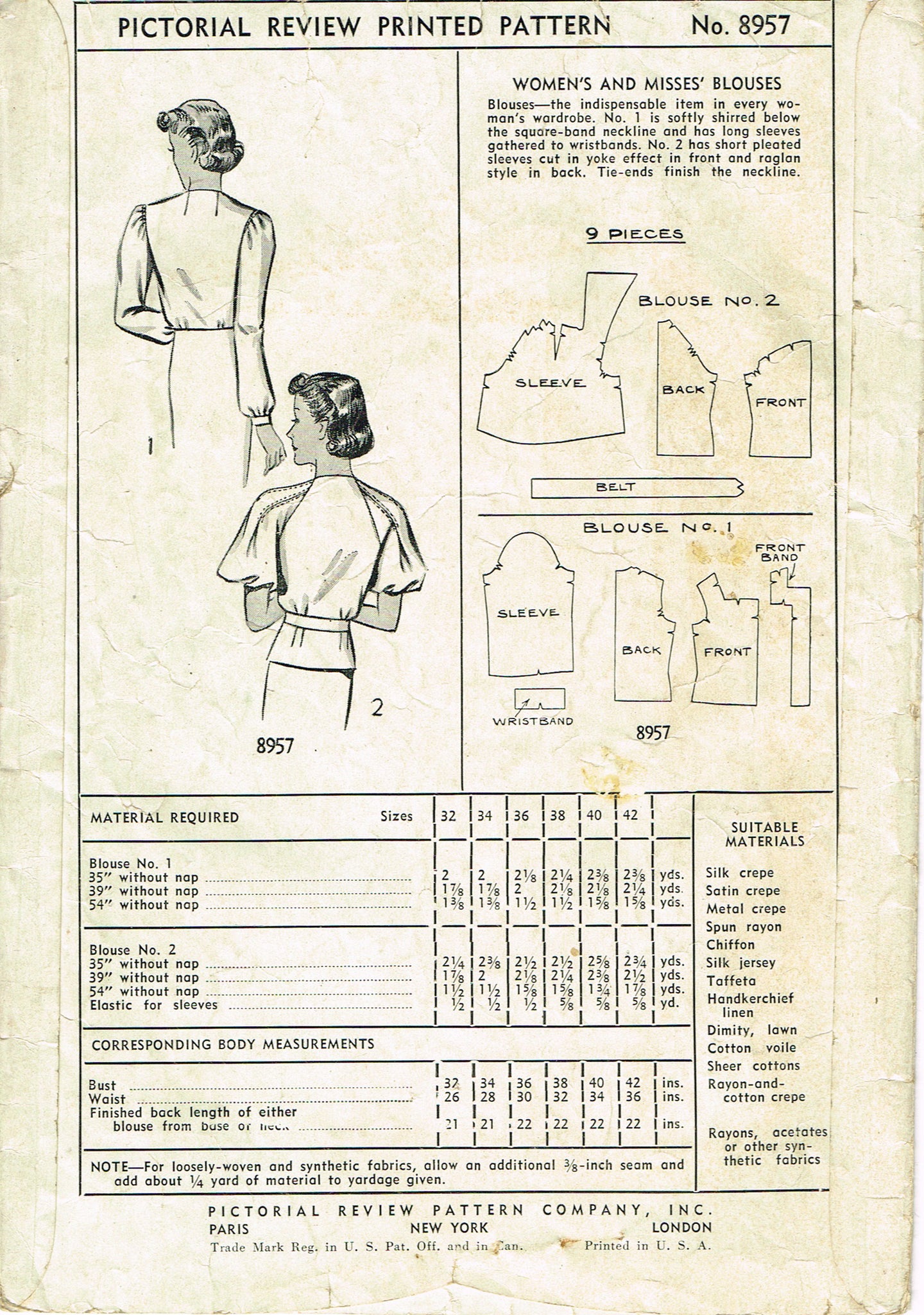 Pictorial Review Pattern 8957