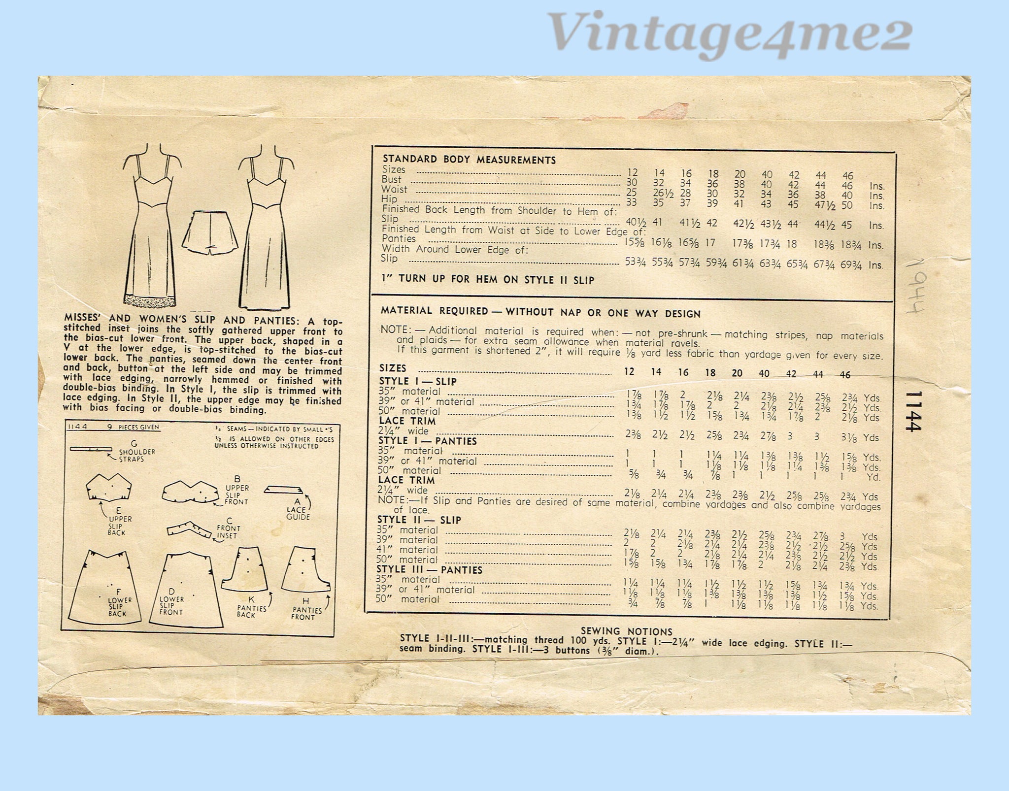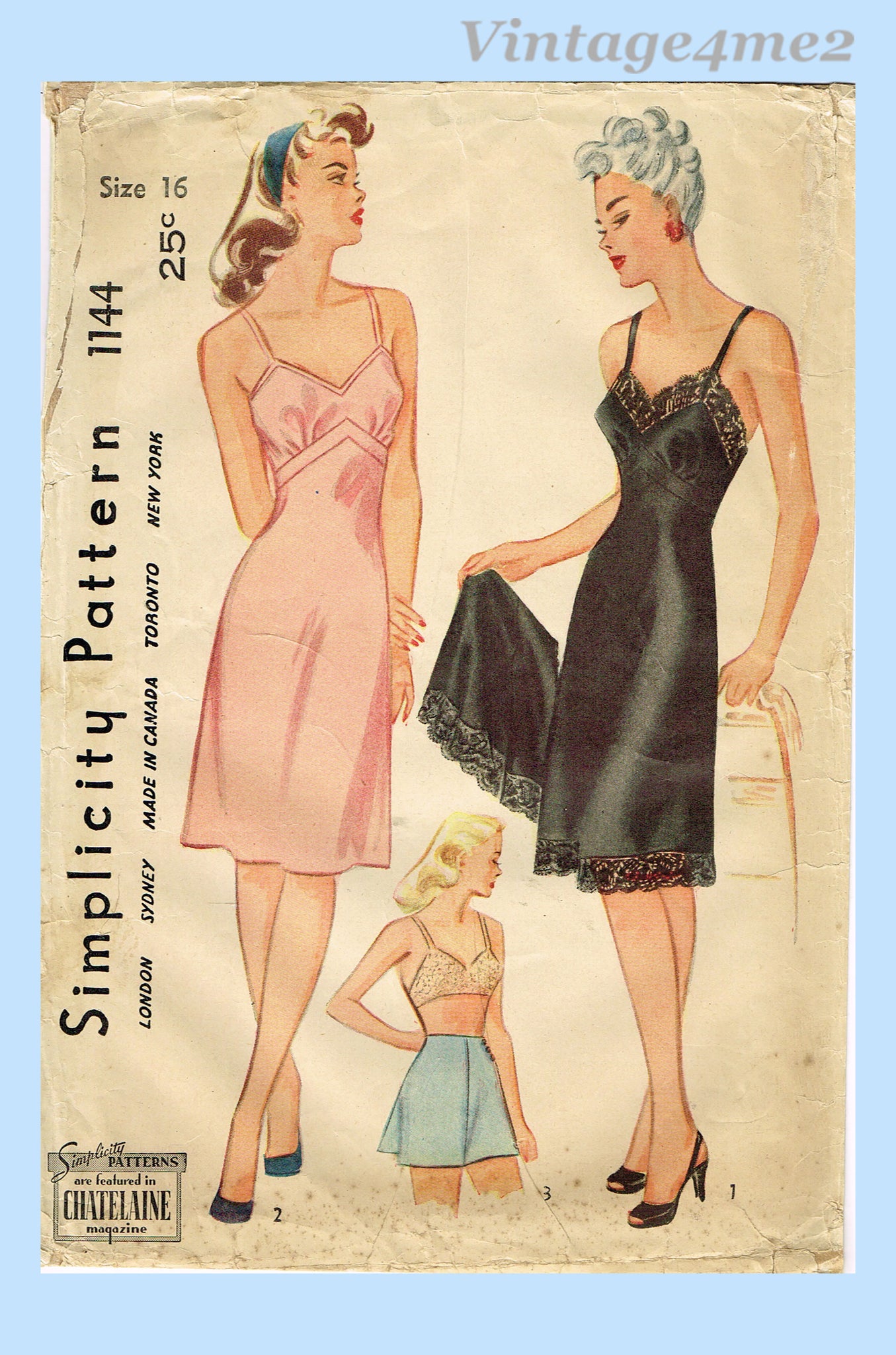 Simplicity 1144: 1940s Misses WWII Slip and Panties Sz 34 B Vintage Sewing Pattern
