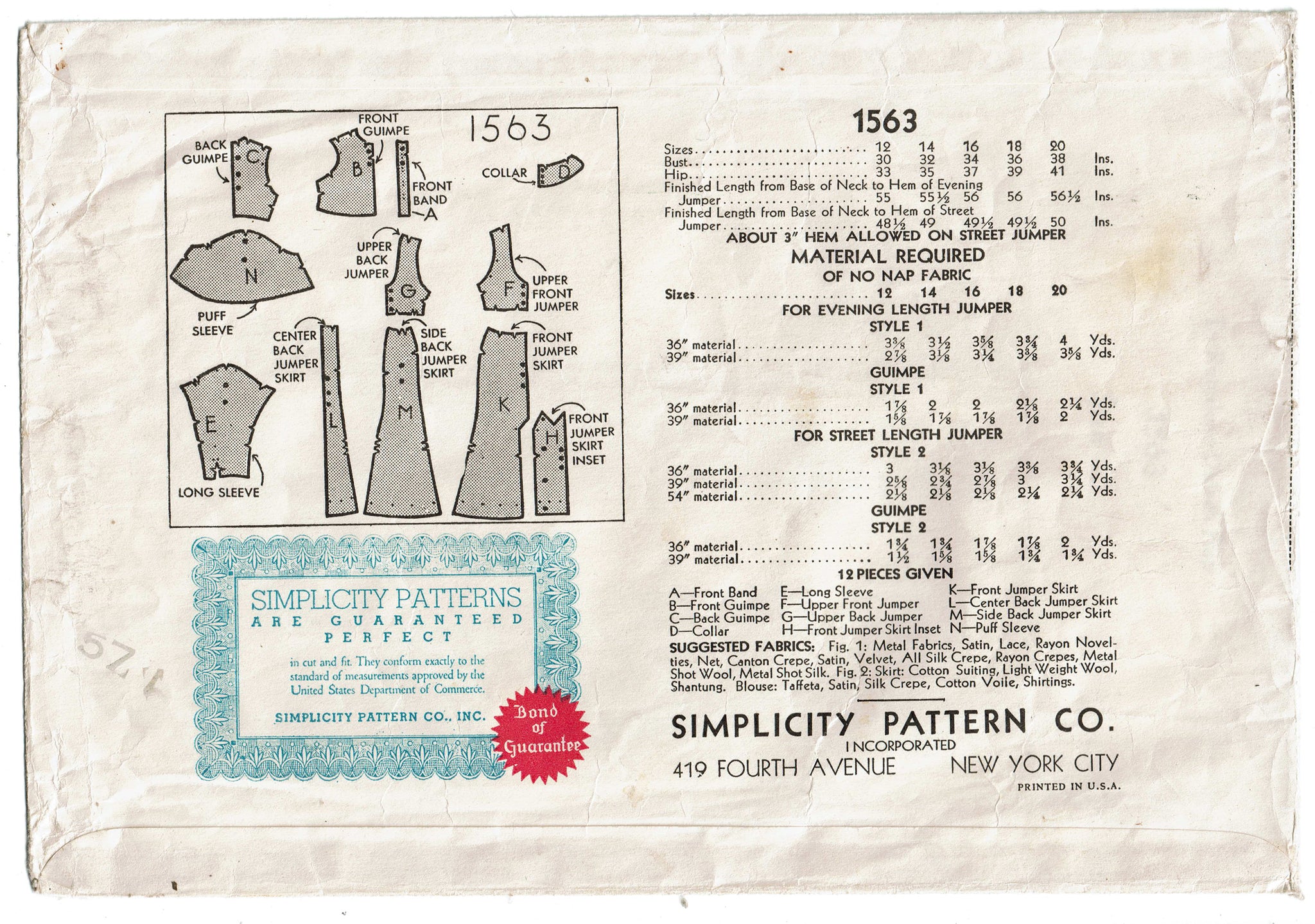 Simplicity 1563: 1930s Rare Evening Jumper & Blouse 34 B Vintage Sewing Pattern