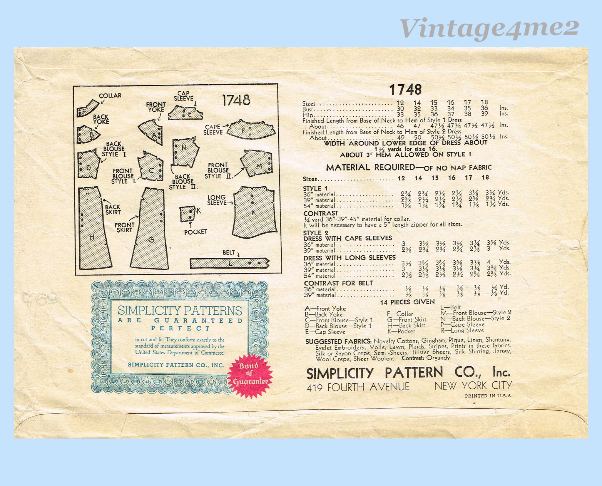Simplicity Pattern 1748