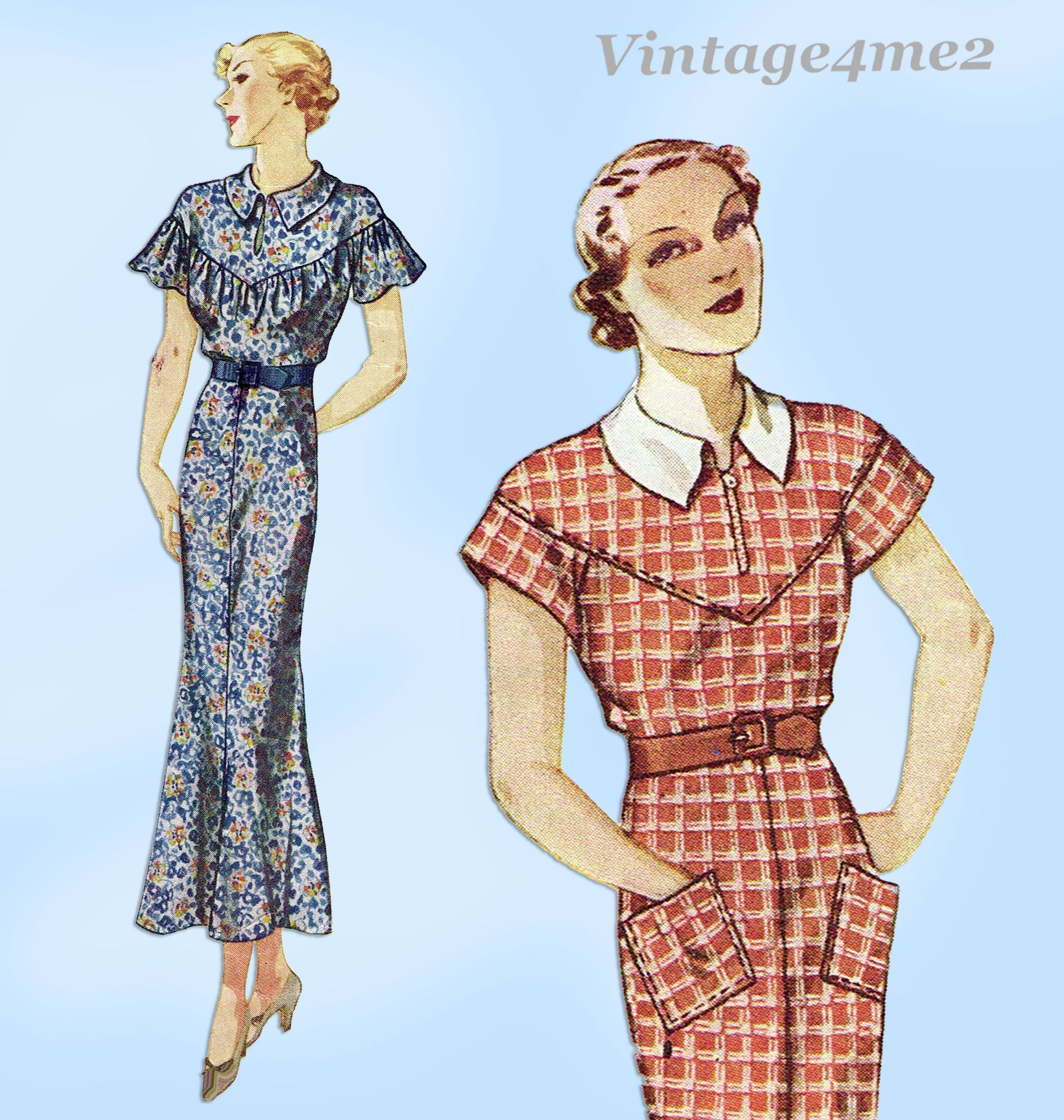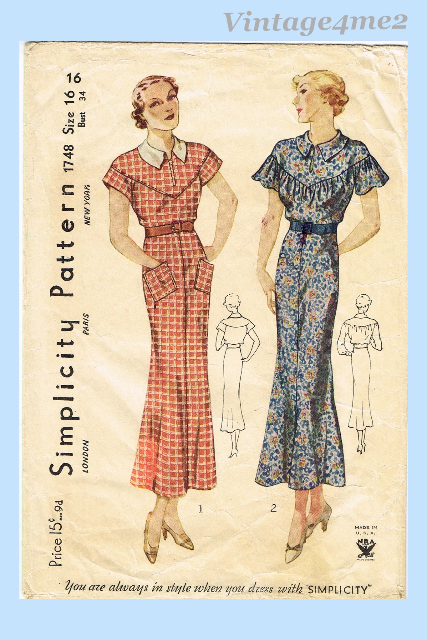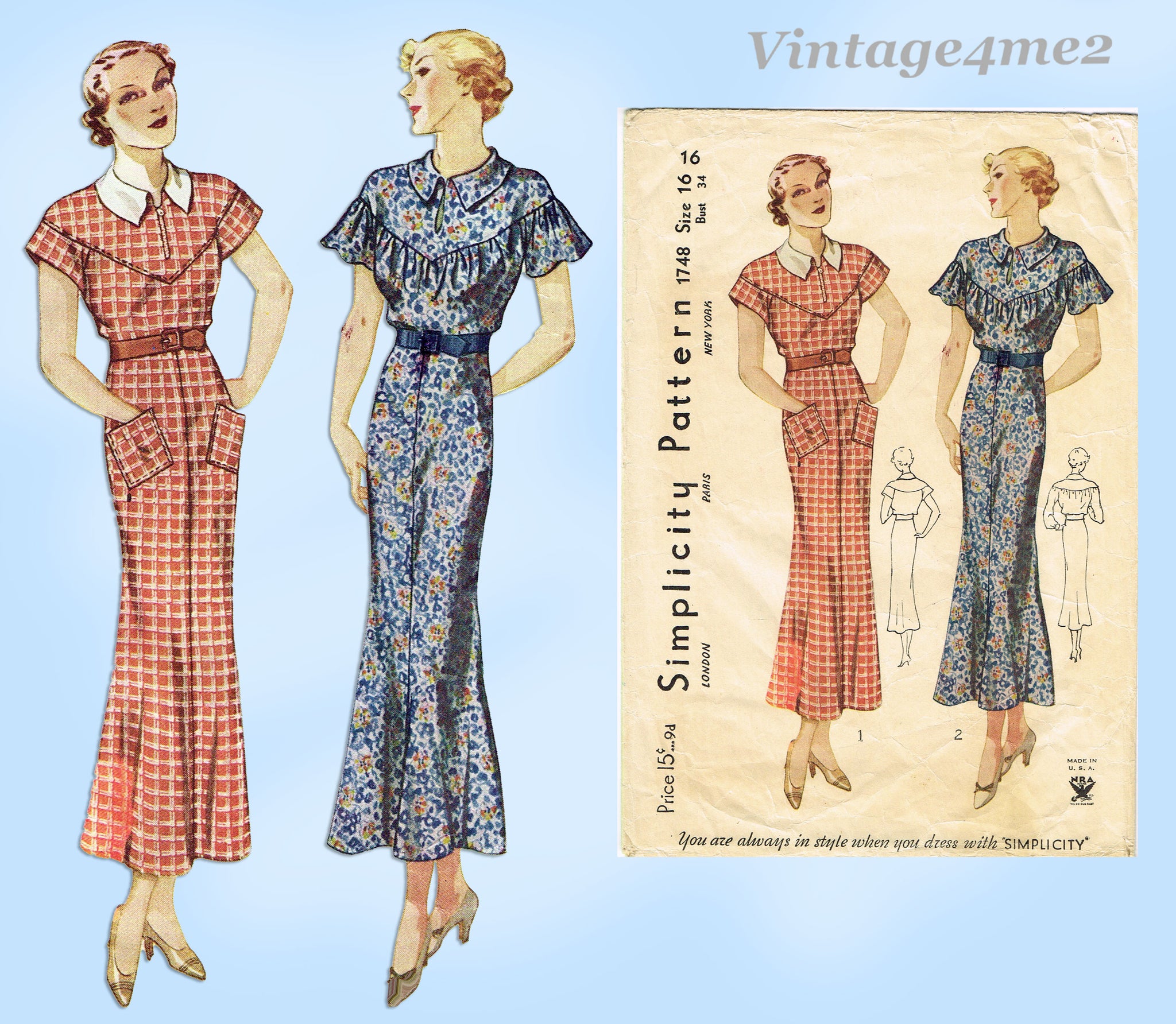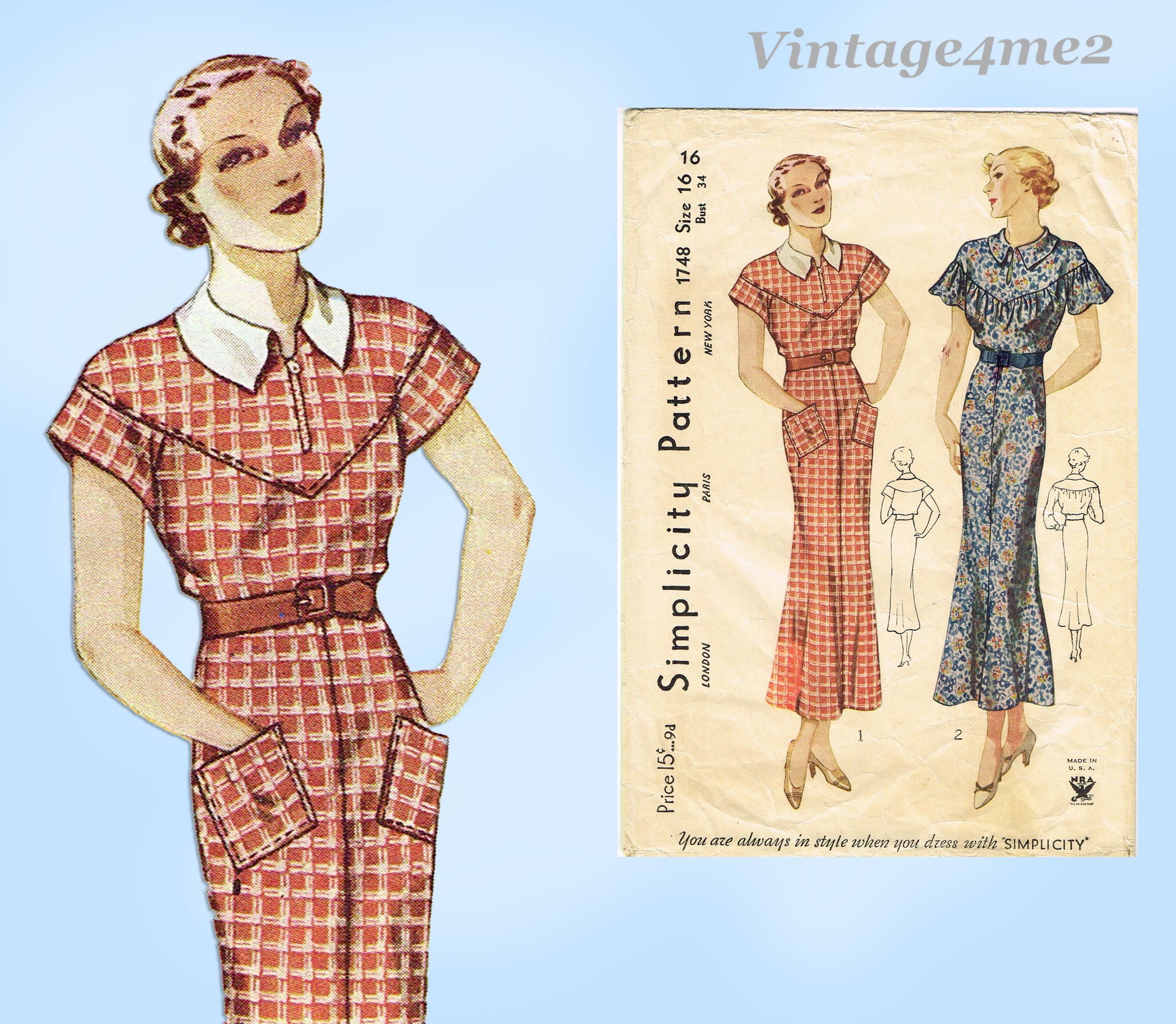 Simplicity 1748: 1930s Stunning Misses Street Dress Sz 34 B Vintage Sewing Pattern