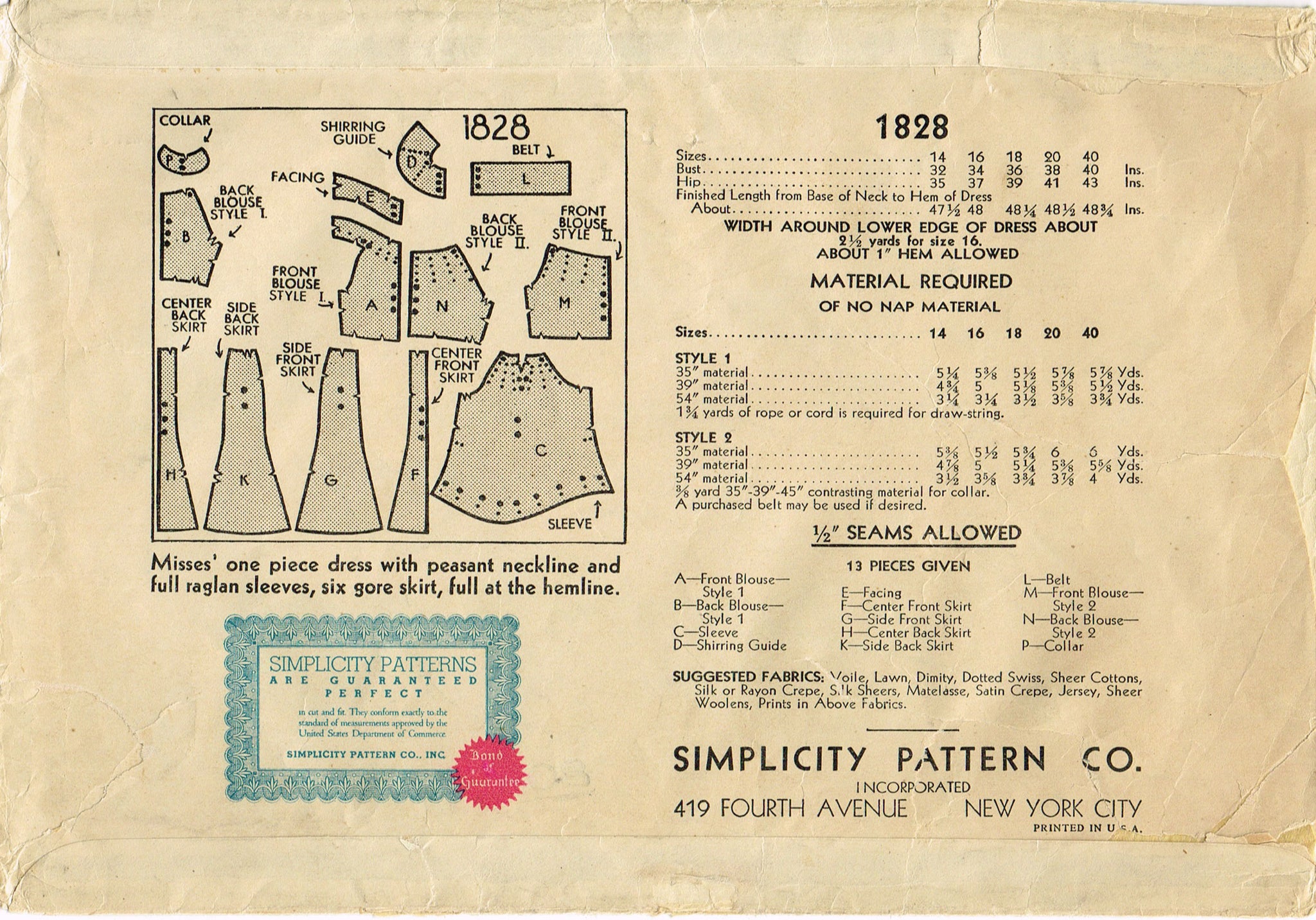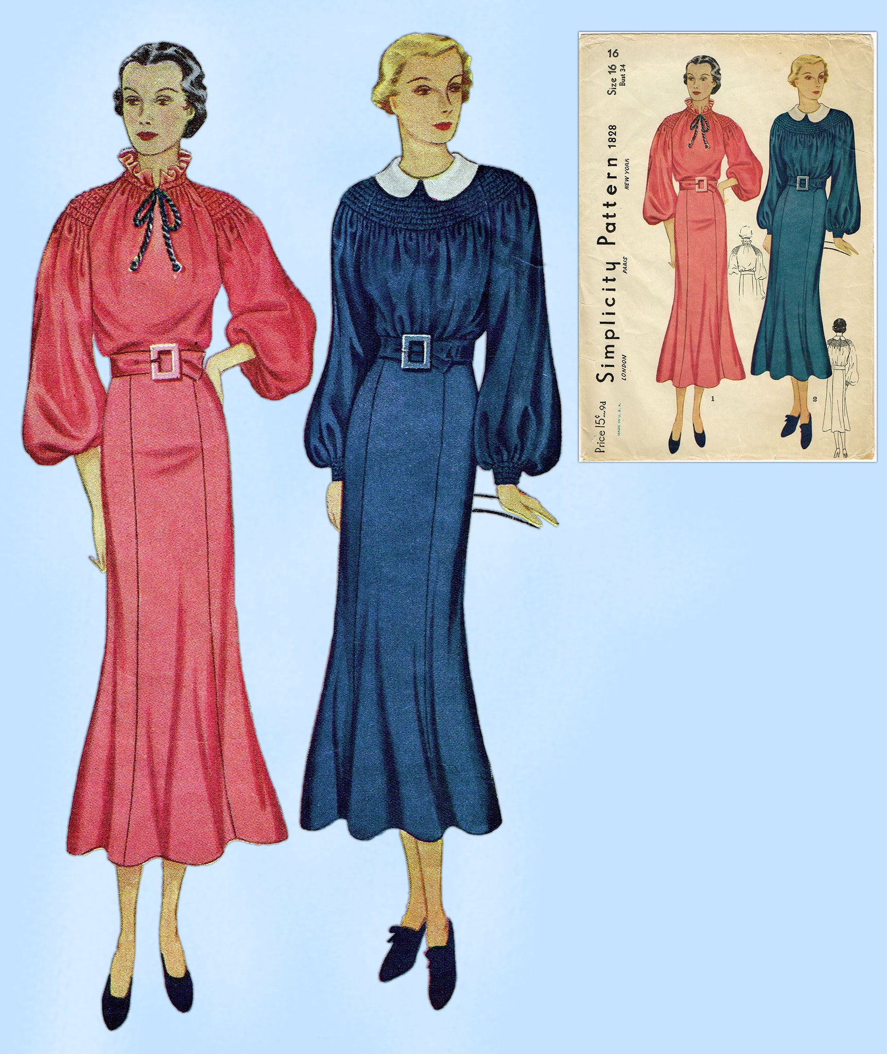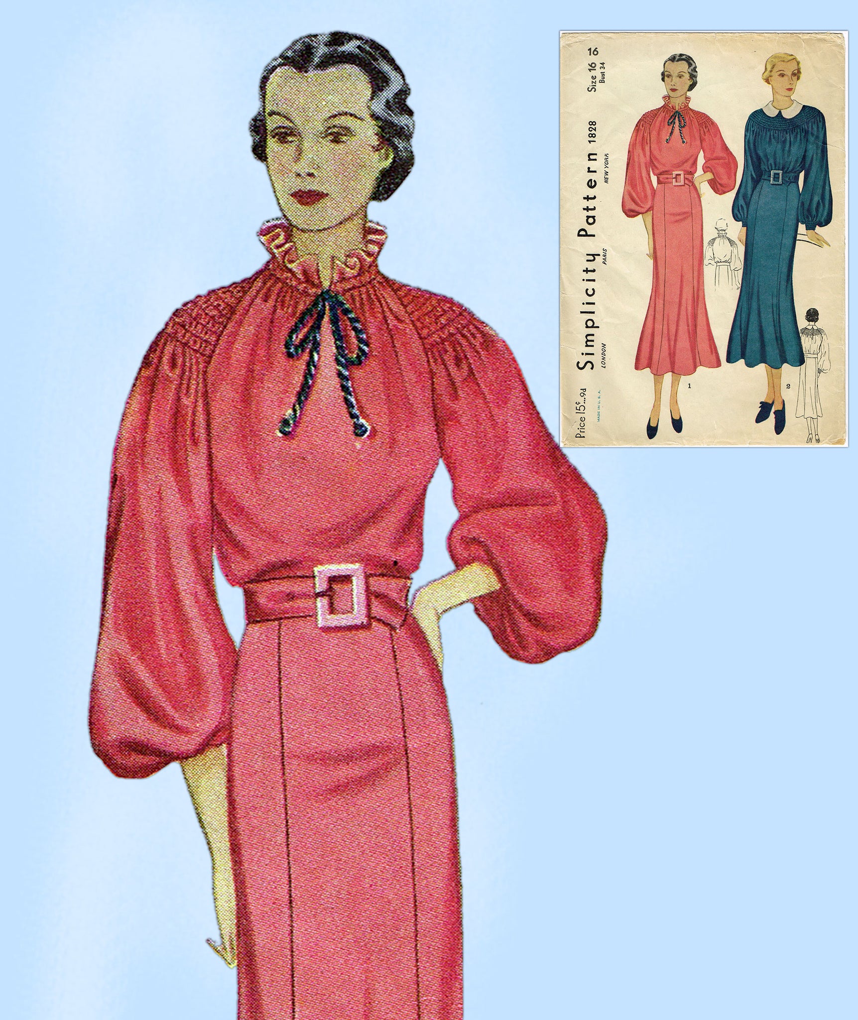 Simplicity 1828: 1930s Stunning Misses Shirred Dress 34 B Vintage Sewing Pattern