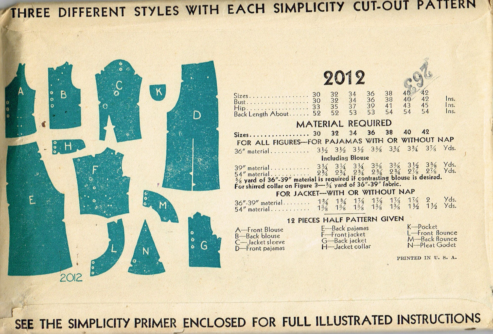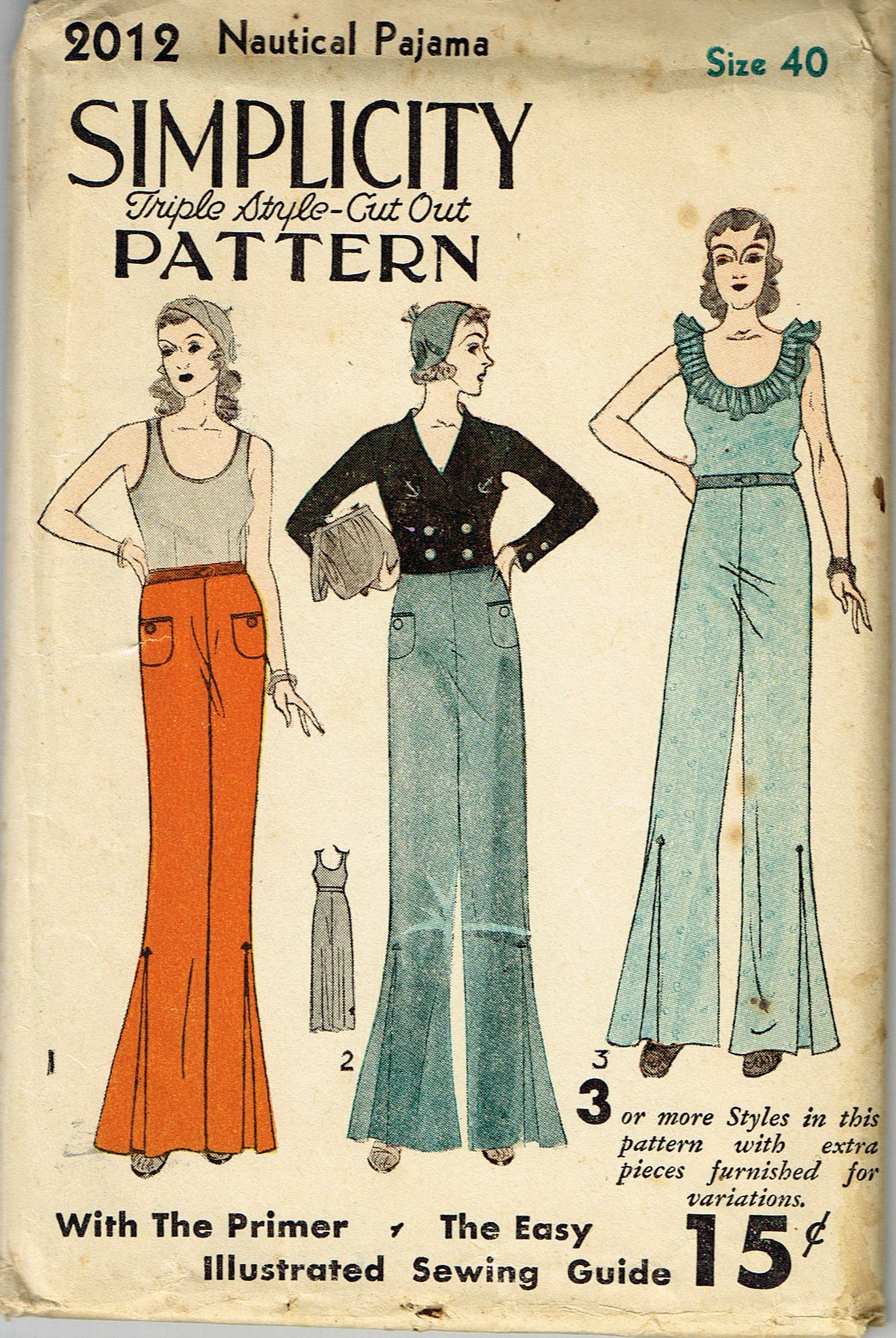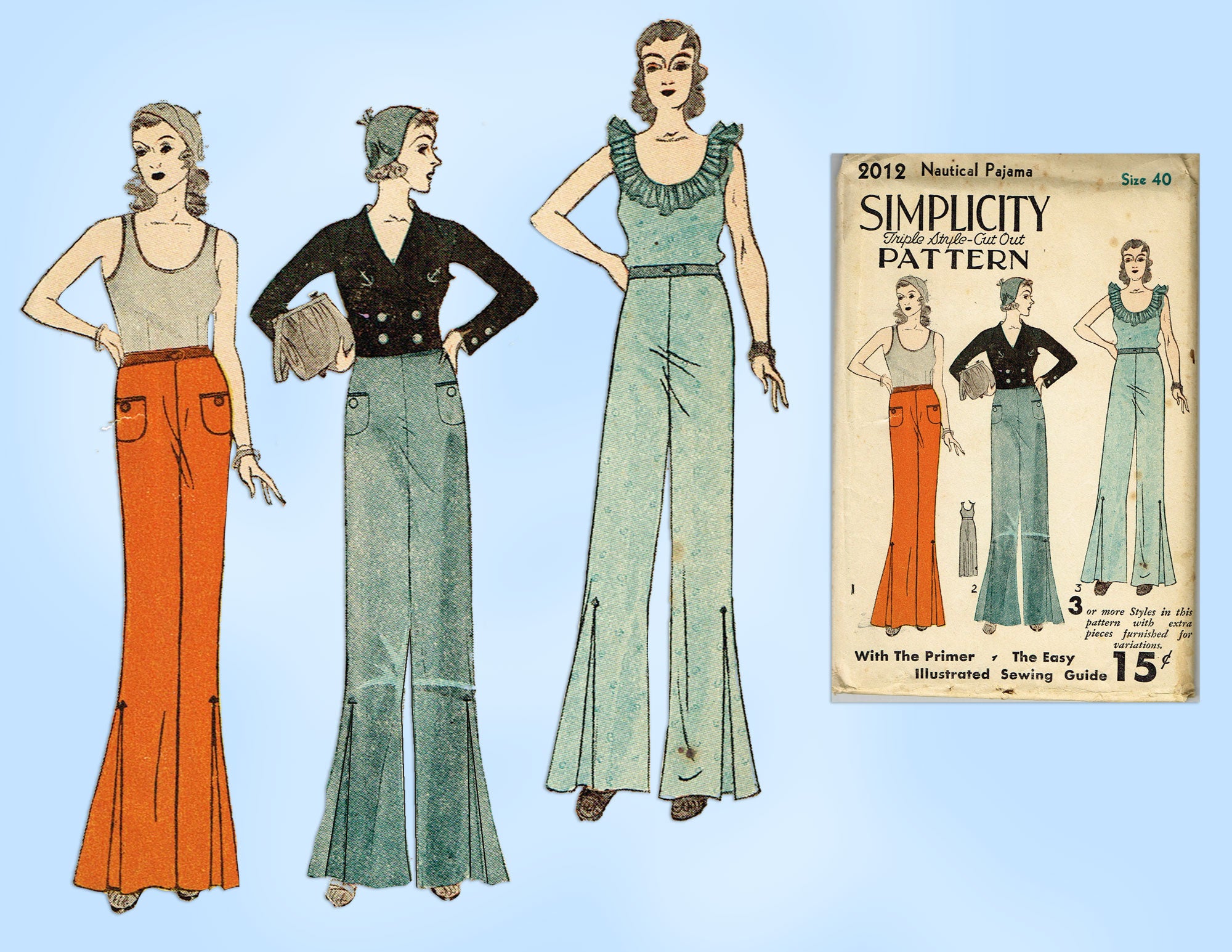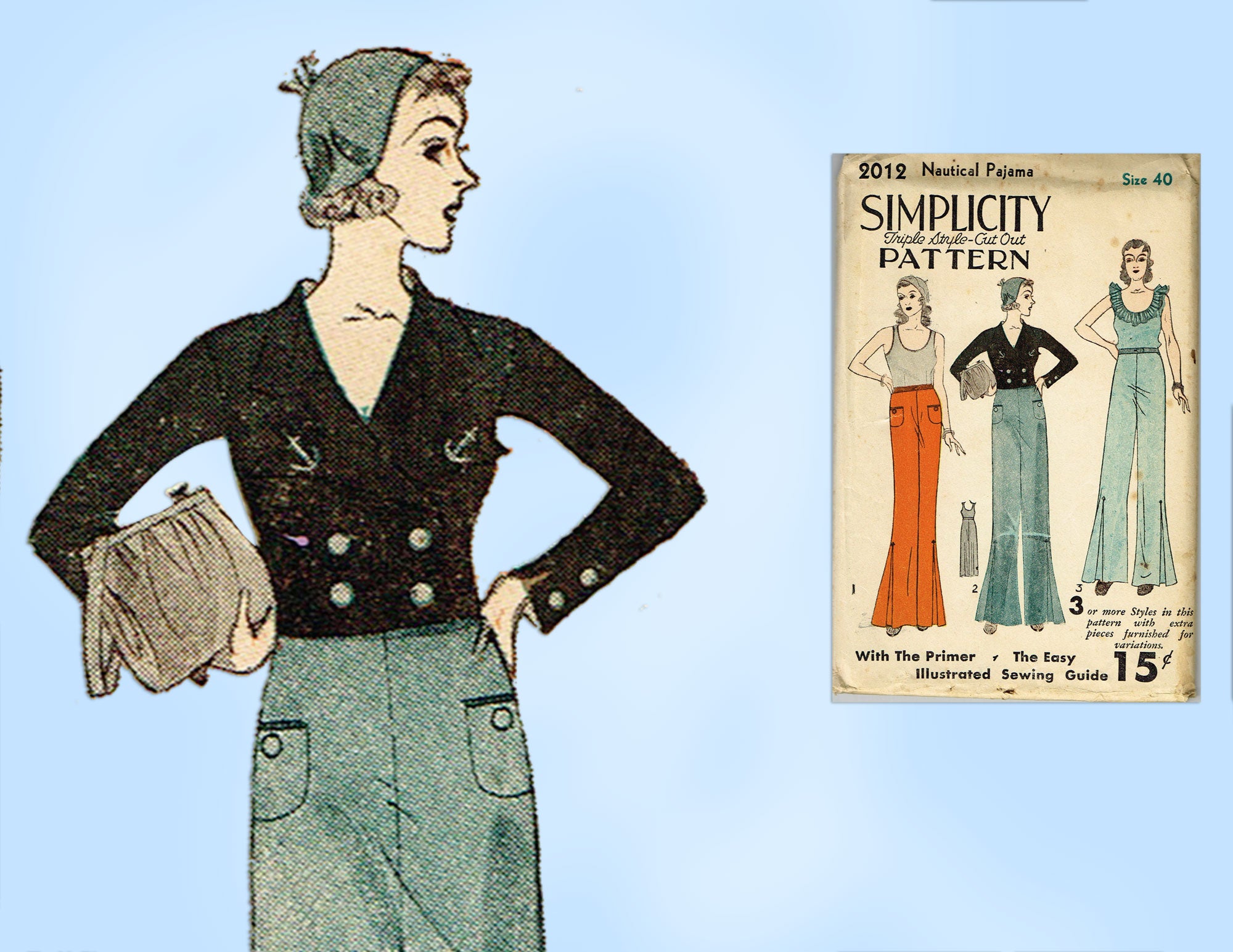 Simplicity 2012: Rare Uncut 1930s Nautical Beach Pyjamas Sz 40B Vintage Sewing Pattern