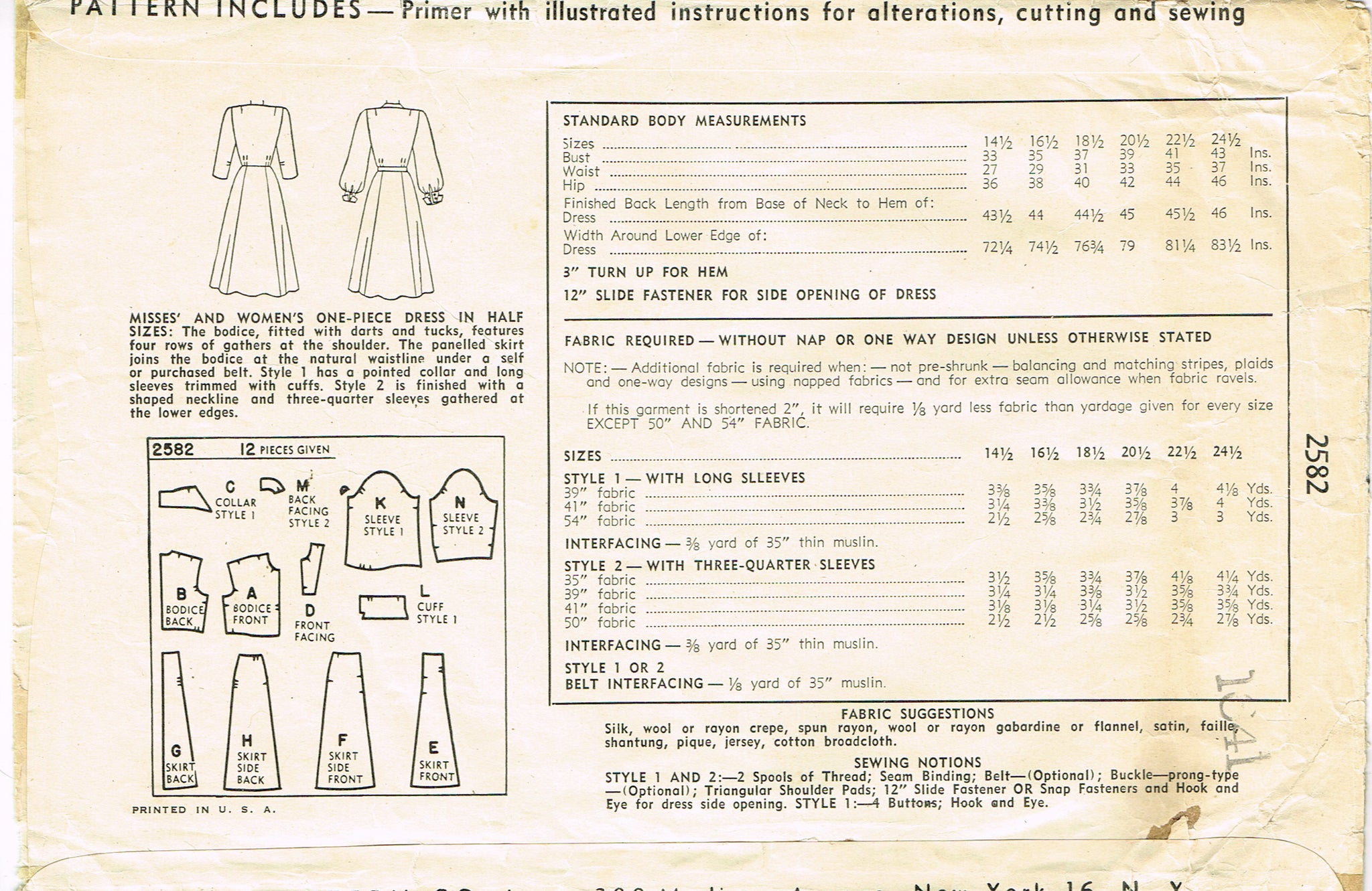 Simplicity 2582: 1940s Stunning Misses Soft Day Dress 39B Vintage Sewing Pattern