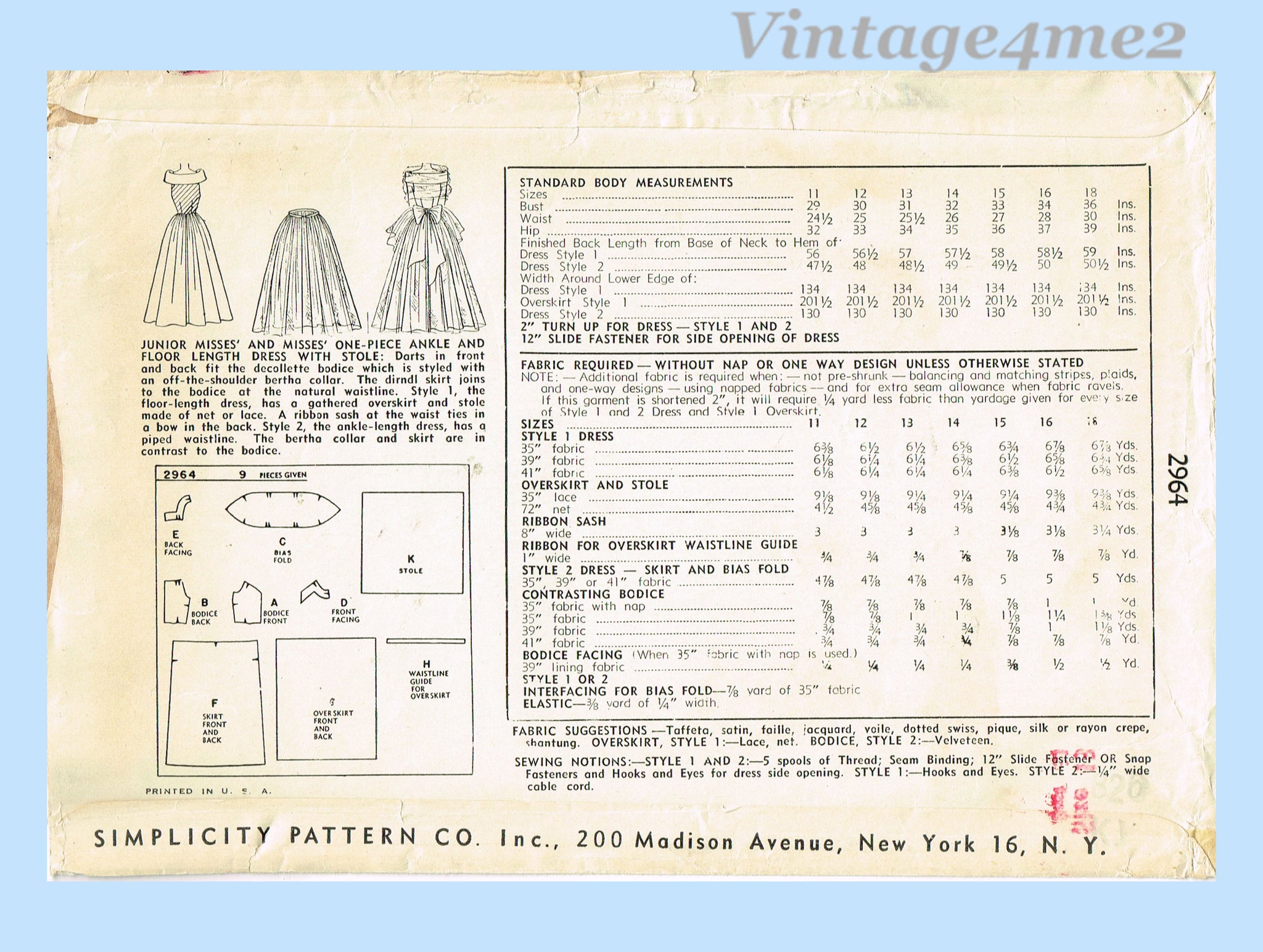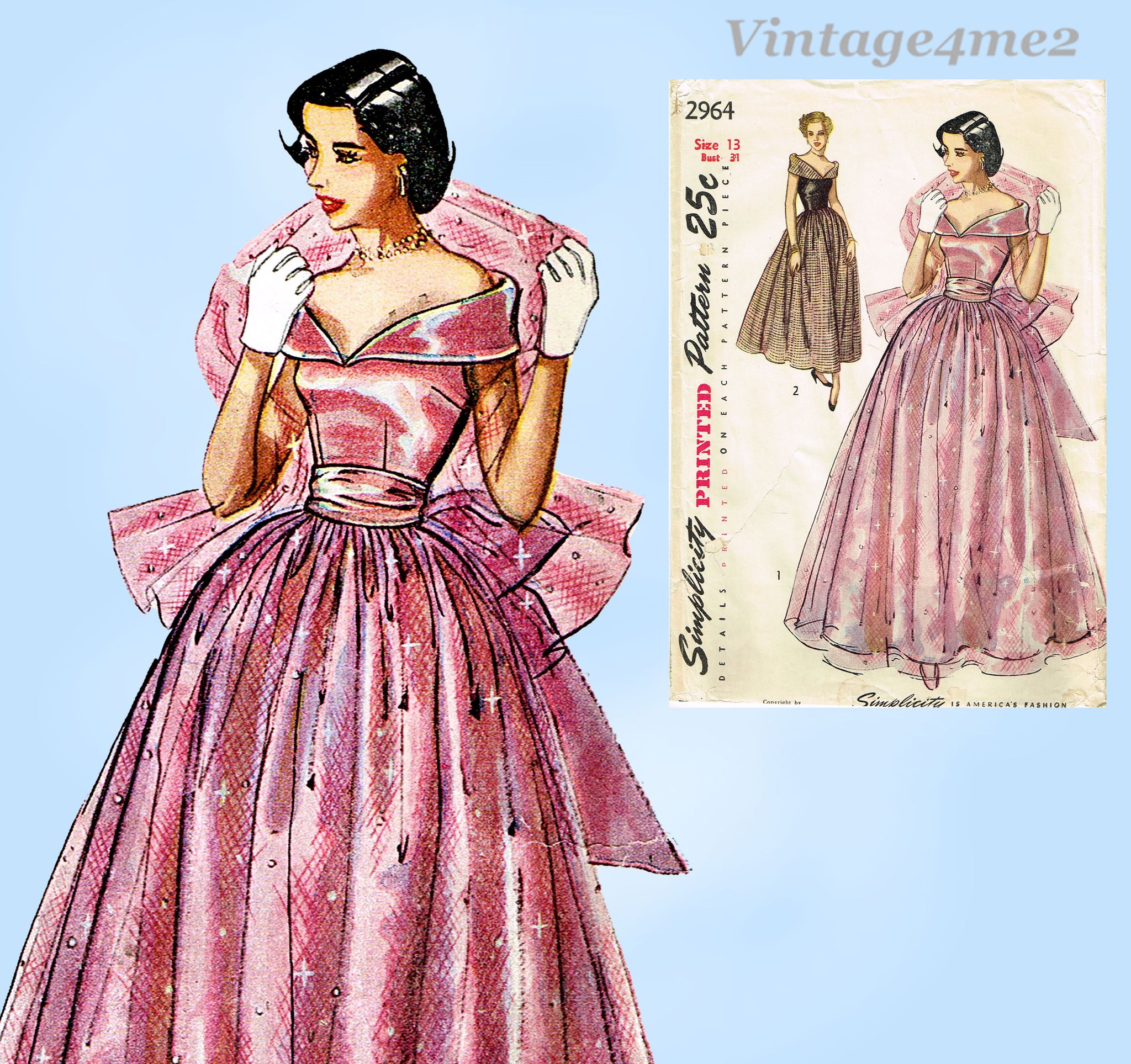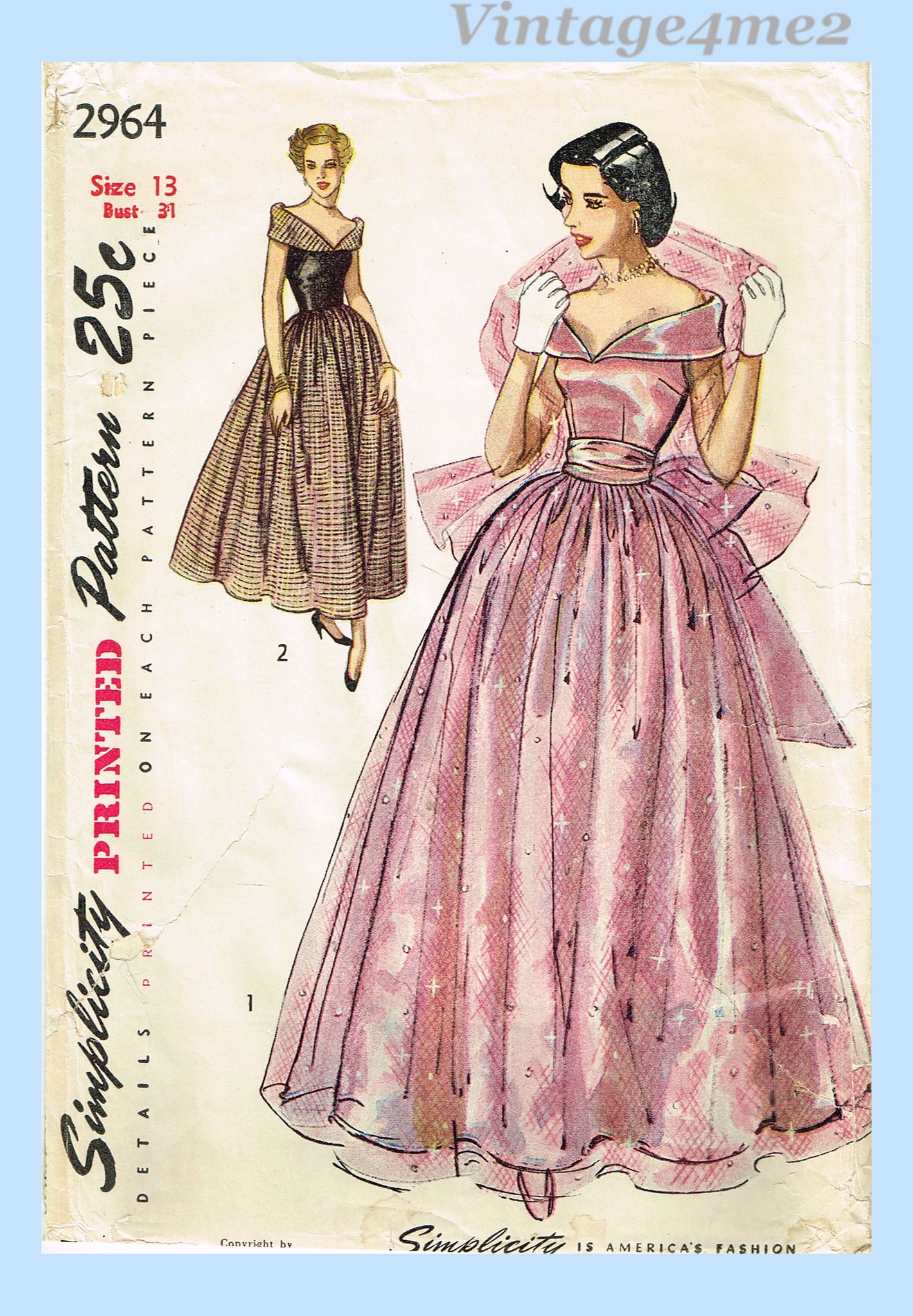 Simplicity 2964: 1940s Uncut Misses Evening Gown Sz 31 B Vintage Sewing Pattern