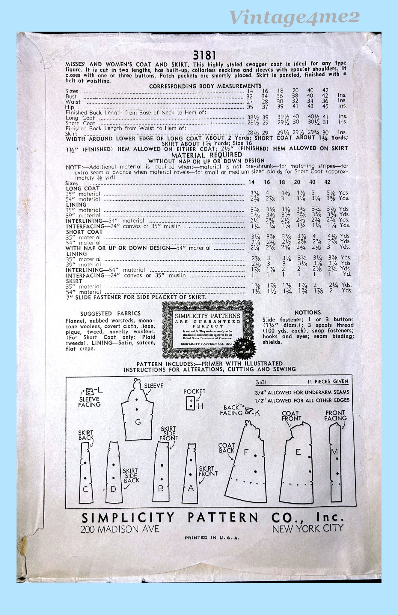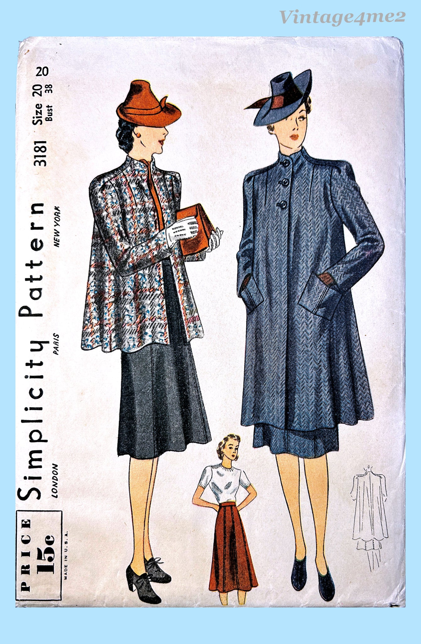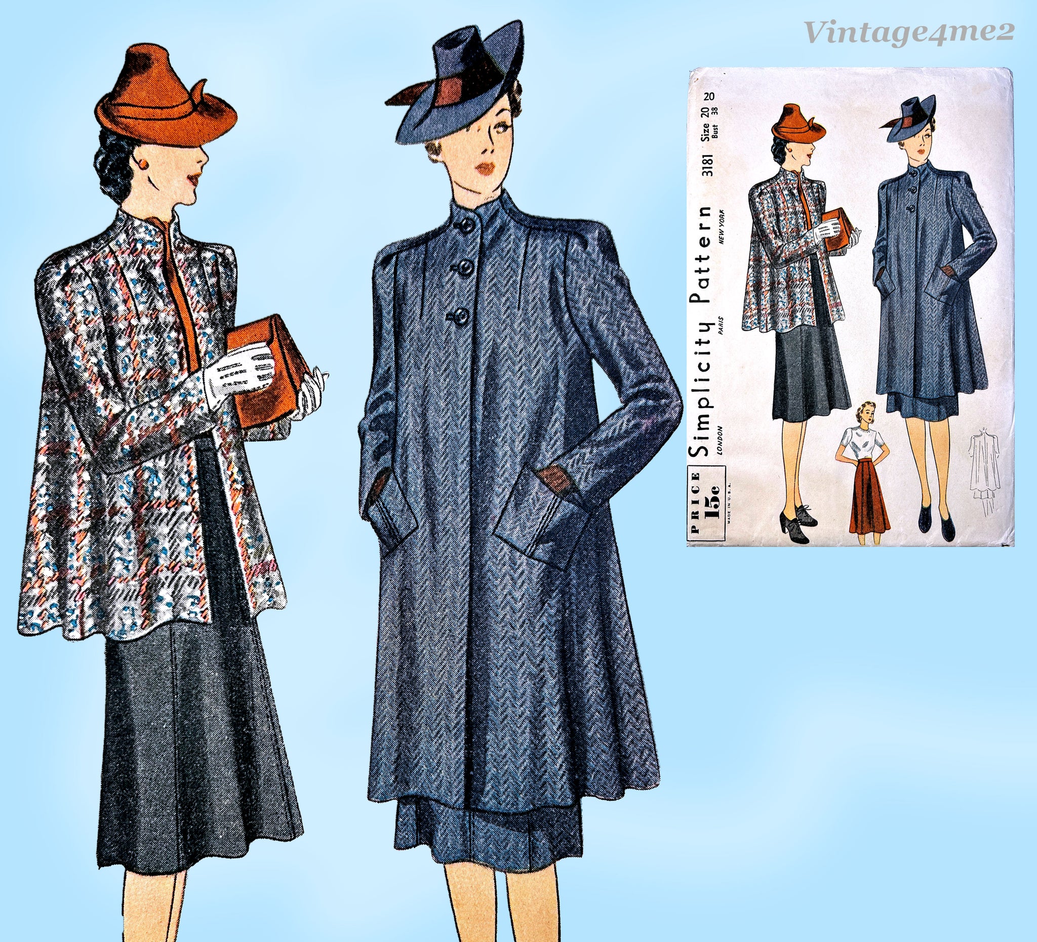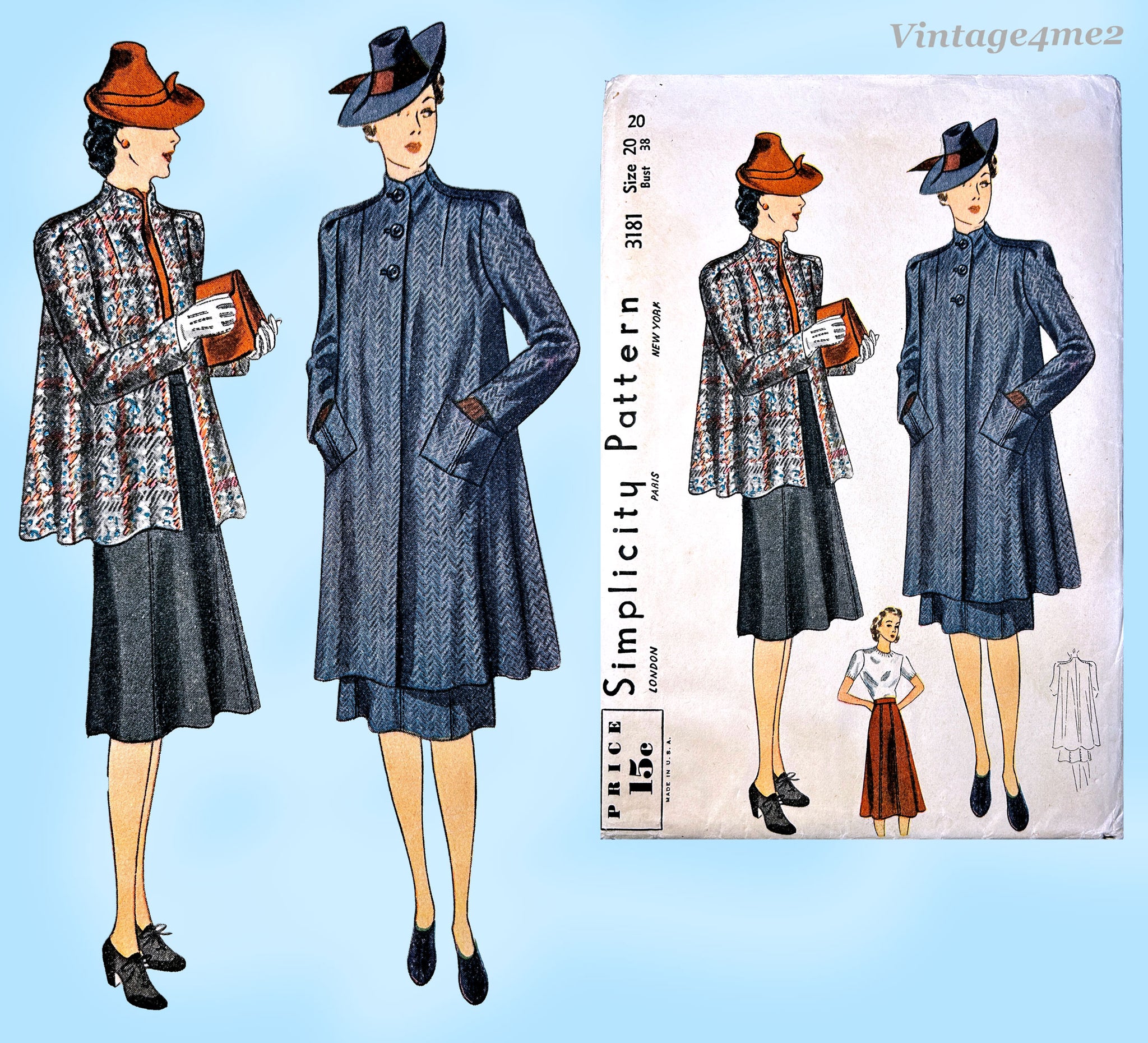 Simplicity 3181: 1930s Uncut Misses Swagger Suit Sz 38 B Vintage Sewing Pattern