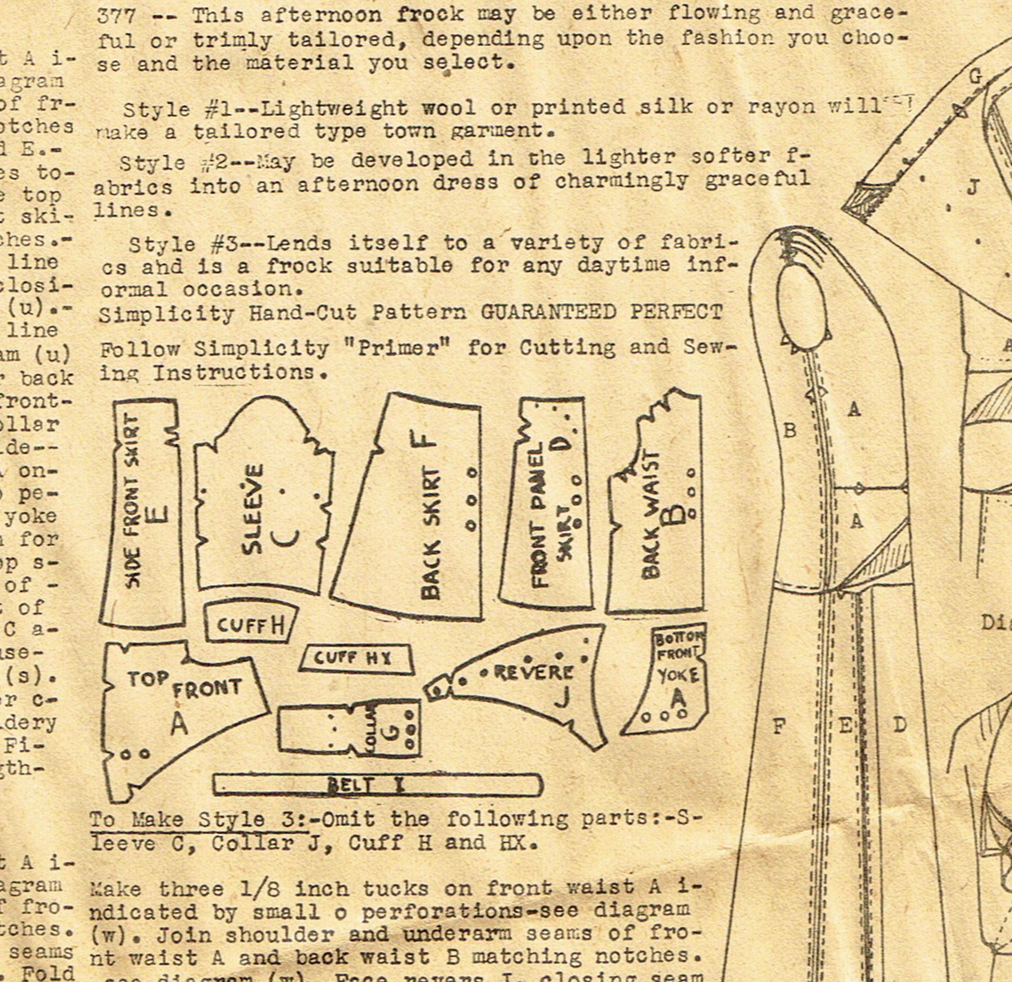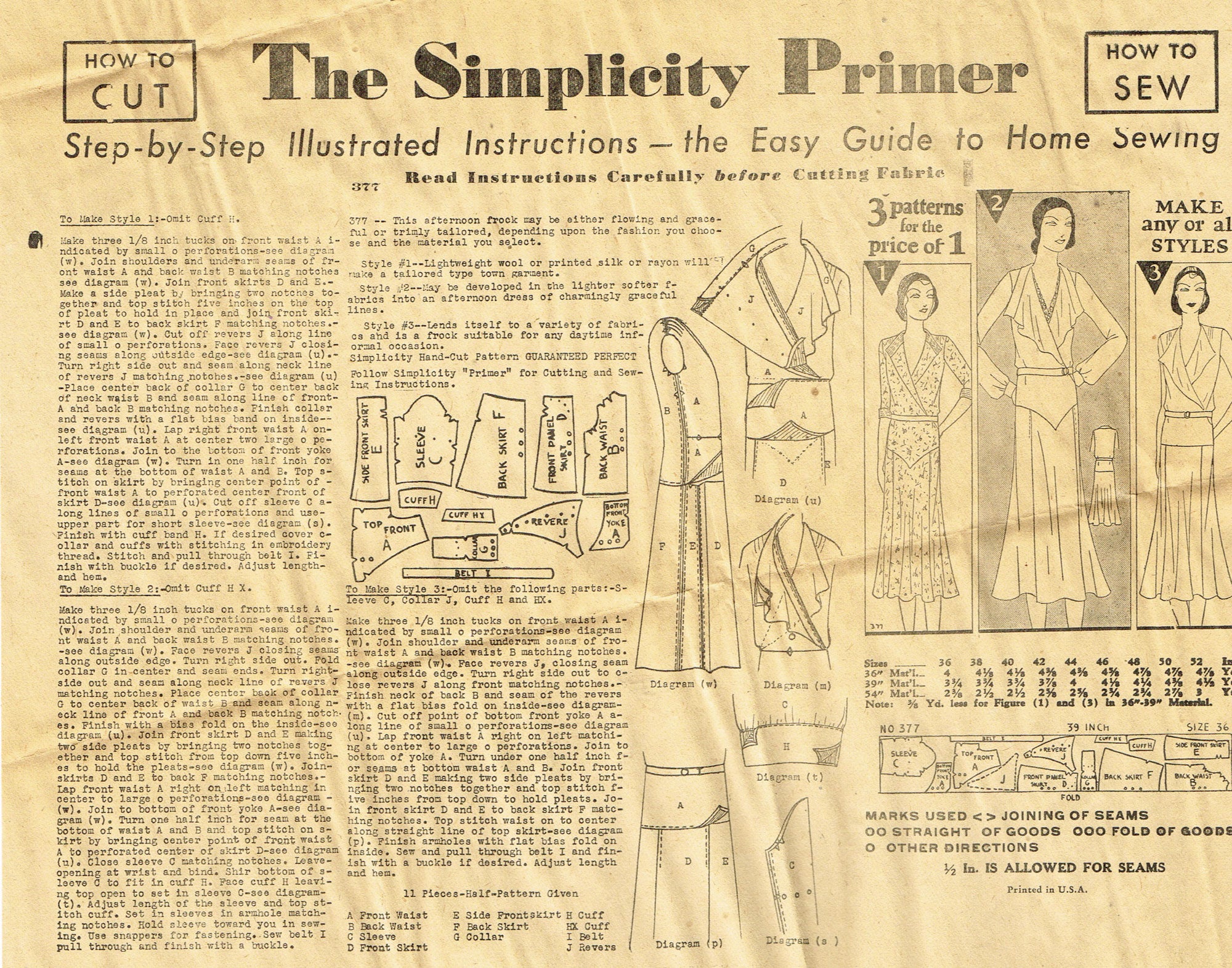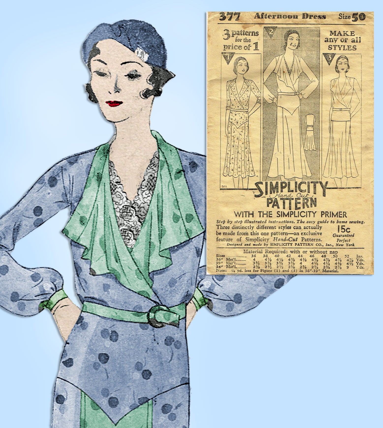 Simplicity 377: 1930s Plus Size Afternoon Dress 50 Bust Vintage Sewing Pattern