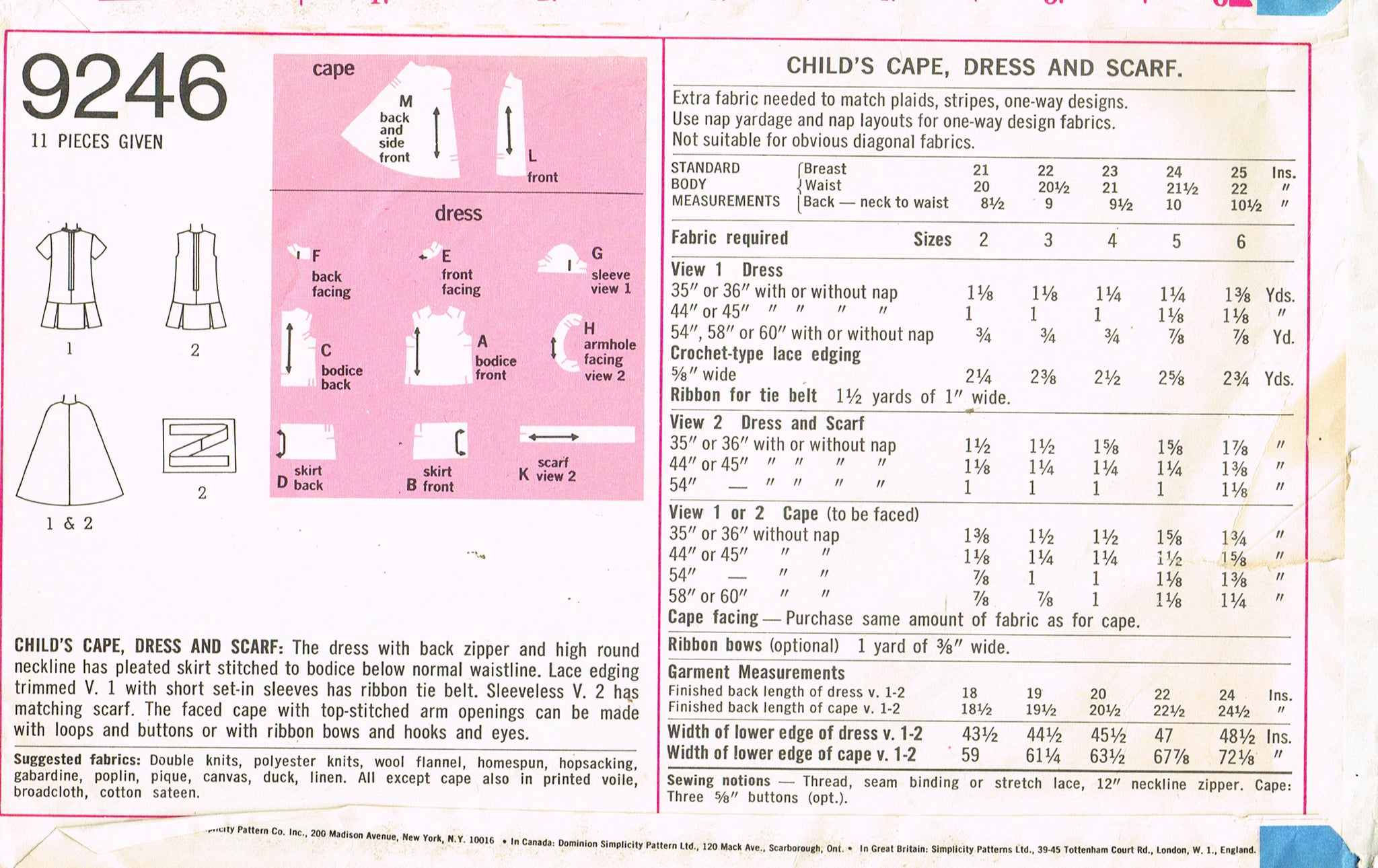 Simplicity 9246: 1960s Sweet Toddler Girls Dress Size 5 Vintage Sewing Pattern
