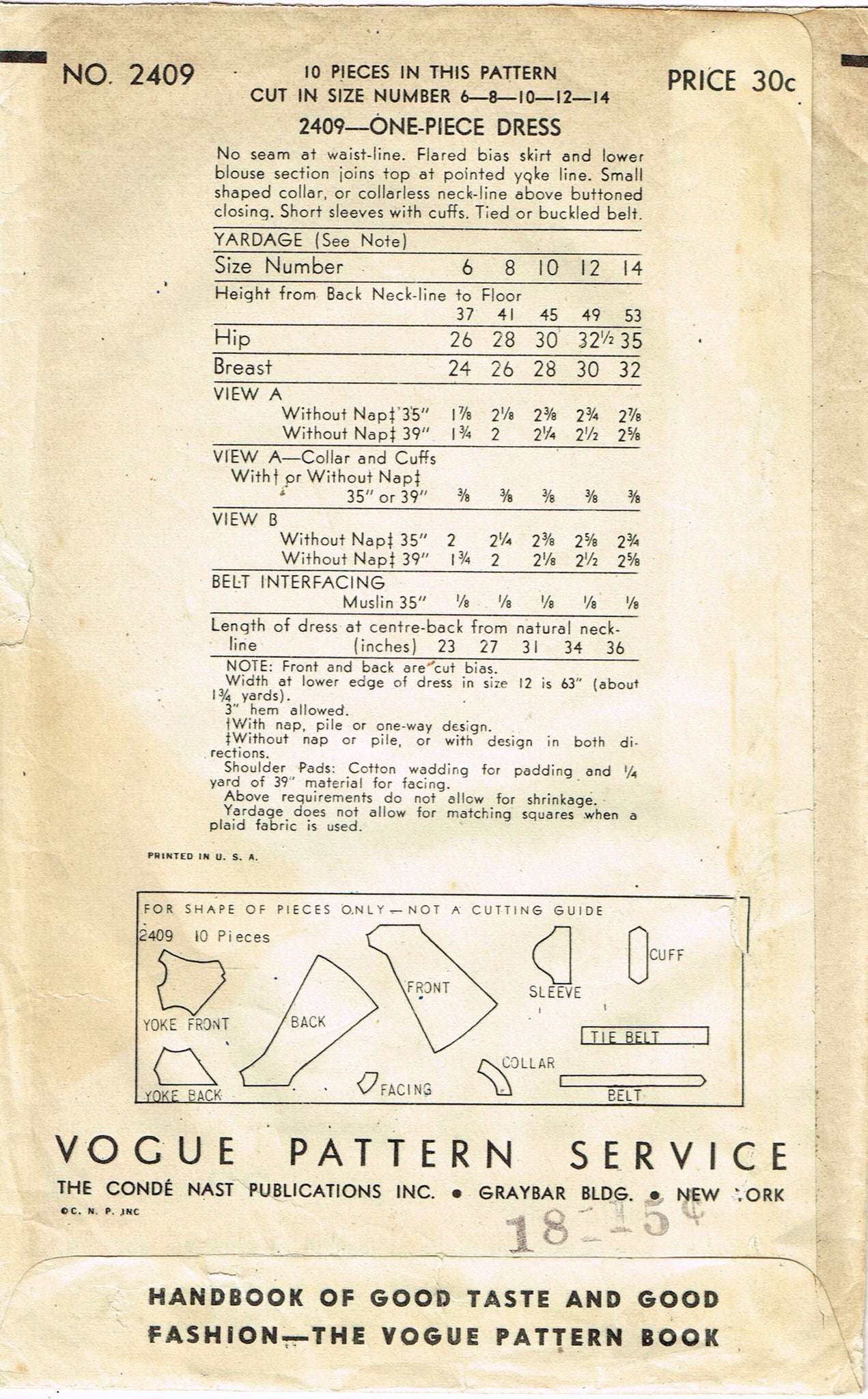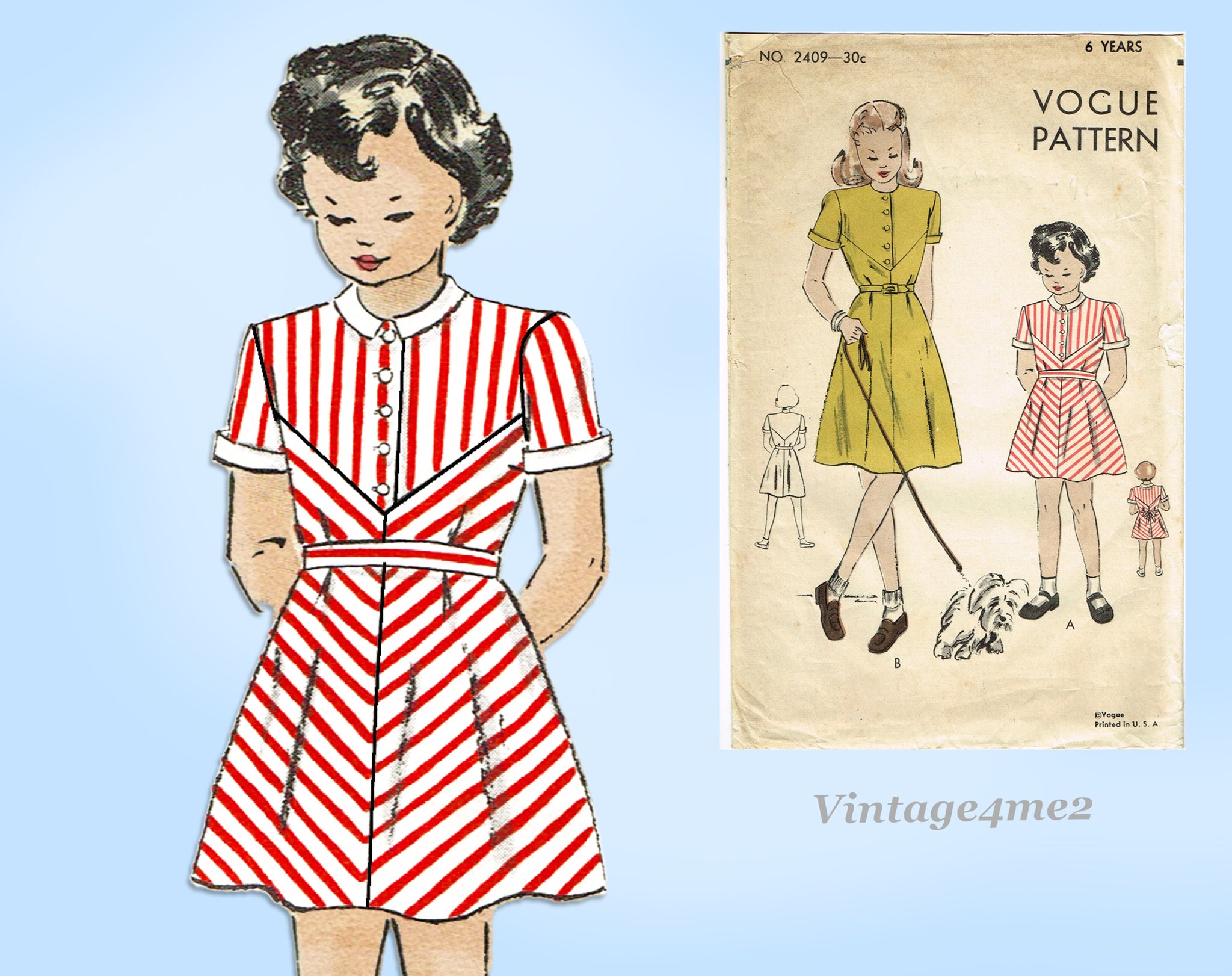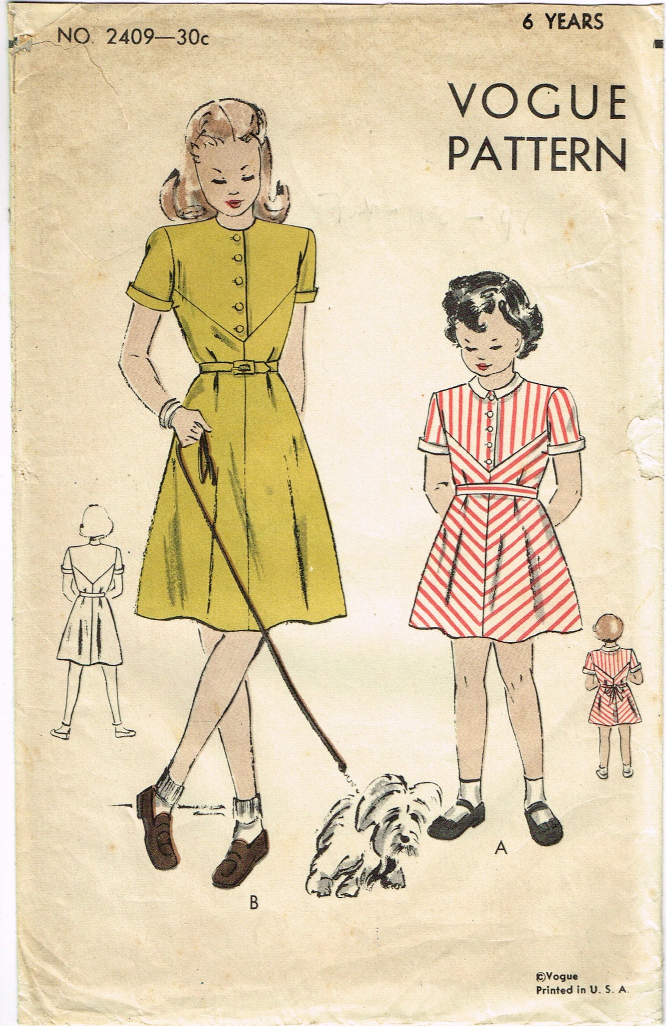 Vogue 2409: 1940s Sweet Post WWII Toddler Girls Dress Sz6 Vintage Sewing Pattern