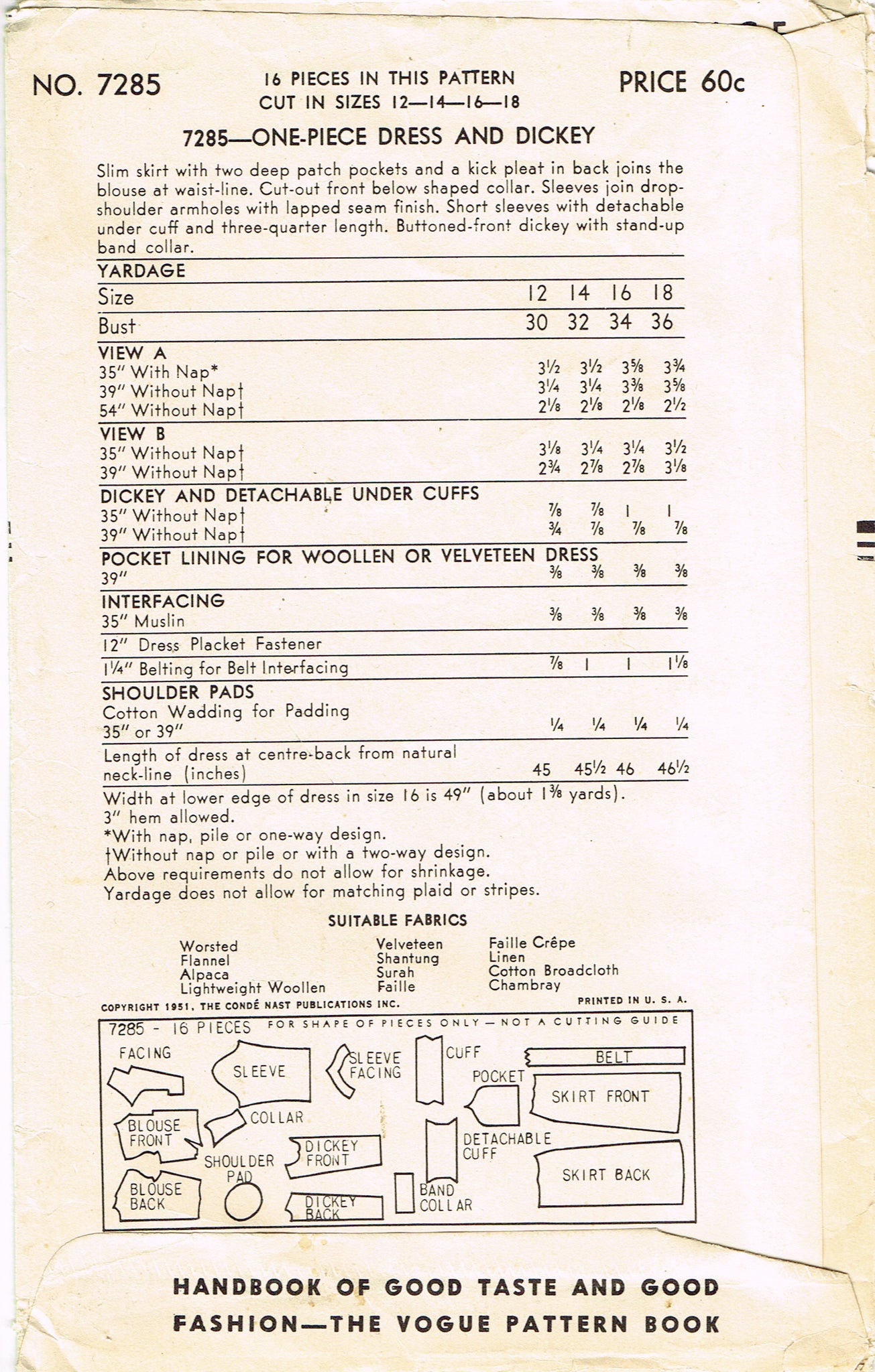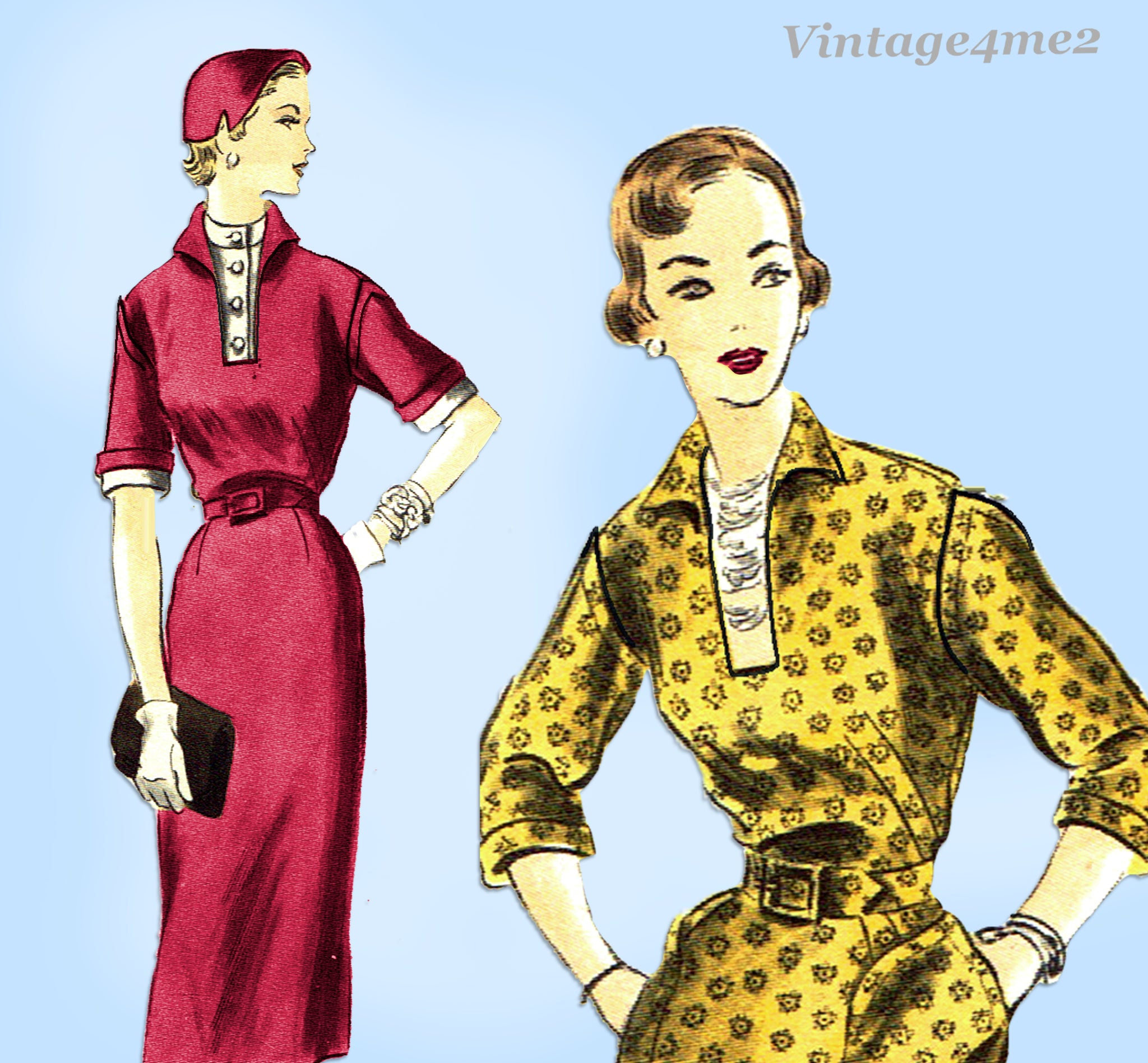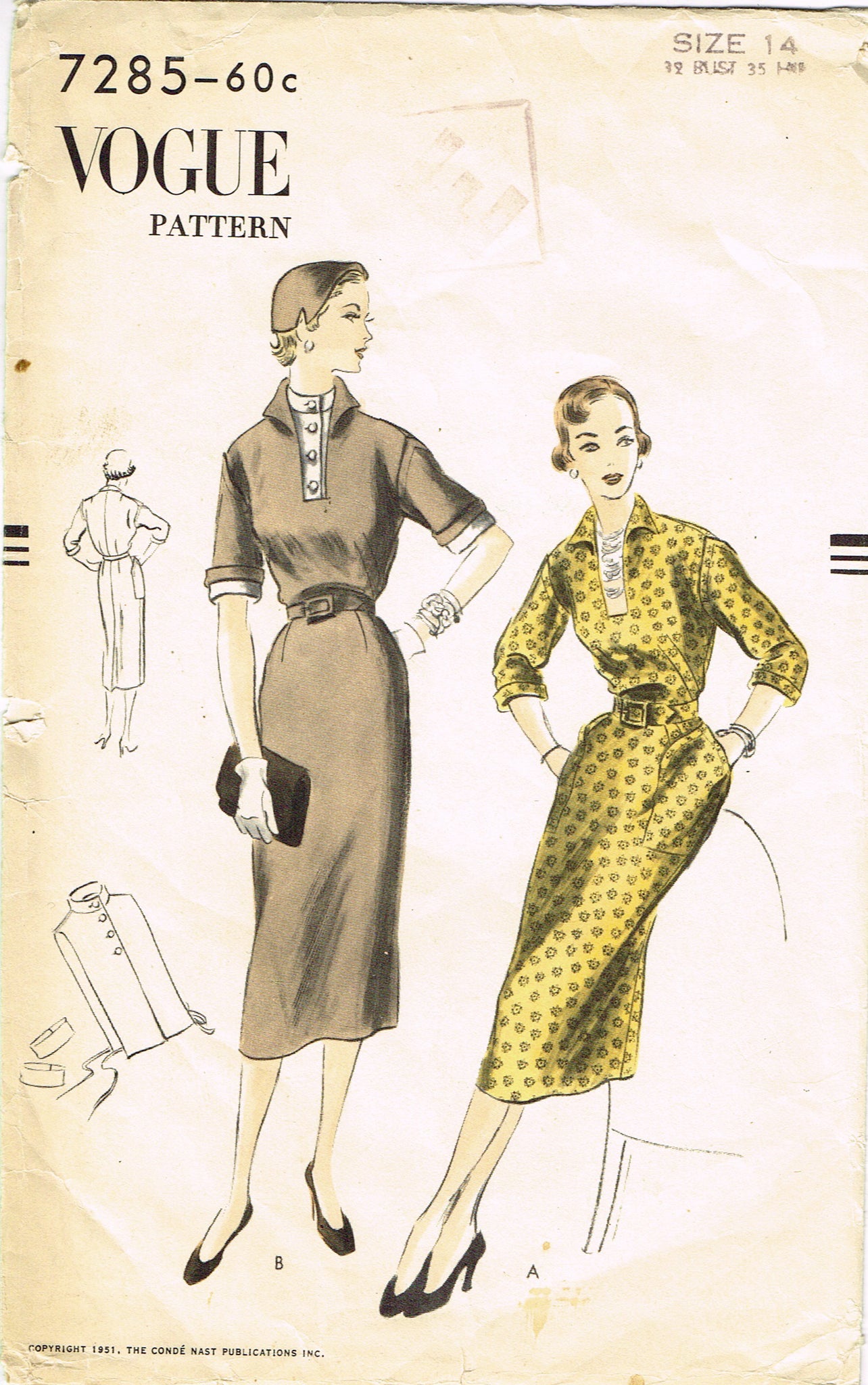 Vogue 7285: 1950s Stylish Misses Street Dress Size 32 B Vintage Sewing Pattern
