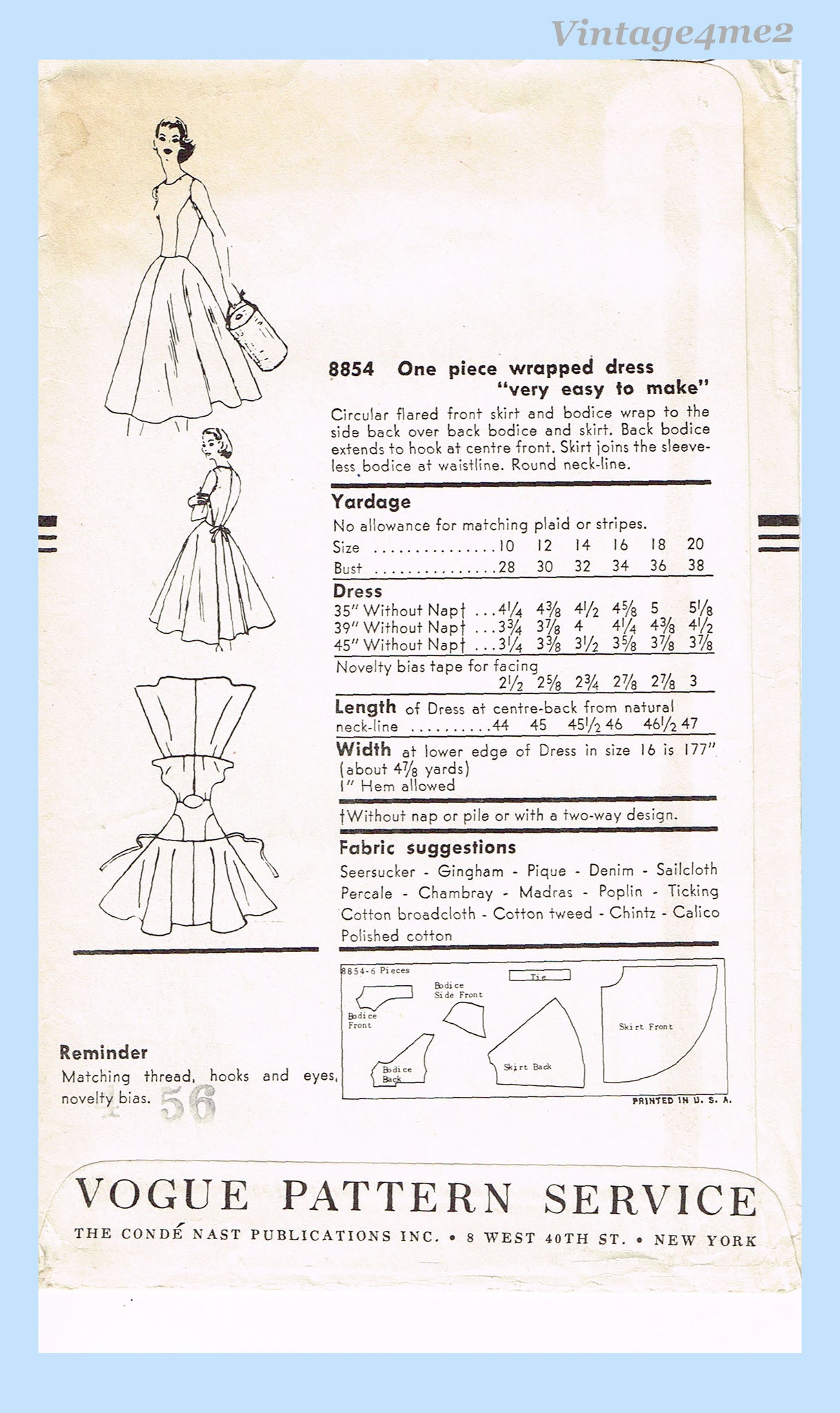 Vogue 8854: 1950s Uncut Misses Walk Away Dress Sz 34 B Vintage Sewing Pattern