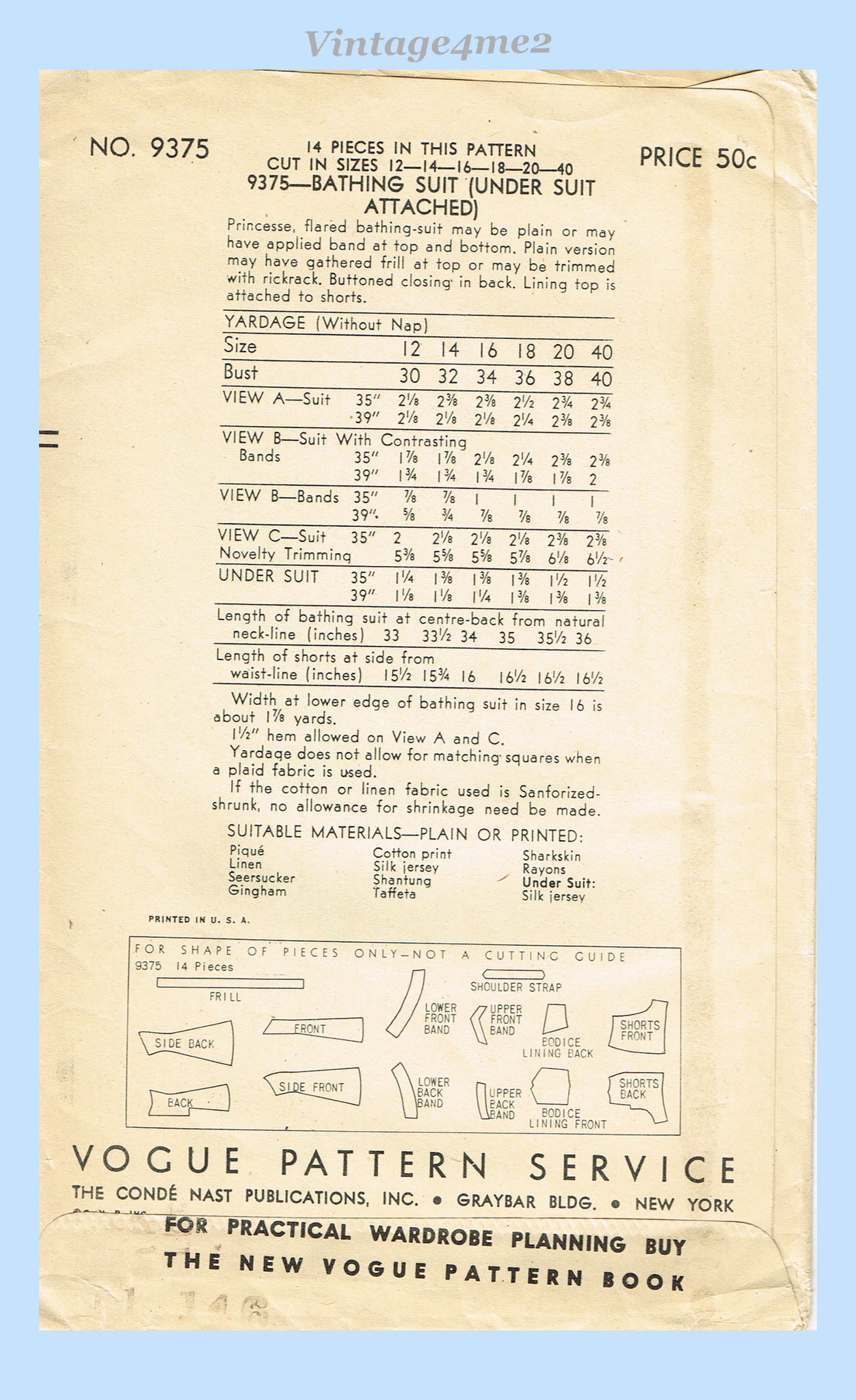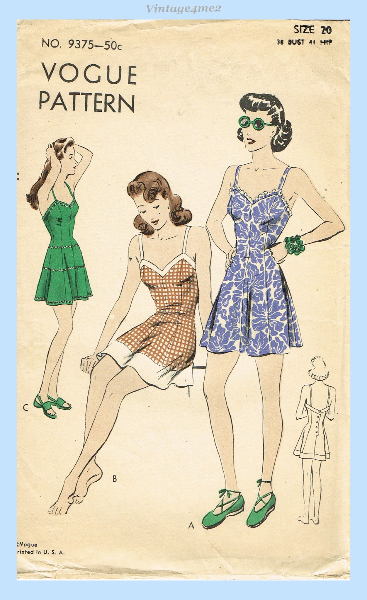 Vogue 9375: 1940s Rare Uncut Misses Bathing Suit Sz 38 B Vintage Sewing Pattern